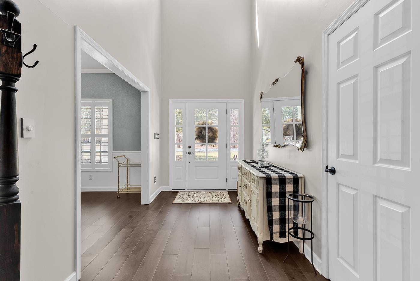 Timeless Southern elegance can be found with this 4 bedroom 3.5 bath home. Classic design meets peaceful country living with highlights that include NO HOA, Mother In Law Suite, Saltwater Pool, Carolina Room and Bonus Room, Workshop and more. Read on to learn about all this home has to offer. Set on a spacious NO HOA property, this beautiful home welcomes you with striking curb appeal, dormer windows, and an expansive covered front porch. Inside, warmth and sophistication greet you with rich engineered hardwood floors, soaring ceilings, and natural light that fills the home. The inviting living room, anchored by a cozy propane fireplace (that can be enjoyed by the Carolina Room as well), creates a perfect gathering space while maintaining an open, airy feel. Just beyond, a formal dining room offers an elegant setting for hosting memorable dinners and celebrations. The well-appointed kitchen blends style and function, featuring two custom pecan countertops, generous cabinetry, wall oven, pendant lighting, pot filler, propane cooktop, vented hood and ample counter space designed for both everyday living and entertaining. A bright breakfast nook overlooks the backyard, creating a welcoming space to start your day. Relax in the Carolina Room, which can offer whatever flexibility you need thanks to the glass panel door. The home’s spacious guest bedrooms provide comfort and privacy, due to the split bedroom plan. You'll appreciate the spacious, first floor, dual primary suites (Mother-In-Law Option!) with features like built in shelves in one and chair railing in the other. Each primary bathroom offers a spa-like feel. The hardest decision will be which one you want. Option 1, walk in shower with shower panel tower and garden tub with an extra large vanity and Bluetooth speaker or Option 2, expansive shower, heated floors, blue tooth speaker and double vanity. Don't forget to head upstairs for the oversized bonus room/5th bedroom complete with a storage room of your dreams. Outdoors, the property offers a sense of privacy and tranquility rarely found so close to town. The star of the yard is the salt water pool with tanning ledge, water feature and pool house - has its own bathroom, sitting area and AC! The fun doesn't end there, after a dip in the pool, head to the fire pit for a cozy evening. Bring the boat, camper, trailers or cars, there is plenty of room thanks to the long driveway, car port and 2 car garage with 9 foot doors. Hobbyist will appreciate the workshop, and outdoor storage. With plenty of space to stretch out and enjoy the surrounding landscape, this home captures the essence of refined country living while remaining just minutes from historic downtown Conway, local dining, shopping, and the scenic riverwalk. A rare opportunity to own a home that perfectly blends Southern charm, comfort, outdoor entertainment, and timeless appeal.