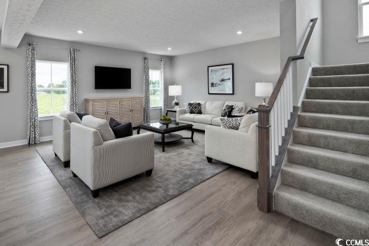 Unique Opportunity! This is the ONLY home in the community featuring this exclusive floor plan—truly one of a kind! The Powell floorplan sets the stage for great living on our last wooded lot in this community. Enter through a charming front porch and upgraded, craftsman elevation. Inside, an open-concept layout is designed for how today's families live. Prep dinner in the gourmet kitchen with a wall oven and upgraded cabinets, an accent island, backsplash and gas range. The kitchen overlooks the dining and family room that's equipped with luxury vinyl plank flooring and a rear covered porch. A versatile study with glass doors on the first floor can be used as a work from home space, play room or formal area. Take the hard surface stairs up to your luxurious owner’s suite which includes two massive walk-in closets and a double vanity. The home also has a modern, black matte finish throughout. Indigo Bay offers a serene, gated community in the heart of Carolina Forest with tree-lined homesites and stunning views of a 50+ acre lake. Enjoy resort-style amenities including a saltwater pool, clubhouse, dog park, fitness center, pickleball courts, and kayak/paddleboard launch. Choose from coastal-inspired homes with James Hardie siding, masonry accents, and options from single-level ranch to spacious two-story designs. Personalize your home with luxury finishes and take advantage of the 3-car garage for extra storage, a gym, or golf cart space. Convenience is just minutes away—Marketplace at the Mill, local dining favorites, and Grand Strand beaches are all nearby, along with plenty of golf courses. Elevate your lifestyle at Indigo Bay—where custom homes meet vibrant living!