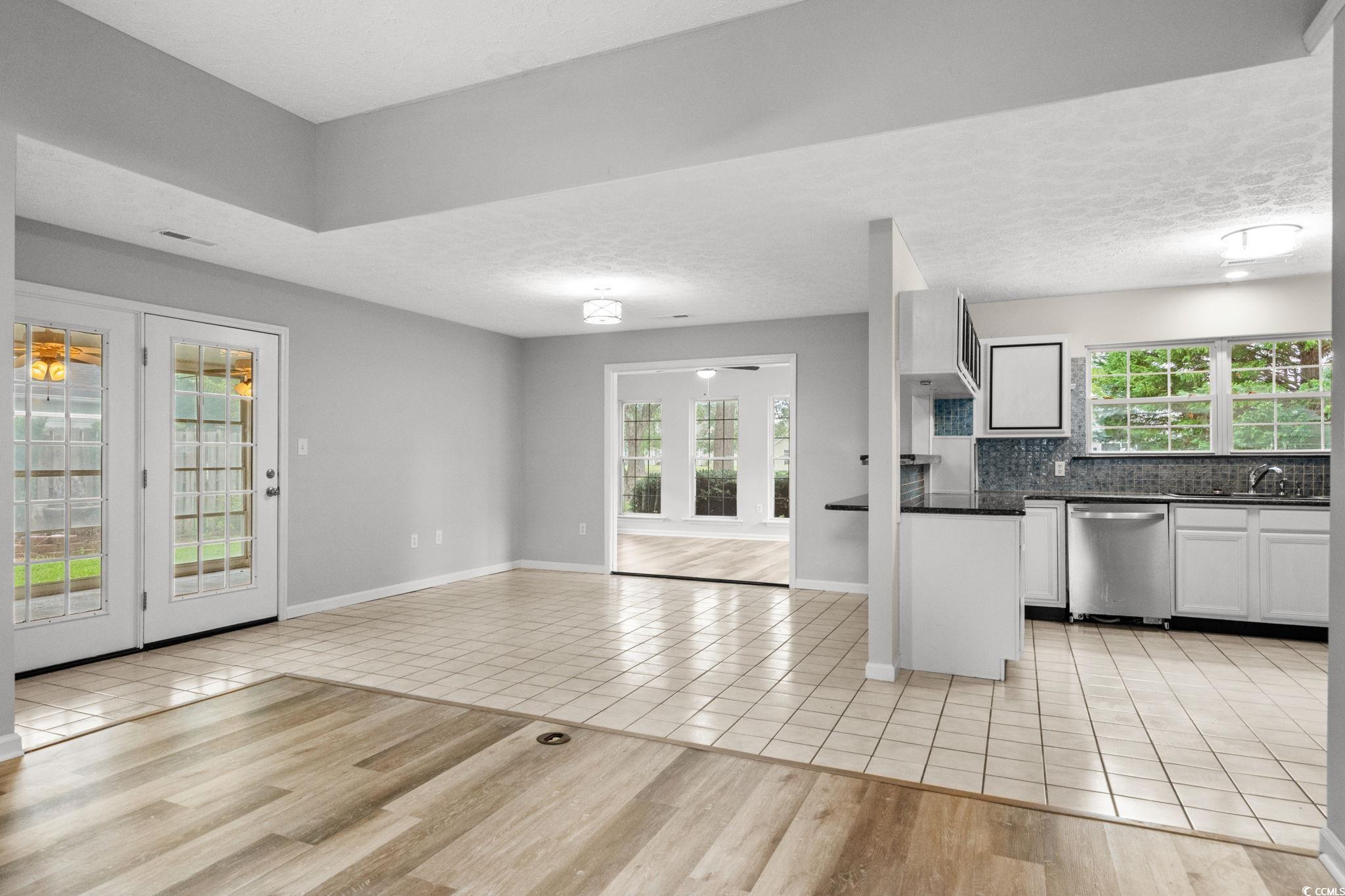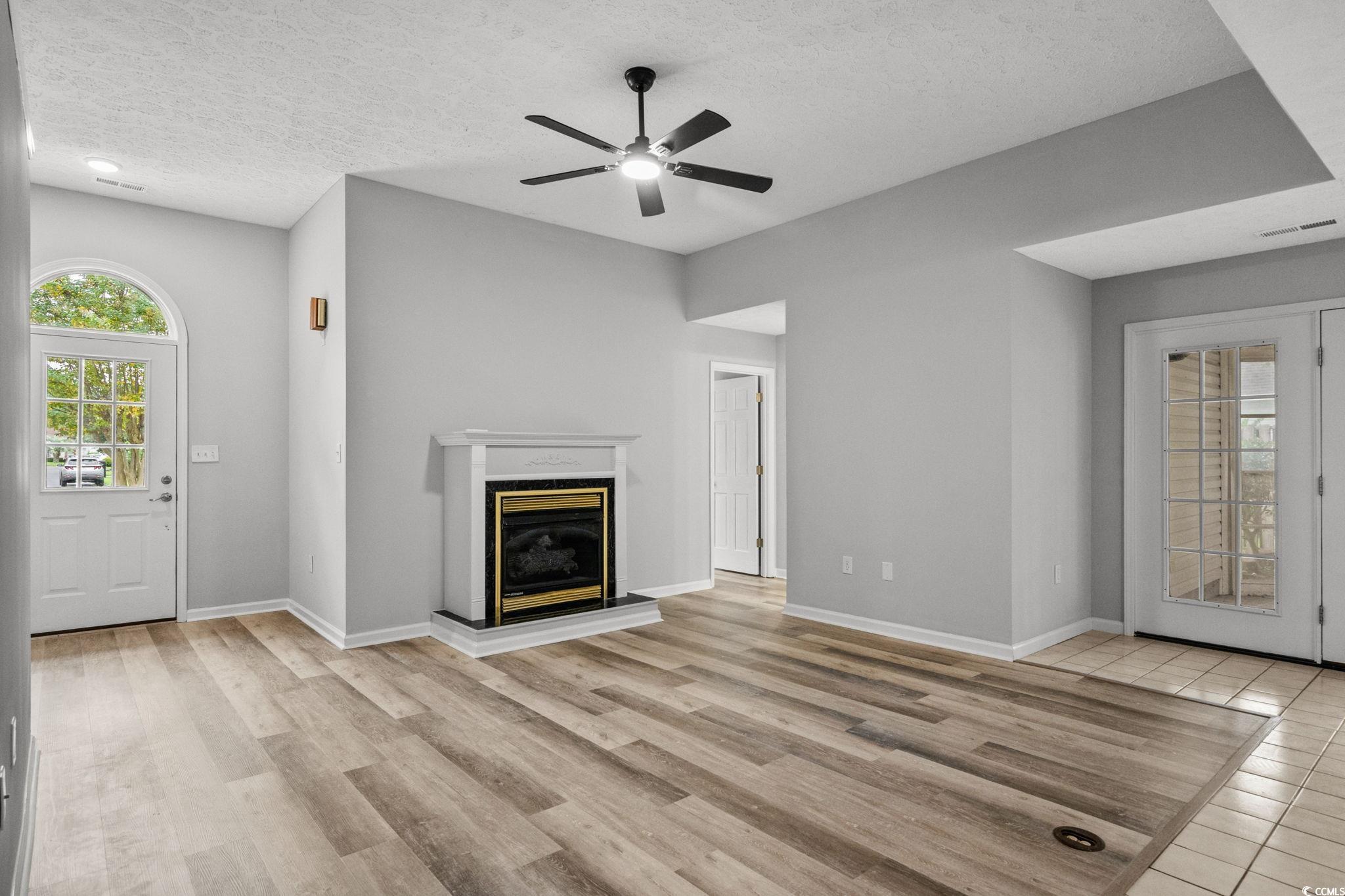 Welcome to this charming 3-bedroom, 2-bath home tucked away in the Glenmere community—just under 5 miles from the sparkling Atlantic Ocean. Sitting on a spacious 0.31-acre lot with a peaceful pond view (and three flag poles proudly standing by the water), this property blends comfort with a touch of coastal charm. A roomy double car garage offers plenty of space for vehicles, storage, or beach gear. Inside, fresh paint and brand-new luxury vinyl plank flooring give the home a crisp, updated feel, while modern black ceiling fans add a stylish edge. The living room invites you to unwind with its cozy gas fireplace, and the kitchen boasts beautiful granite countertops with a breakfast bar that connects seamlessly to the dining area—perfect for casual meals or morning coffee. The kitchen also features a brand-new stove, a new hot water heater nearby, and a dishwasher just a few years old. The split bedroom floor plan provides both privacy and functionality. The master suite is a true retreat, featuring a large walk-in closet, a gorgeous pond view, and a spa-like bathroom with a garden soaking tub and a walk-in shower. A large laundry room offers convenience and extra storage space, complete with a front-loading washer and dryer, and even room to add a utility sink. An inviting four-seasons sunroom extends from the main living and dining space, offering year-round enjoyment with fabulous pond views. The screened porch features “EZ-Breeze” style windows and a stamped concrete floor, creating a versatile space to relax in any weather. Mature landscaping frames the home beautifully, and the serene water views make this house one you’ll be proud to call home.