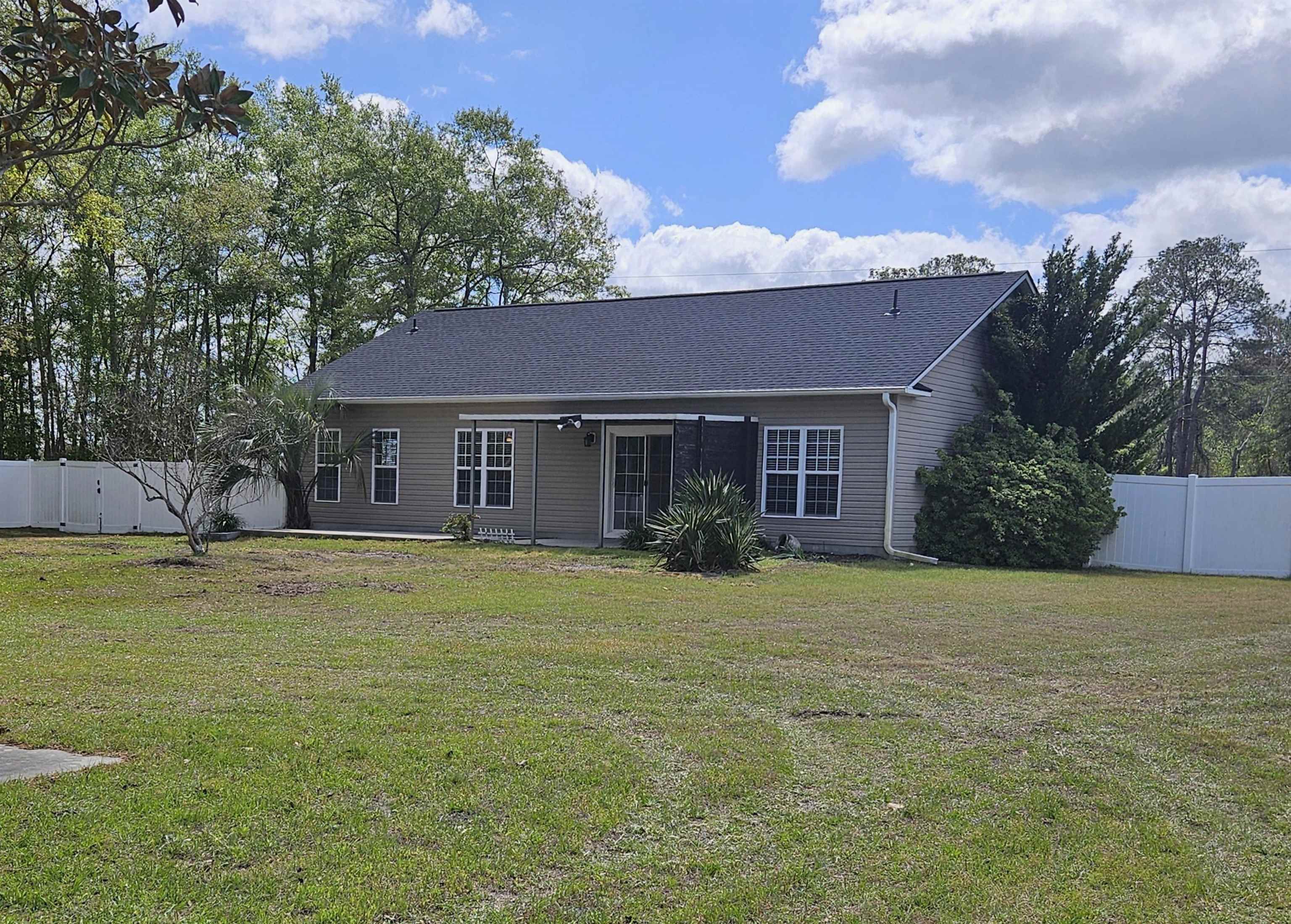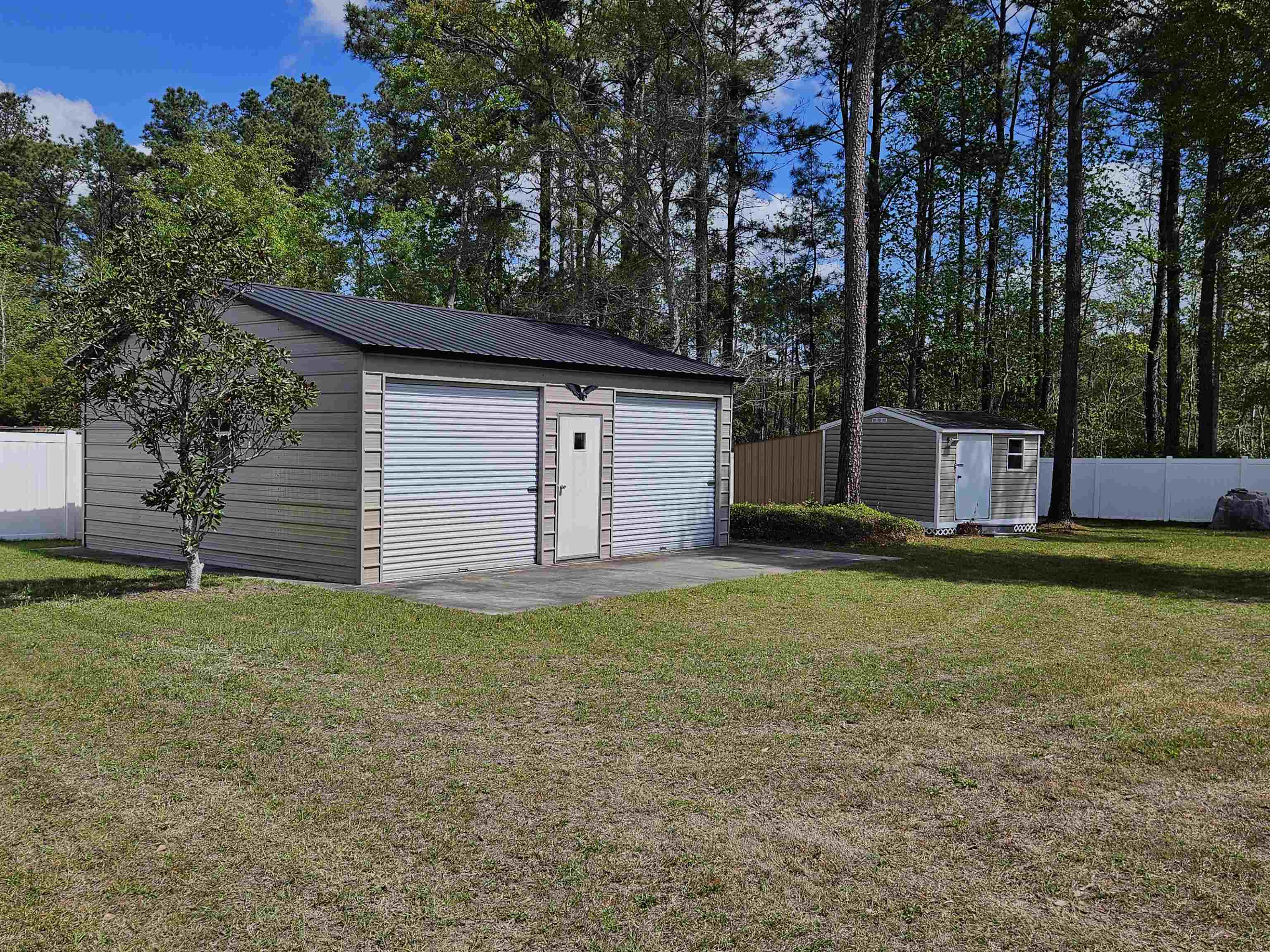 Don't miss this great opportunity for peaceful country living! This split bedroom large ranch home features 3 bedrooms, 2 baths, 2 car garage on over a half acre of land with private, quiet living! Built in 2006 and well taken care of - Roof replaced in 2025, A/C replaced in 2019. This home also has vaulted ceilings, wood flooring and chair railing. Bathrooms feature tile flooring and master bath is private, has 2 sinks, a garden tub and separate shower. Kitchen is nicely appointed with plenty of cabinets and counter space, stainless appliances and under cabinet lighting. The back yard is huge, fenced, has a detached 2 car garage/workshop with roll up doors. Perfect for a workshop or garage! There is also a 2nd workshop/shed, a storage shed, and a covered "lean to" for more storage and there's plenty of room to add what you want! Currently, home has well water and septic but public water and sewer are available. Convenient to Hwy. 22 and 701, this great location is only a few minutes away from everything the Grand Strand has to offer!
