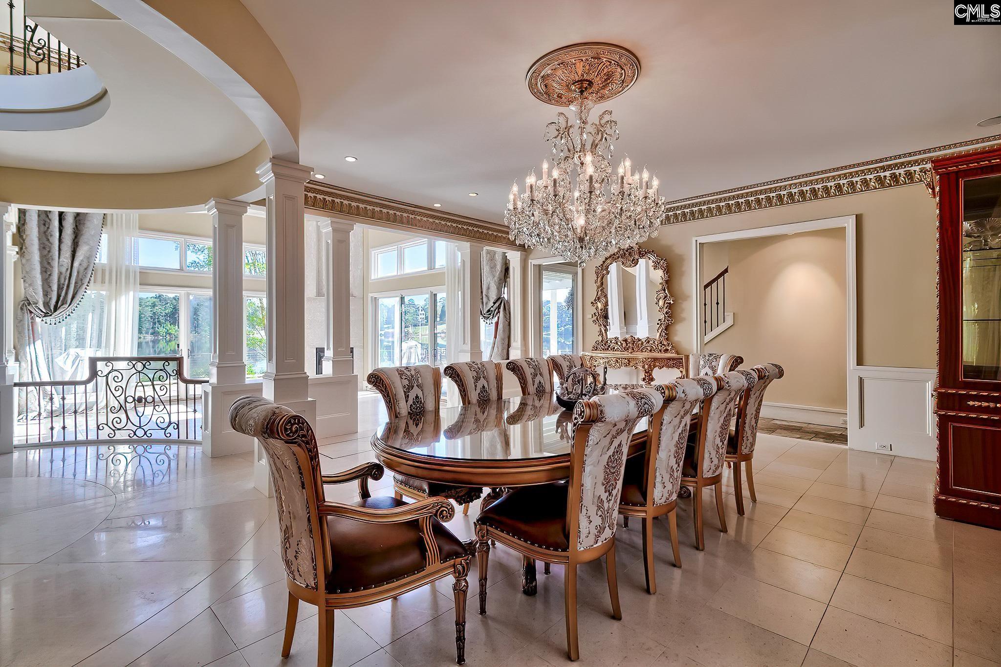Tucked away on a private cul-de-sac in the prestigious woodcreek Farms, This Mediterranean-inspired home offers breathtaking lake views from nearly every room & showcases exquisite craftsmanship, including marble flooring & hand-painted gold leaf detailing throughout. A cobblestone circular drive w/ a fountain entry creates a grand first impression. Inside, the home opens to a dramatic foyer w/ a sweeping circular marble staircase & a stunning family room featuring floor-to-ceiling windows. There is a formal sitting area w/ a fireplace & a formal dining room located off the kitchen. The kitchen is designed for both everyday living & entertaining w/ double islands, Thermador appliances, double ovens, a 6-burner cooktop, SubZero fridge, w/ an informal family room & eat-in area. This home offers 2 luxurious primary suites, one on each level. The main-level suite features hardwood floors, a spa-like bath w/ dual vanities, a soaking tub, a floor-to-ceiling tiled shower, & a walk-in closet w/ built-ins. Upstairs, the second primary suite has a a fireplace, private wet bar w/ refrigerator, & an en-suite bath w/ dual vanities, soaking tub, separate shower, & walk-in closet. 2 additional bedrooms both with private en-suite baths. A large bonus room over the garage, currently used as a media room, includes a closet & can easily serve as a 5th bedroom. For convenience, there are 2 laundry rooms, one on each level. Each bedroom offers access to a balcony or porch w/ lake views. The main-level sliding glass doors open to a covered porch w/ a pergola, creating the perfect outdoor entertaining space. The professionally landscaped yard has been thoughtfully enhanced w/ Royal Zoysia grass, & a full irrigation system. 3 car garage w/ refinished wooden doors. Located on one of woodcreek Farms' most desirable lakefront lots, this home offers both privacy & convenience, w/ easy access to I-20, I-77, shopping, dining, & downtown columbia. Optional membership to The Woodcreek Club provides access to the Tom Fazio-designed golf course, resort-style pool, tennis courts, & clubhouse dining. Disclaimer: CMLS has not reviewed and, therefore, does not endorse vendors who may appear in li