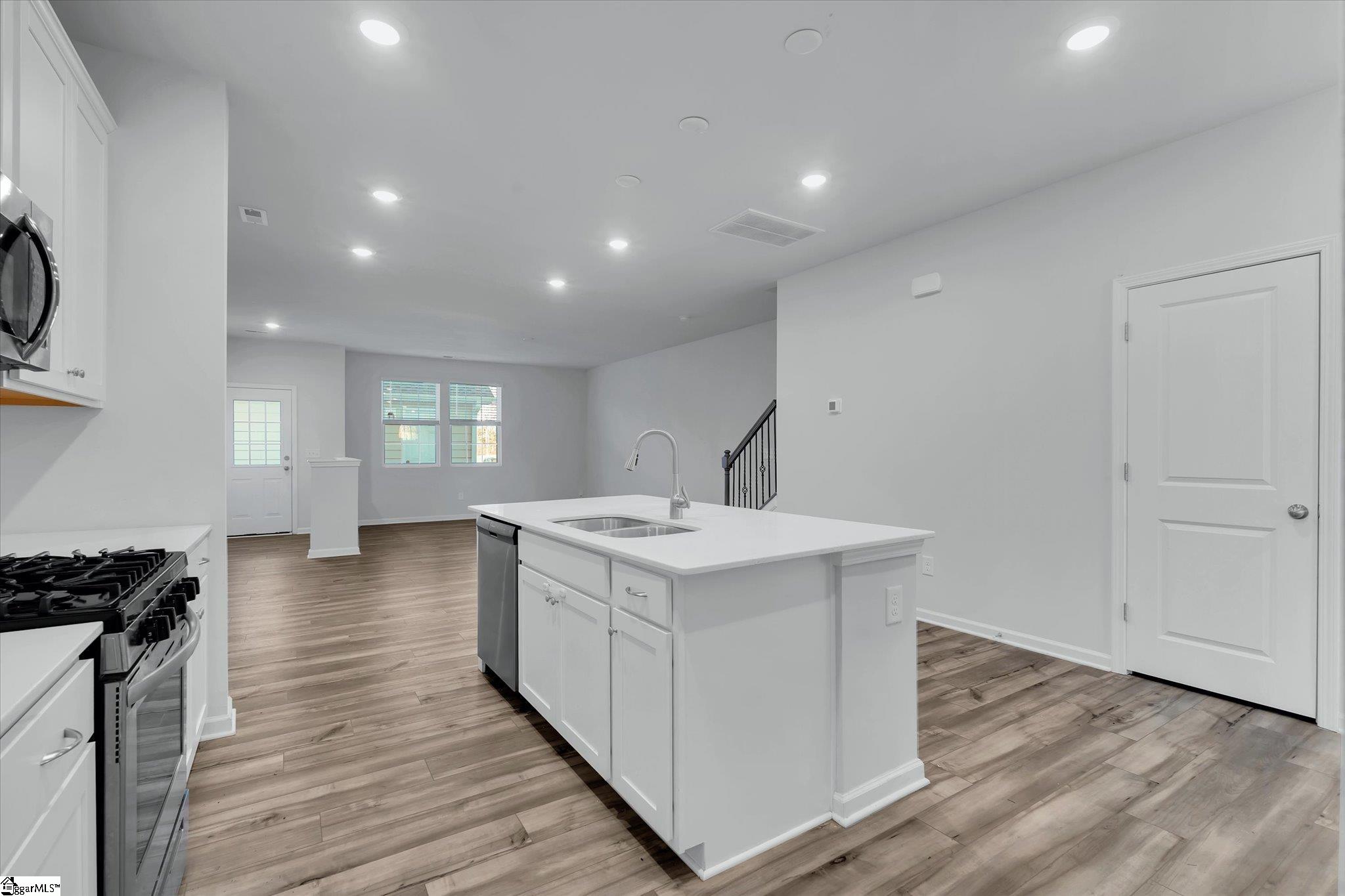 This stunning modern home showcases fresh, neutral finishes throughout, creating a versatile canvas that complements any style. The spacious, chef-inspired kitchen is designed for memorable meals, featuring sleek quartz countertops, a large center island, and high-quality stainless steel appliances. Effortlessly host gatherings in the open-concept living and dining area, where there's ample space for friends and family to relax and mingle. An additional living area at the front of the home offers flexible options to suit your needs—whether as a playroom, home office, or cozy den. You will also find your own single car garage! Upstairs, all bedrooms are thoughtfully tucked away alongside a convenient laundry room. The expansive primary suite is a true retreat, complete with a walk-in closet and a luxurious en-suite bathroom, providing the perfect sanctuary to relax and recharge after a long day. Ask about how sellers preferred Lender can help you save!