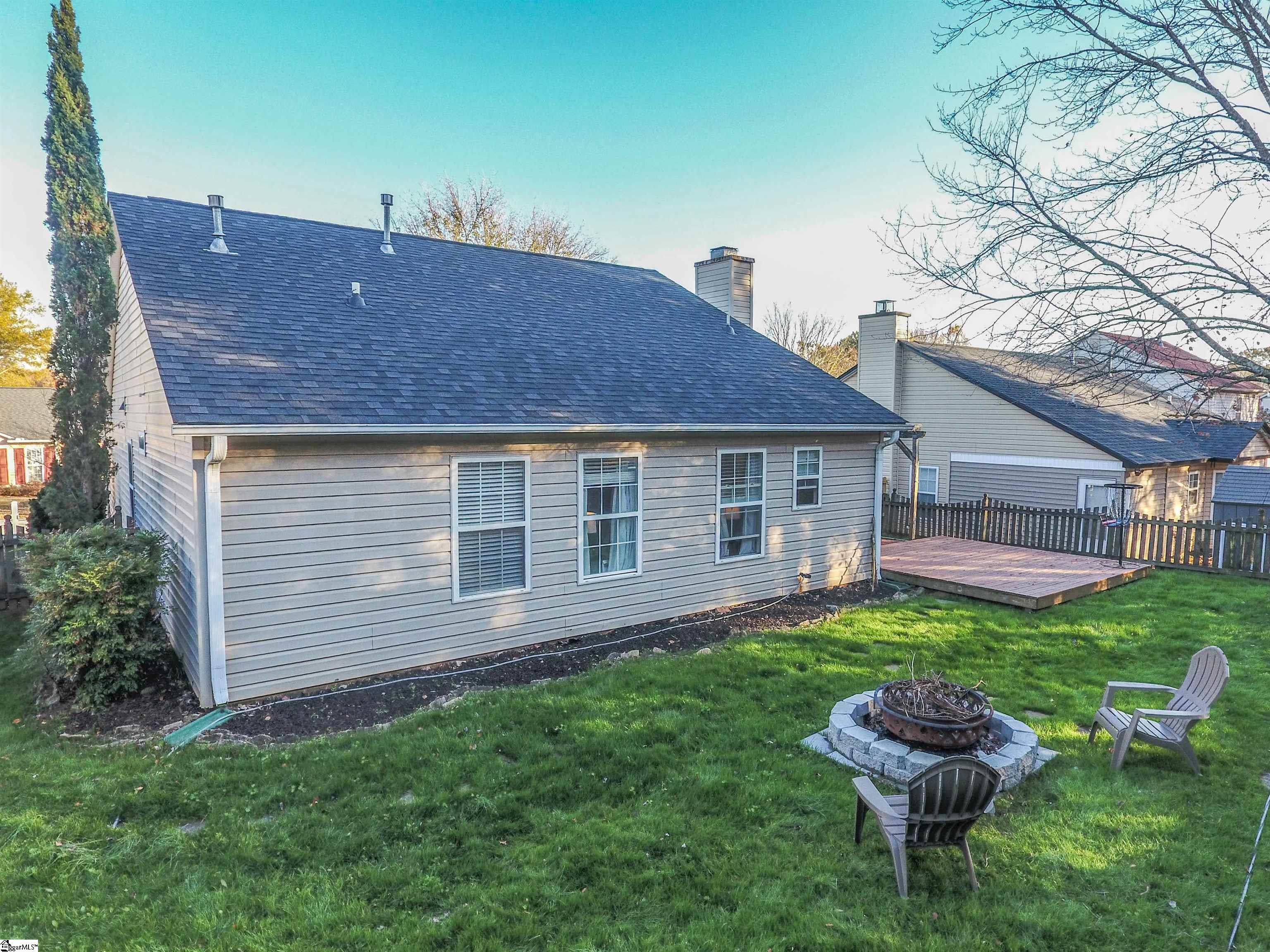 Welcome to 4 Green Oak Drive, a beautifully updated home in the established Standing Springs Estates community of Simpsonville. This inviting one-level layout features three comfortable bedrooms and two full bathrooms, along with a spacious living room that makes everyday life feel effortless. The primary suite offers a walk-in closet with upgraded shelving and an updated bathroom vanity and fixtures. Just off the kitchen, a large rebuilt back deck extends to a fully fenced backyard with a lush, magazine-worthy lawn and a fire pit that sets the scene for relaxing evenings and weekend gatherings. Over the past three years the owner has invested in an extensive list of improvements for comfort and peace of mind, including a roof replacement, HVAC system with smart thermostat technology, a new garage door and opener, fresh interior paint, new flooring in the third bedroom, updated light fixtures, ceiling fans, door hardware, blinds including the back door, and more. With a quiet Simpsonville setting that is close to shopping, dining, parks, and commuter routes, this is a rare opportunity to enjoy low-maintenance living, thoughtful upgrades, and everyday comfort in a neighborhood buyers love. The buyer and/or buyer's agent is responsible for verifying the accuracy of any and all information to include but not limited to square footage.