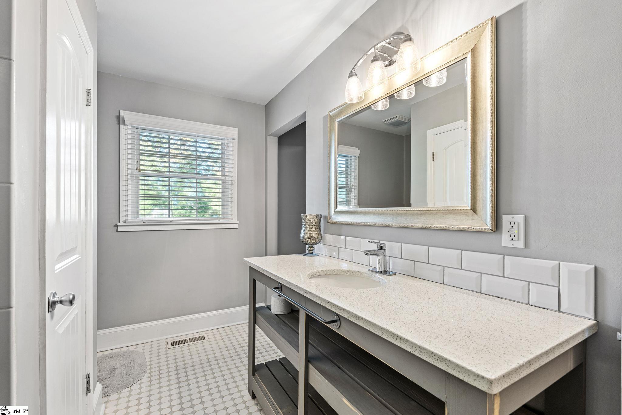 Stunning Fully Updated Brick Ranch on Greenville's Eastside! This 4-bedroom, 2.5-bath home blends timeless charm with modern updates. The open floor plan is perfect for entertaining. The formal living room features a double-sided gas fireplace, and is open to the formal dining room that flows effortlessly to the kitchen and den. The beautifully updated kitchen offers granite countertops, an eat-in island, tile backsplash, under-cabinet lighting, stainless steel appliances, and a gas stove cooktop. A bright den opens to a screened porch and stone patio with stone retaining wall overlooking a beautifully landscaped, private wooded backyard. The primary suite includes an ensuite bath, while the additional bedrooms are generously sized. Enjoy the convenience of an attached two-car garage connected by a vaulted breezeway that also functions as a secondary screened porch. This move-in ready home offers exceptional style, comfort, and privacy—truly a must-see!