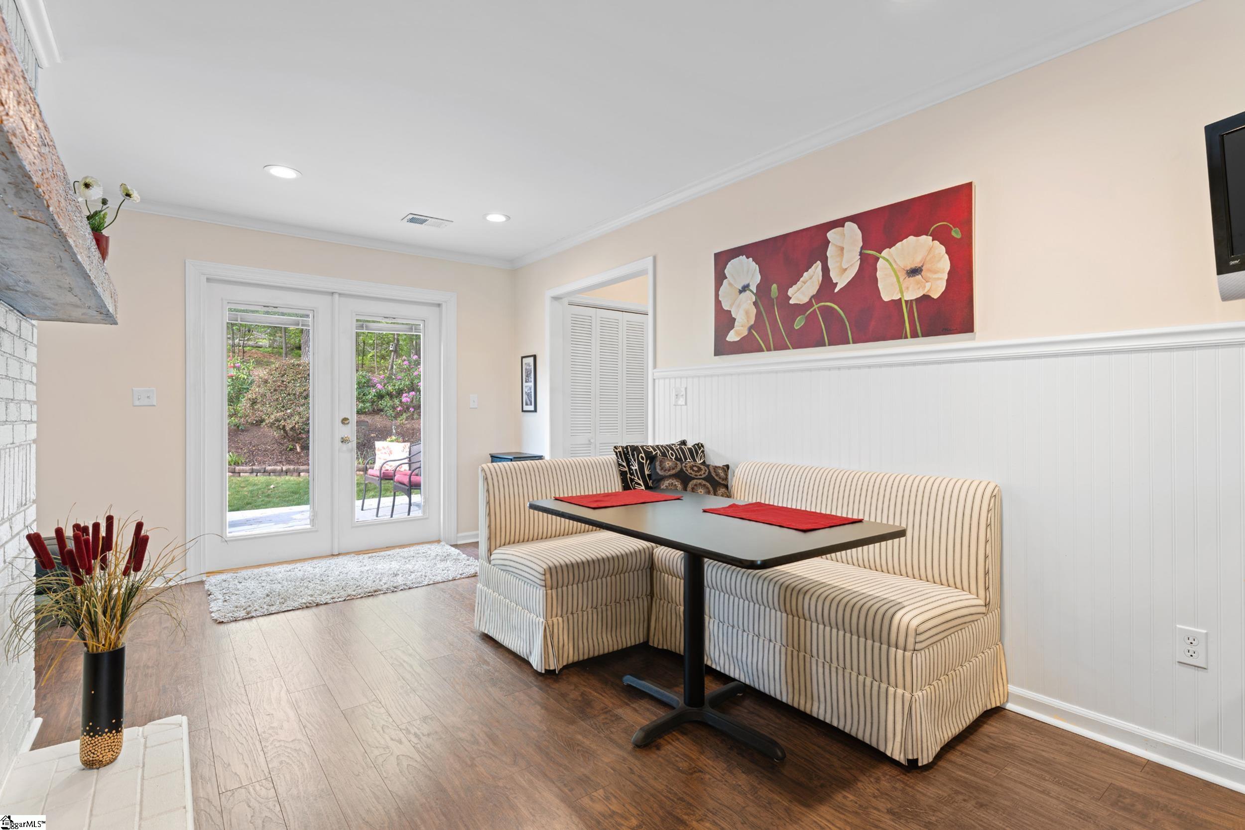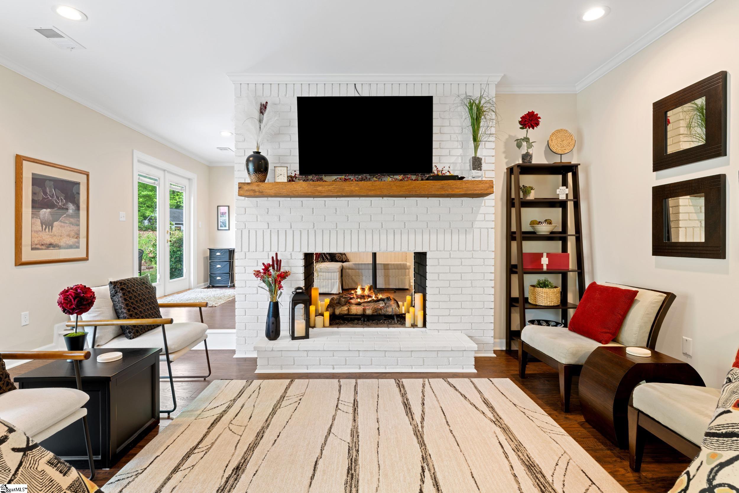 This is the perfect, immaculate, one level brick ranch home you have been searching for. Located in the coveted Coach Hills subdivision very conveniently located between Pelham Rd. and Roper Mountain Rd. Coach Hills is loved for the winding streets, beautiful mature trees and landscaped yards on large lots. This location is spectacular, as it is in close proximity to interstates 85 and 385 and to major shopping. The schools are known for their excellence, Pelham Rd. Elementary, Beck Middle School and JL Mann High School. This home has been lovingly cared for as these sellers have added $62,000 in improvements since purchasing their home. A full list is available for you to review. You will love that this home is sited on a .65 acre no traffic cul de sac lot on a beautifully irrigated landscape yard. You will be immediately impressed with the overall charm of this home. When you enter, you will appreciate the light filled rooms and flow of the floorplan. The dining room flowing into the large kitchen and breakfast room and then flowing into the living room is ideal for daily living and entertaining. The kitchen has been updated with stainless steel appliances, granite counter tops and plumbing fixtures, new dishwasher, (2025), upgraded lighting fixtures. All appliances convey including the washer and dryer. Engineered wood flooring was added throughout the main living areas. The focal point of this charming home is the handsome brick, see through, fireplace with gas logs that opens to the kitchen and the living room. There are 3 bedrooms and 2 full baths. The primary bathroom was renovated to feature a walk in shower and glass sliding door, new flooring, updated plumbing fixtures, marble counter tops and light fixtures. The 2nd full bathroom was updated, new flooring, new plumbing hardware. The plumbing has been upgraded with PEX and insulation upgraded to R-30 wool. You will appreciate the mud room/ office that the owners created off of the garage. Then, there is the amazing park like back yard, that features a large deck and patio overlooking the beautifully landscaped, fenced, irrigated yard that is lush, private, and serene. You will create lots of memories with family and friends enjoying this wonderful back yard. And for additional storage there is a detached building at the back of the lot. Last and certainly not least is knowing that you will have great neighbors who love their Coach Hills community. This home, in this loved neighborhood, will capture your heart. See it soon and make it your own! The HOA is only $100 per year. The neighborhood has lots of green space and a play ground to enjoy outside activities with your family and the community. A final footnote: The sellers will be selling most of the furniture and accessories in an estate sale. If you are the lucky buyer and also interested in any of the furniture as the buyer, you will have the first opportunity to purchase.