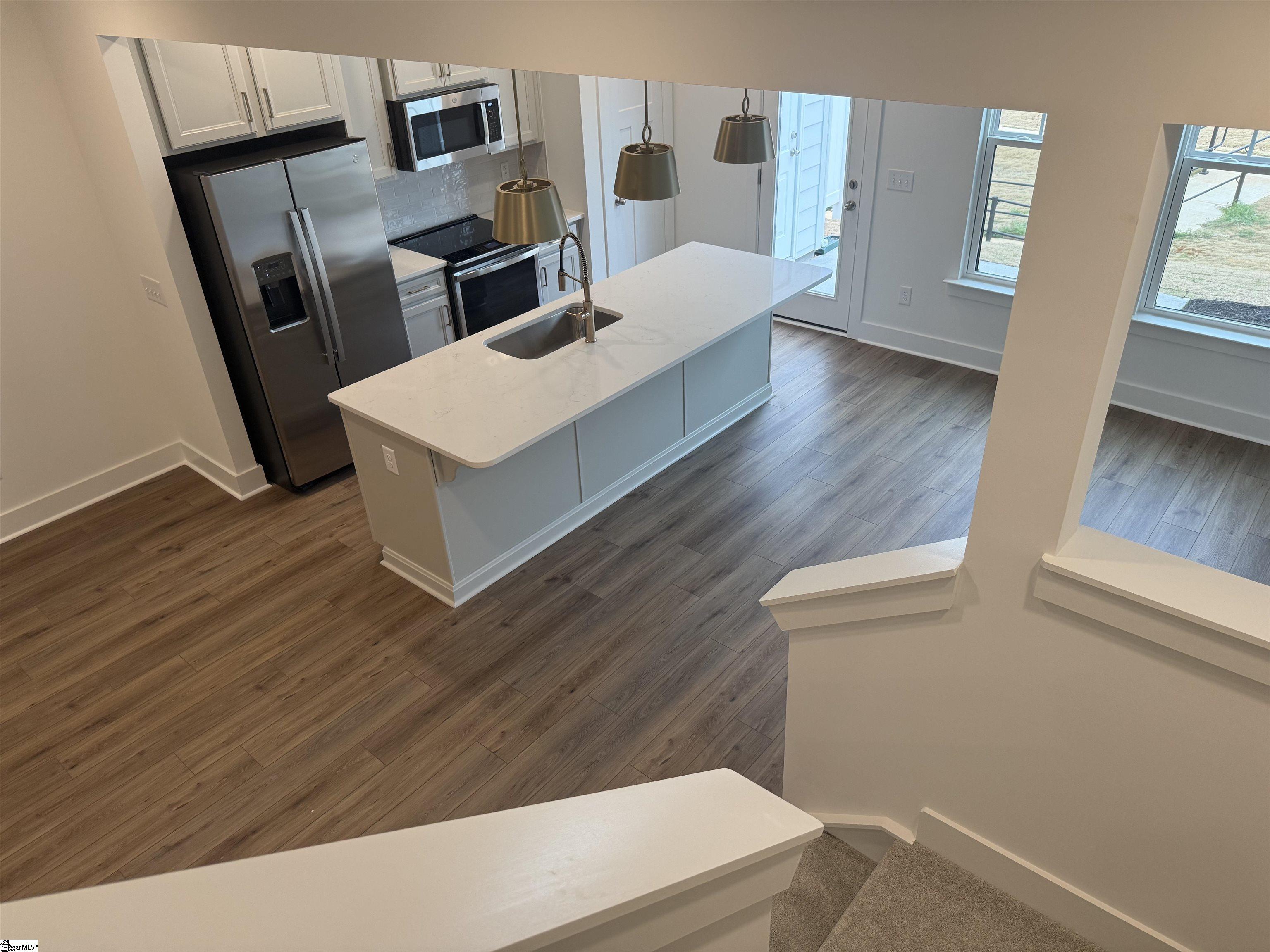Welcome to Gresham Station! New townhomes in the heart of Simpsonville. The most convenient townhome community in Simpsonville, SC in a desirable location perfectly positioned between downtown Simpsonville and Bridgeway Station. SIMPLIFY YOUR MOVE! All homes feature the move-in package boasting a refrigerator, washer, dryer, dishwasher, microwave, in-sink disposal and white faux wood blinds. With over 1,600 sq ft across two levels, this stylish modern home offers a welcoming foyer leading into a light-filled open floor plan. The kitchen centers on a large island and connects seamlessly to the living and dining areas—perfect for entertaining. Features of the kitchen include soft white cabinetry, light Quartz countertops, tiled backsplash, and stainless steel electric appliances including a refrigerator. The patio off the kitchen allows for outdoor living and also offers extra storage in the outdoor closet. Upstairs you will find 3 generous bedrooms and 2 baths, including a luxurious Primary suite with walk-in closet and spa-like bath with double sinks and 5 foot step in shower with glass door. Practical touches include upstairs laundry with washer/dryer included, linen storage, and thoughtful split bedroom design. Blinds are also included throughout the home! The 1 car garage and double parking pad give a convenient and versatile combination for car storage and parking. Smart home technology, energy-efficient design, and a dedicated local warranty team ensure long-term comfort and convenience. Find your dream home in the flourishing, historic Simpsonville area - just minutes away from Simpsonville's staples, such as The Slice, Ice Cream Station, and Warehouse at Vaughn's just 1 mile away in the heart of Main Street! Enjoy easy access to Target, Publix, Sam's Club, Walmart Neighborhood Market and more! Convenient location with nearby access to the newly redone Gracely Park, Heritage Park Amphitheater, Greenville Technical College Nature Trail, and the upcoming Trail Head for Swamp Rabbit Trail in Fountain Inn! Ready to travel? Enjoy a quick 20 minute drive to Greenville-Spartanburg International Airport! This home is almost complete so come by for your personal tour and be one of the first to call Gresham Station home! See Sales Agent for additional pricing information.