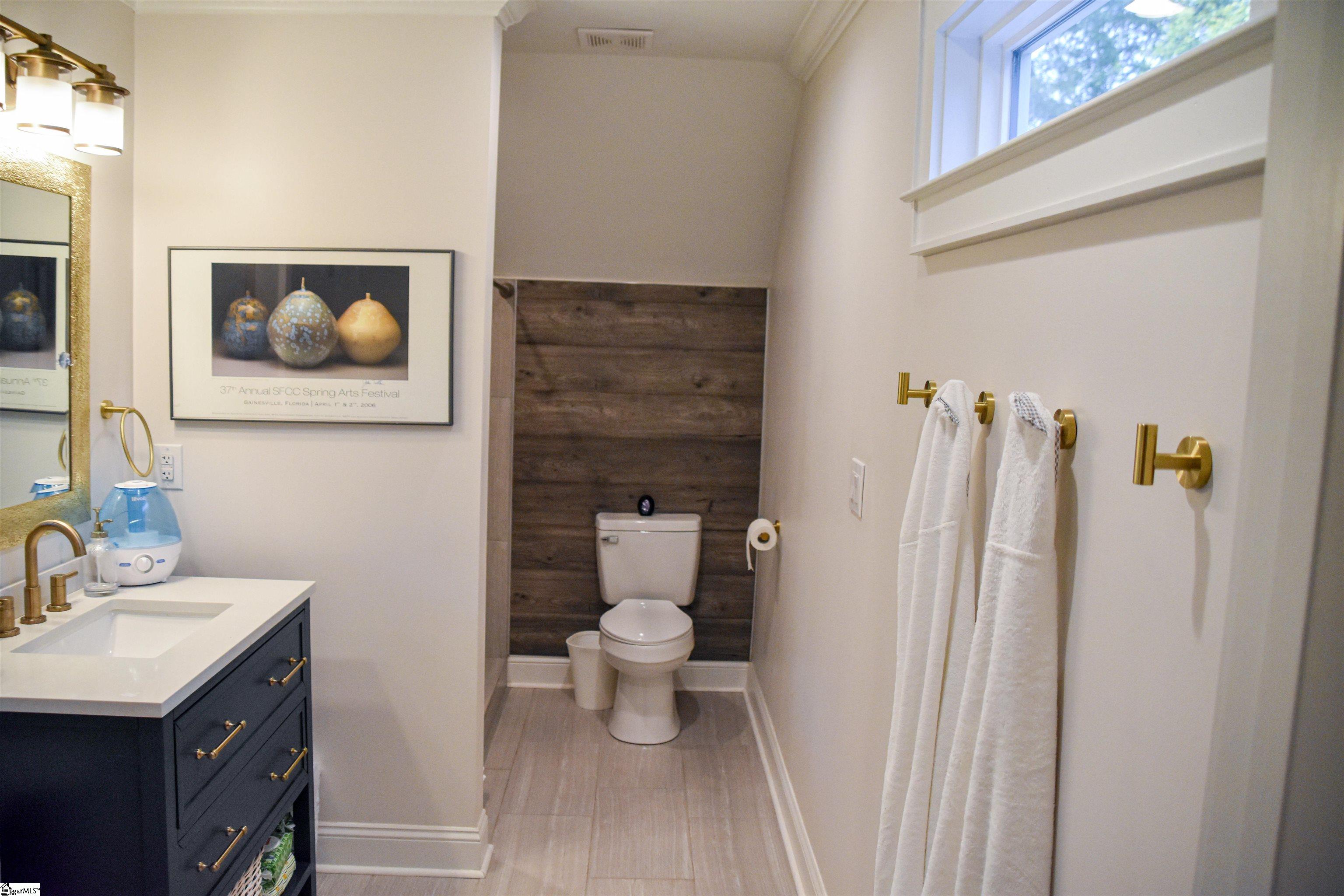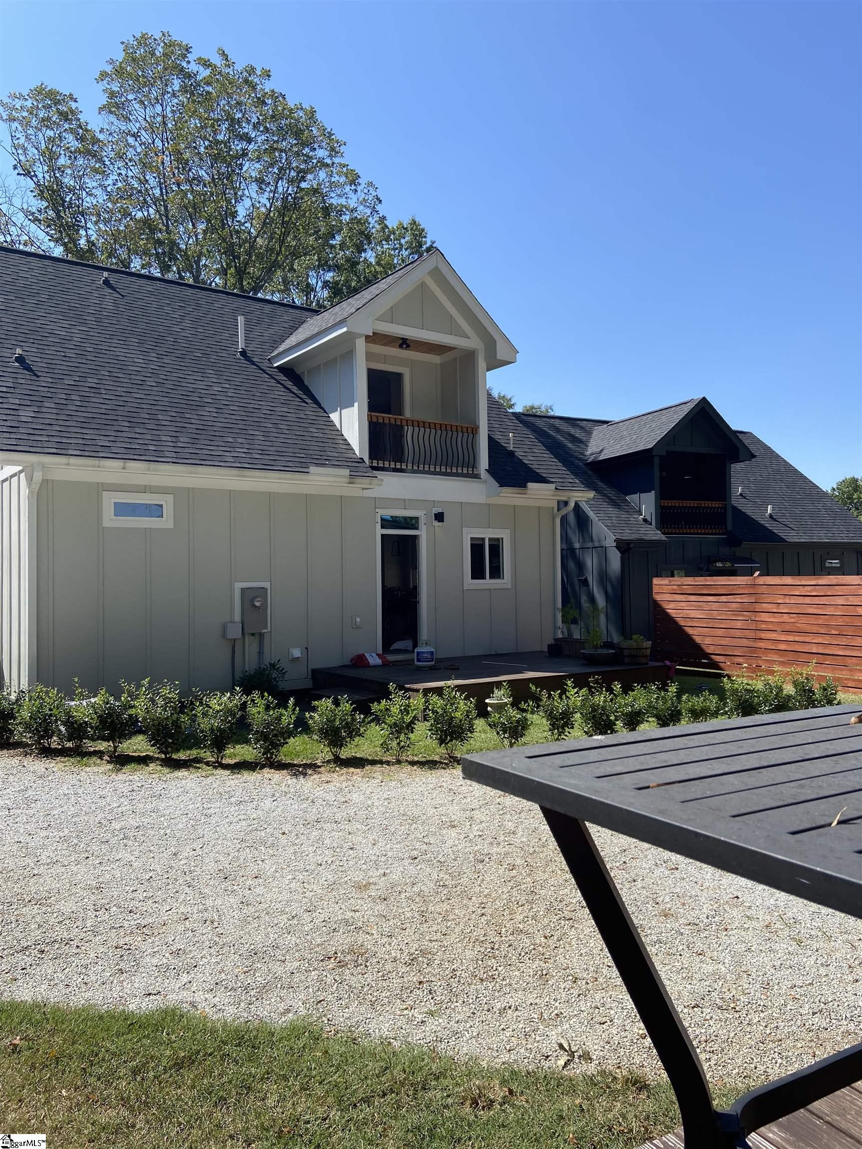 Welcome to a rare opportunity in the heart of Travelers Rest, two income producing homes on one property just steps from the Swamp Rabbit Trail. The second dwelling is currently operating as a fully furnished short-term rental, and all furnishings and existing accounts can transfer to the new owner. The main home is currently leased as a long-term rental and welcomes you with a wide front porch and soaring ceilings in the living room, which opens seamlessly to the dining area and kitchen. Just off the kitchen are the laundry space, pantry, extra storage, and a back entrance leading to a private deck and the shared driveway. The main level also includes a half bathroom and a spacious primary suite with a double-sink vanity, a large walk-in tiled shower, and a generous walk-in closet. Upstairs, a bright loft overlooks the living room and provides access to a private balcony and attic storage. A second full bedroom suite sits down the hallway, complete with its own bathroom featuring a tiled shower and single-sink vanity. Across the driveway, the separate guest cottage offers a welcoming living and dining space, a well-appointed kitchen, a comfortable bedroom, a full bathroom, and a laundry closet. Sliding doors lead to a wraparound deck where guests can relax and unwind. All furnishings in the guest cottage convey with the sale. Square footage listed includes both dwellings: approximately one thousand six hundred seventy-five square feet in the main home and approximately four hundred eighty square feet in the guest cottage. Taxes are currently assessed at the non-owner-occupied rate. According to the City of Travelers Rest, both homes qualify for short-term rental use with the proper business license. This is an exceptional chance to own a property in one of the most desirable small towns in the Upstate while enjoying built-in rental income, guest space, or multigenerational living.