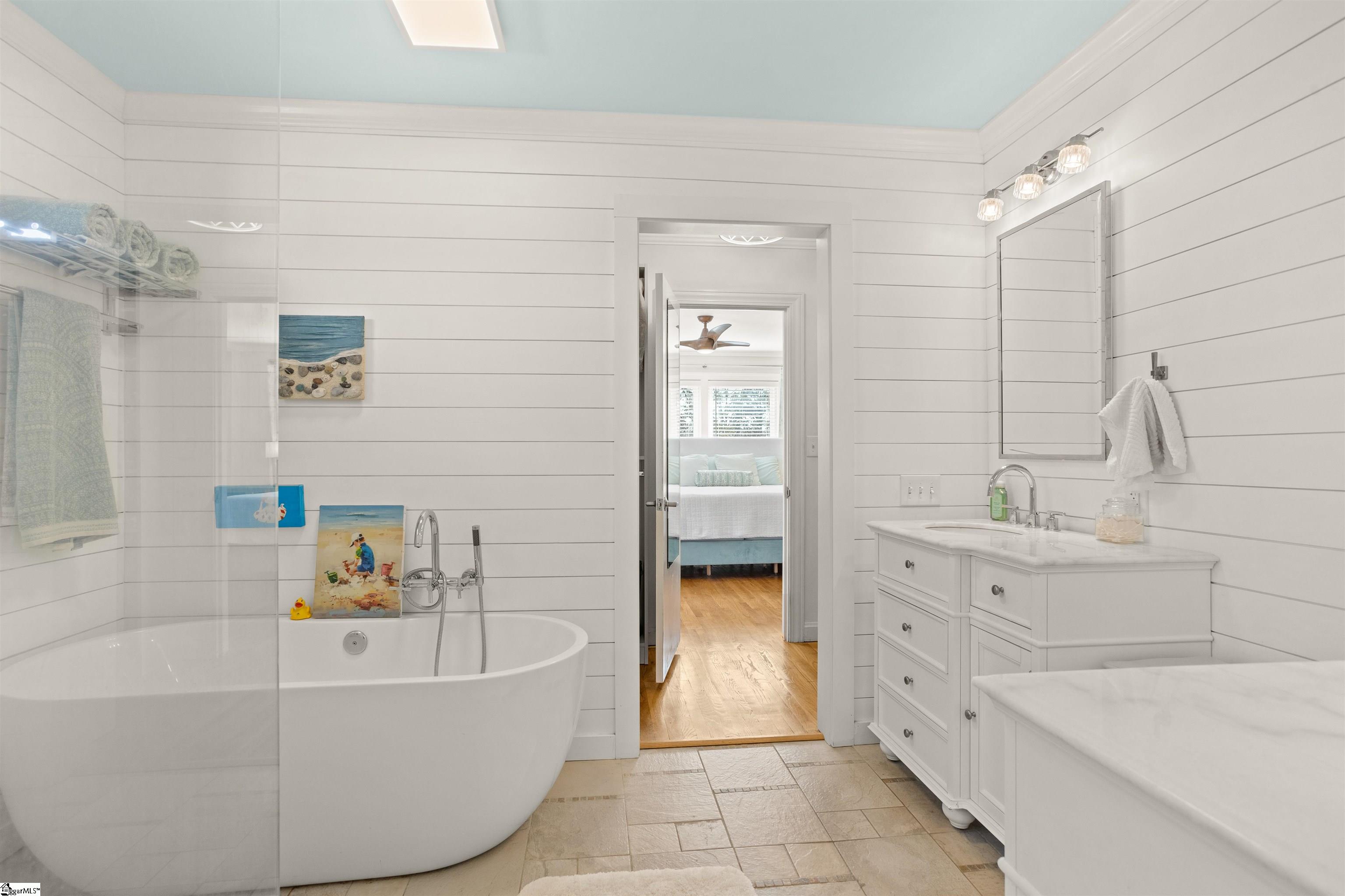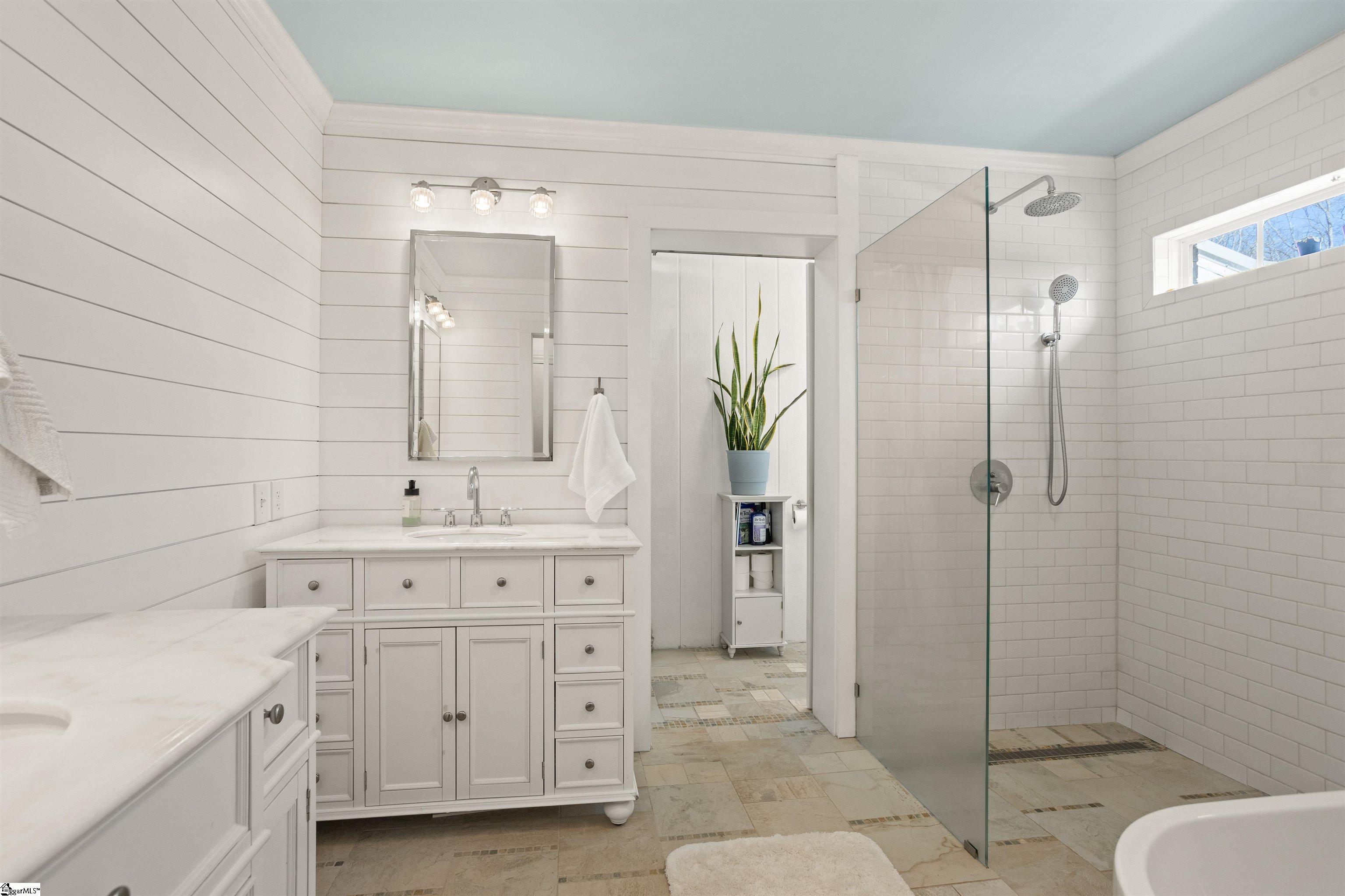 You've found it in Parkins Mill! The one with the NEW PICKLEBALL COURT, new screened porch, huge level fenced back yard & new 4-CAR DETACHED EV-ready GARAGE! 1/4 mile to Swamp Rabbit Trail, walk to Grateful Brew! 1.11 acre level lot on QUIET STREET. Renovated & expanded, other improvements include: newer HVAC, redone granite kitchen, vaulted ceilings, new windows, encapsulated crawlspace, updated primary suite on main, all updated bathrooms, new interior paint, new Hardiplank siding, new lighting, and redone landscaping. VERSATILE living spaces! Great Room, Home office, Home Gym, Den, Music Room plus Play Room. Primary on main enjoys private sitting area, His/Hers walk in closets and bath with dual vanities, separate soaking tub and glass/tile no-threshold shower. Redone in-law suite upstairs welcomes long term guests with ease! Pre-inspected, repairs done, move-in-ready. SOLD COMPS: 1223 Parkins Mill Rd, 23 Parkins Glen Ct and 23 Stillwood