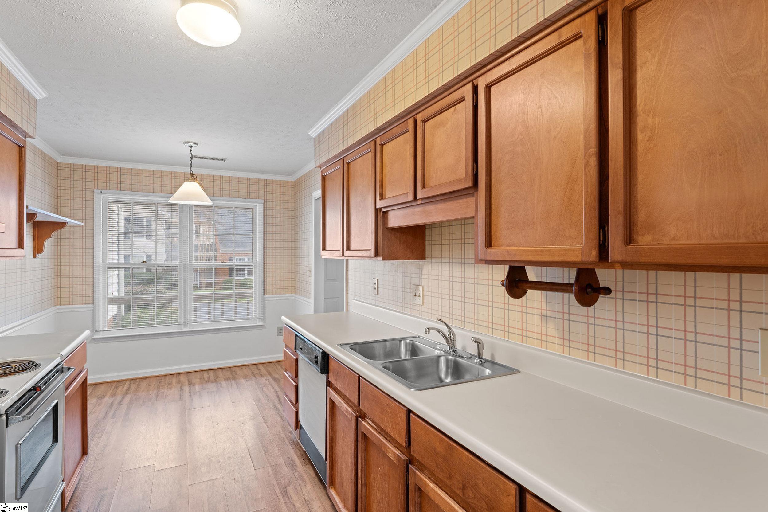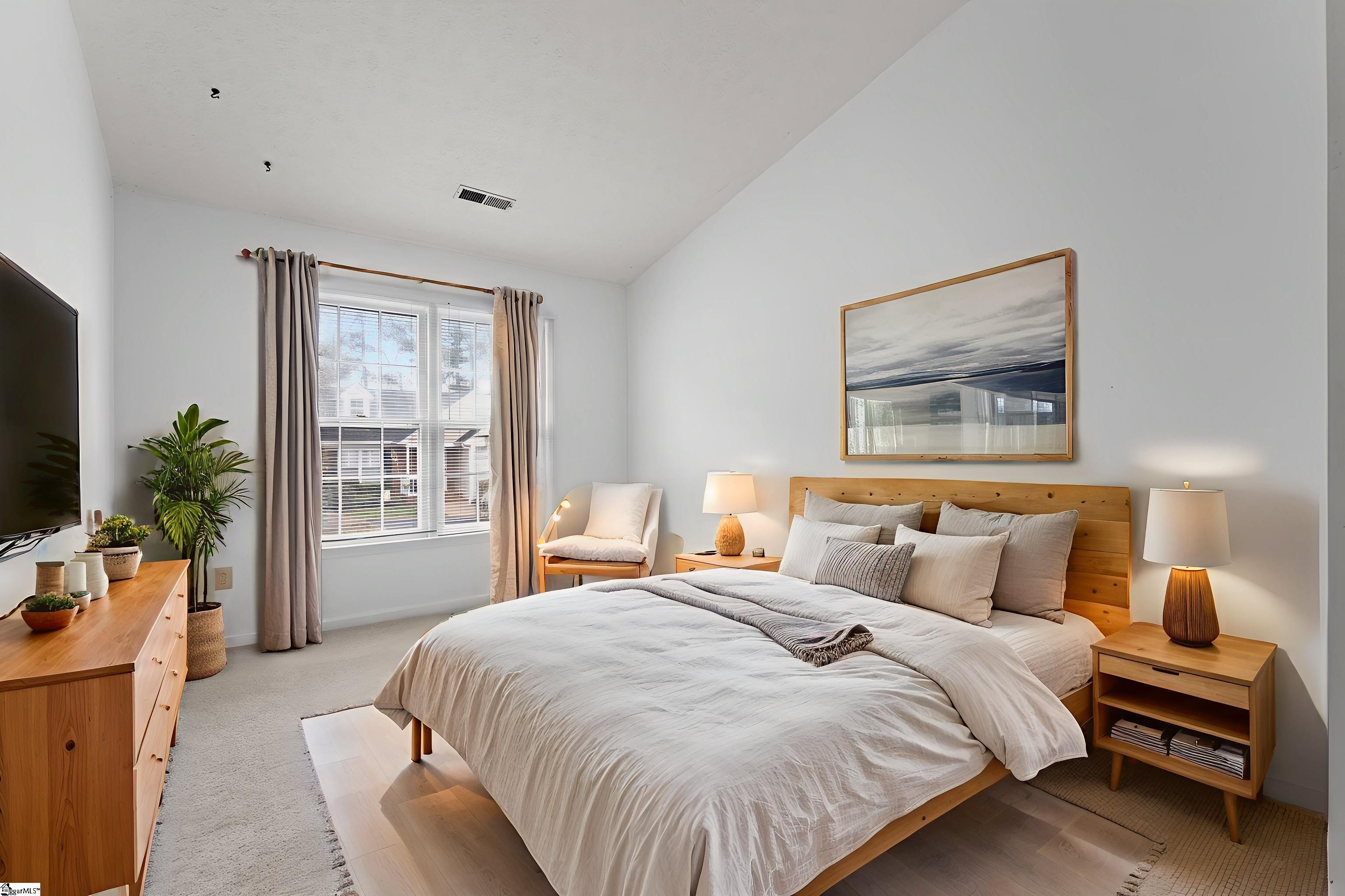 Welcome home to 40 Wood Pointe Drive, where low-maintenance living meets comfort and convenience in this approximately 1,400 square foot two-story townhome. The main level offers a bright breakfast area off the kitchen that flows naturally into the dining and family rooms, creating an open layout. The family room features a cozy gas fireplace and leads out to the fenced in back patio with a convenient storage building. A main-floor bedroom with a full bathroom has newly installed carpet. Upstairs, the spacious primary bedroom includes a large walk-in closet and full bathroom, while a third bedroom and third full bathroom complete the upper level. Existing carpets have been professionally cleaned, the entire home has been professionally deep cleaned, and the upstairs laundry closet includes a washer and dryer that convey with the property. Ideally located just off I-385, this home provides quick access to Haywood Mall, shopping, dining, and is only 10 minutes from downtown Greenville, offering an exceptional blend of comfort, convenience, and location.