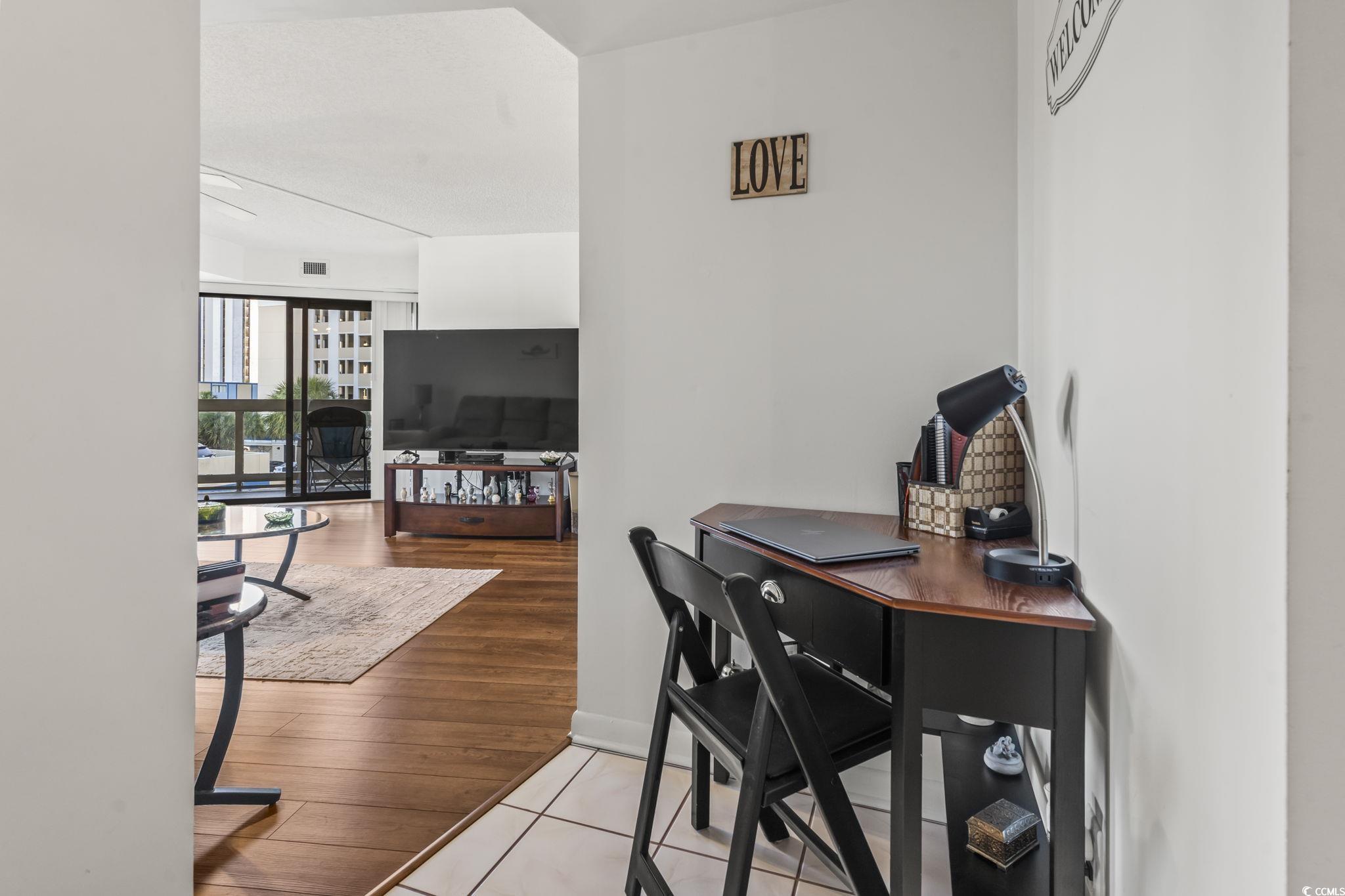 4/1/26 Price Reduced. Low HOA fees; NO Special Assessments; NO Insurance Assessments. QUIET, Residential, Spacious 1-Bedroom Condo – Just Steps from the Beach! There's a reason why so many owners Move Up and STAY in this wonderful building! This Stunning 786 sq. ft. condo is ONE of the BEST HOMES you’ll find on The Strand! Less than 400 steps to the beach, this sunny and spacious residence is in Super Clean Condition and has been Beautifully Updated. Step inside to find a tiled entryway leading to gorgeous waterproof luxury vinyl plank flooring throughout the dining, living, and bedroom areas. The open, bright living space feels large and inviting, with sliding doors leading to a private balcony (refurbished with a new screen door just last year). The galley kitchen features abundant cabinetry, a pantry, solid-surface countertops, and a tiled floor. A stylish barn door opens to an updated bathroom, and there’s even a convenient corner office space! NEW Upgrades within the Last 5 - 6 Years: New Sliding windows; Washer & dryer; Bosch dishwasher; Water heater; Bathroom remodel. Not to mention new HVAC in 2017. Atlantis Highlights: Low HOA fees; No Special Assessments; No Insurance Assessments; Keyed Lobby for security; On-site manager; Primarily Residential & Second homes; Well-maintained community. Enjoy an unbeatable location and lifestyle — walk to Bummz Beach Cafe, Piggly Wiggly, restaurants, attractions, and of course, the beautiful Blue OCEAN. This is a rare opportunity and an incredible value. Don’t miss this one!