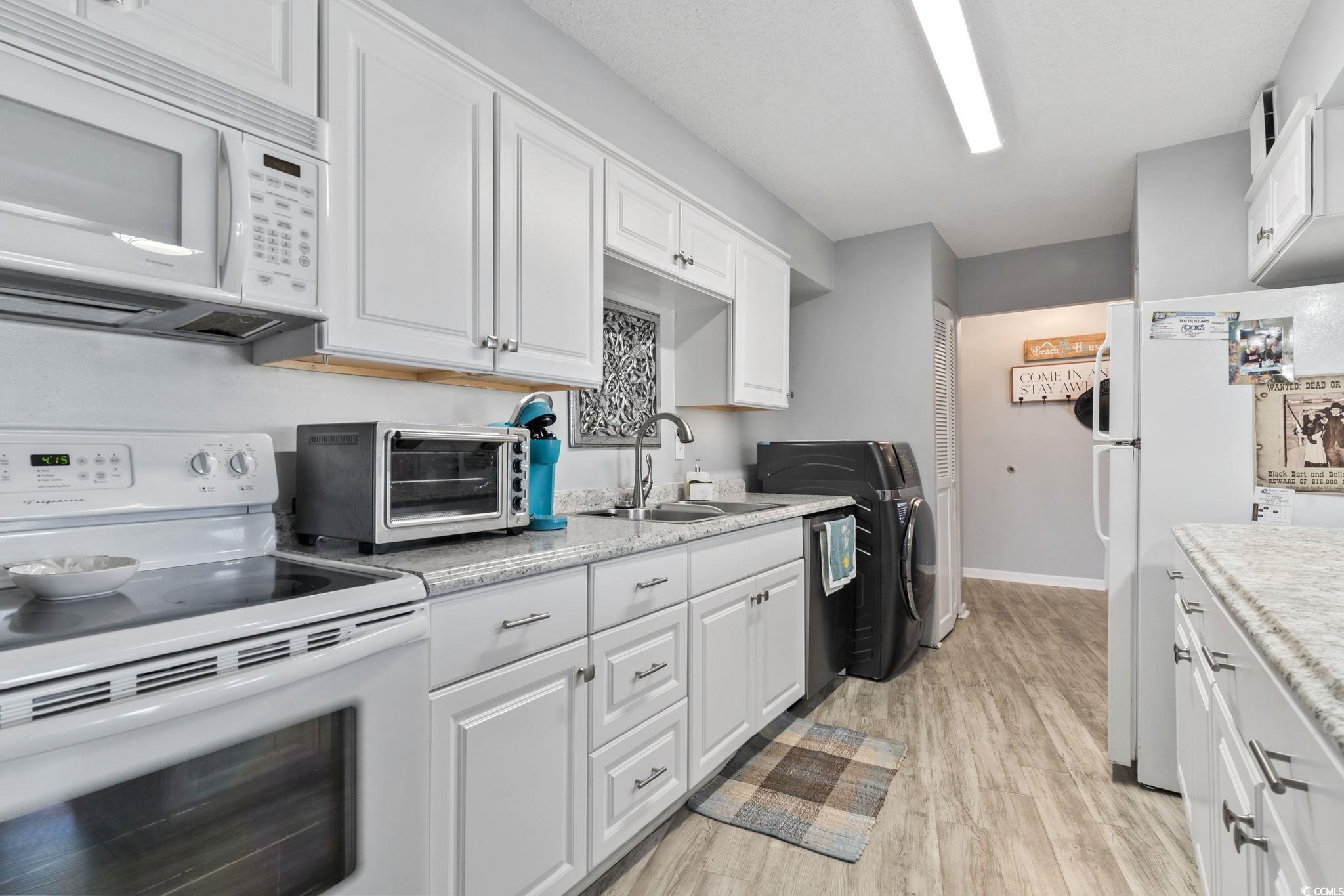 Welcome to this fully furnished, beautifully renovated 2-bedroom, 2-bathroom condo in the highly sought-after Atlantis building. Completely remodeled recently, this unit features LVP flooring and stylish, coordinated furnishings throughout. The modern kitchen comes fully equipped with all appliances, including a brand-new smart washer and dryer, ample cabinet and counter space, a breakfast bar, and a dining area that comfortably seats four. It also includes a new water filtration system for added convenience. Both bedrooms offer generous closet space and private bathroom access, with the master bedroom boasting a walk-in closet and direct entry to your 4th-floor balcony. Relax and enjoy the ocean breeze from the balcony or take advantage of the building's fantastic amenities, including an outdoor pool, pool tables, ping pong, and an onsite party room. Atlantis is a secure, private building, with new elevators installed in 2022. Ideally located in the heart of Myrtle Beach, you're just moments away from the area's best dining, shopping, golf, and entertainment. Whether you're seeking an investment property, a vacation getaway, or your forever home by the beach, this condo is a must-see. Don't miss this opportunity!