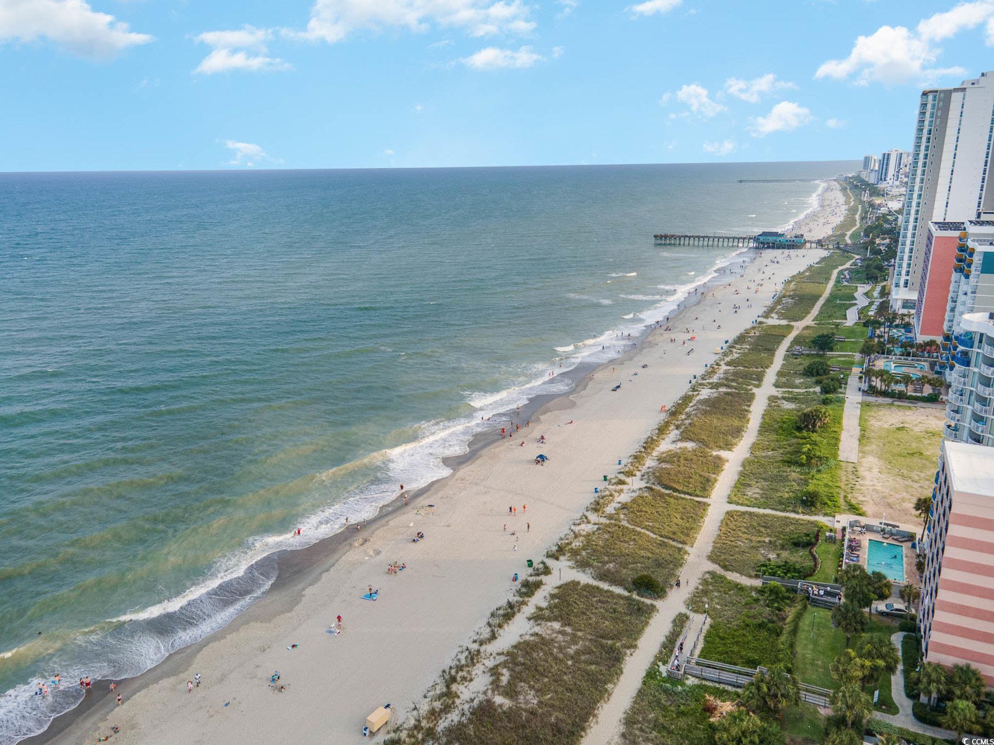 Welcome to this charming one-bedroom, one-bathroom condo located in the desirable Atlantis building in Myrtle Beach, just one row back from the stunning shoreline! Step inside to find a fully equipped kitchen featuring beautiful granite countertops and ample space for all your cooking needs while enjoying your getaway. The large living and dining areas, along with the bedroom and bathroom, showcase stunning hardwood flooring, creating a warm and inviting atmosphere perfect for relaxing and entertaining friends and family. The spacious bedroom provides plenty of room for your furniture, while the bathroom boasts a convenient walk-in shower. Enjoy the convenience of an in-unit washer and dryer, making laundry a breeze. This condo is being sold fully furnished, offering a turn-key opportunity for new owners! Step outside to your private balcony, where you can unwind and soak in the fresh ocean breeze with beautiful views just steps away from the beach. Atlantis offers a variety of amenities to keep you entertained, including a refreshing pool, exercise room, ping pong table, and pool table. Conveniently located near some of Myrtle Beach's finest dining, shopping, golf, and entertainment options, this condo is perfect as a forever home, vacation retreat, or investment property. Don't wait, schedule your showing today and make this coastal gem yours!
