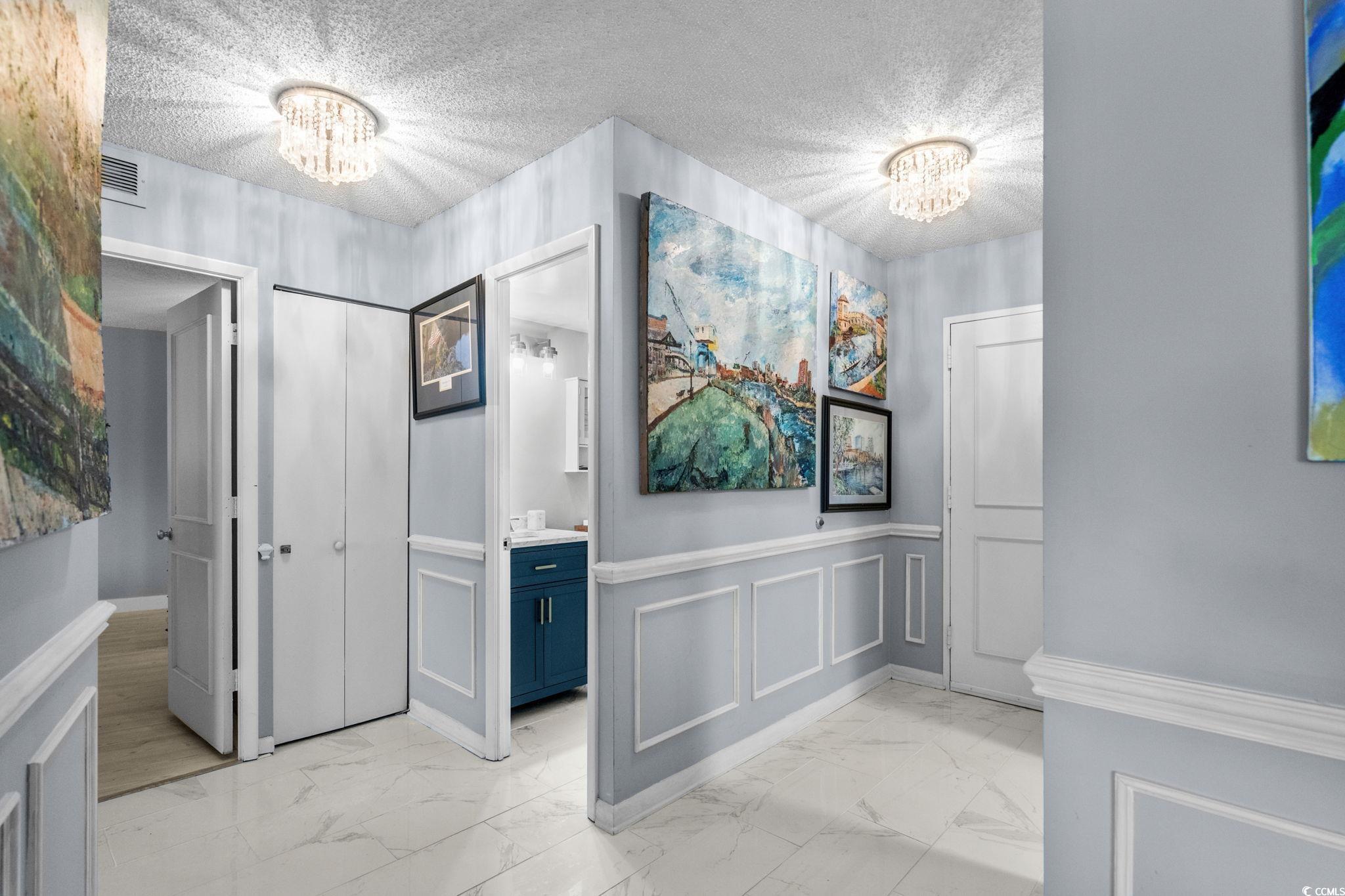 Welcome to this inviting 2-bedroom, 2-bathroom condo located on the second floor of the desirable Atlantis building in Myrtle Beach. This beautifully updated unit offers a comfortable coastal retreat with stylish finishes throughout. The bright and open layout features neutral paint and flooring, abundant natural light, and upgraded fixtures that enhance the modern feel. The kitchen is a standout with white cabinetry, granite countertops, and a stylish backsplash, creating a clean and timeless design. Both bathrooms have been thoughtfully updated, and the convenience of in-unit laundry adds to the ease of everyday living. Decorative trim details add a touch of elegance, making this condo feel polished and well cared for. With rental restrictions in place, the building maintains a more residential atmosphere, making it a popular choice for those seeking a primary residence or a relaxing second home just steps from the beach and all that Myrtle Beach has to offer. This building is conveniently located near the Sky wheel, Myrtle Beach Boardwalk, Broadway at the Beach, restaurants, shopping, entertainment, and more. Owners are allowed to have a pet, restrictions may apply. Building amenities include an outdoor pool, gym, sauna, recreation room, and storage area. The HOA fee includes building insurance, water, sewer, trash pickup, pest control, internet, and more. Square footage is approximate and not guaranteed. Buyer is responsible for verification.