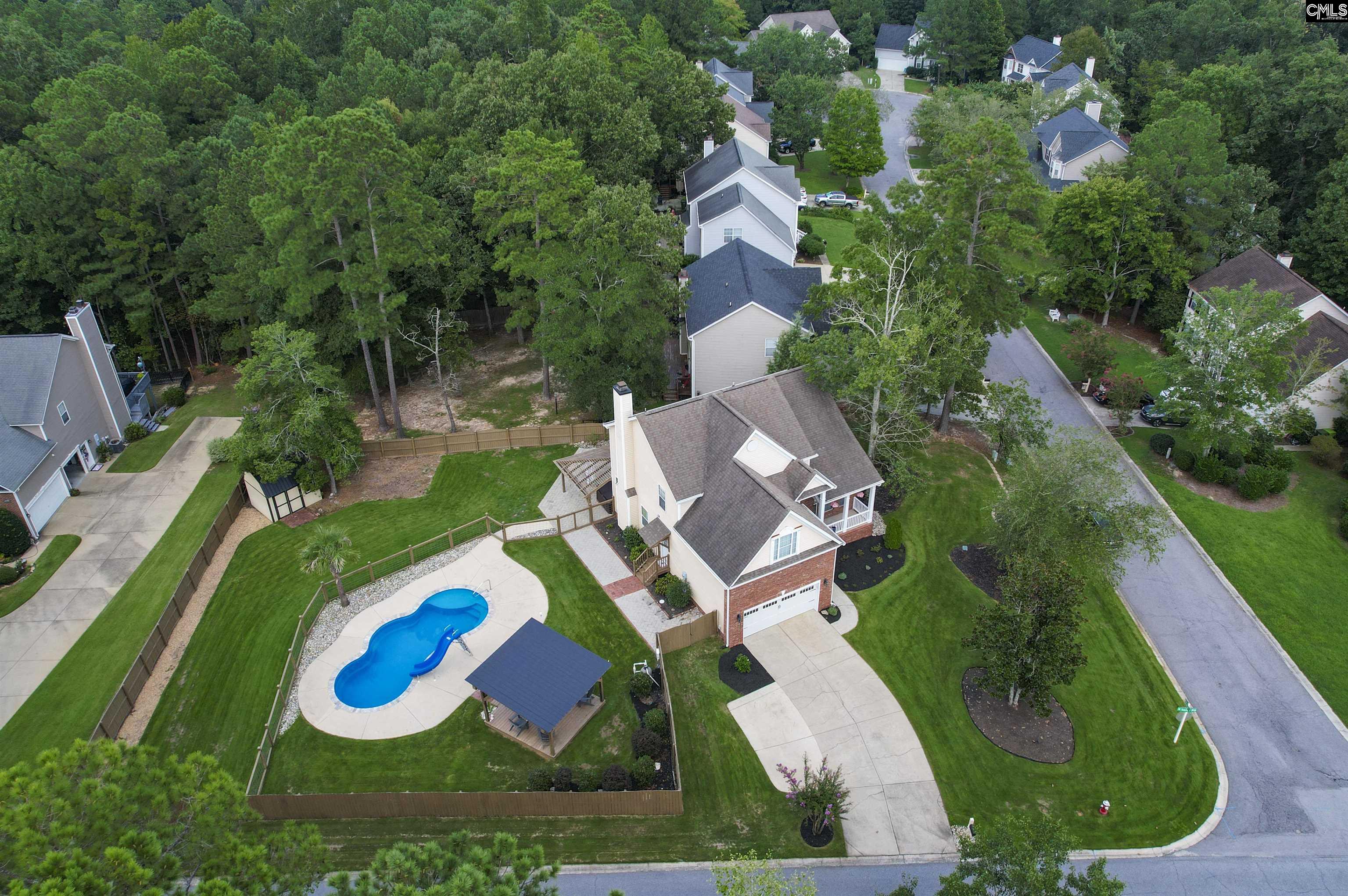 This stunning luxury home blends elegant design with resort-style living, beginning with a breathtaking backyard oasis featuring a built-in swimming pool complete with a slide, relaxing hot tub, private cabana, outdoor fireplace, shed, and full fencing for privacy. Inside, the home welcomes you with a grand two-story foyer that opens into a warm living area anchored by a wood-burning fireplace. The gorgeous kitchen is a true showpiece, showcasing quartz countertops, high-end appliances, a massive island with bar seating, built-in window seating, a stainless steel farmhouse sink, and striking designer island lighting. The spacious primary suite offers a serene retreat with a beautifully remodeled bathroom featuring a freestanding soaking tub, separate shower, and a massive walk-in closet with custom built-ins. Located in a sought-after neighborhood, residents enjoy exceptional amenities including a junior Olympic swimming pool, tennis and volleyball courts, playground, soccer fields, and a clubhouse, all with easy access to I-26 and zoned for the award-winning Lexington Richland 5 school district. Washer & Dryer do NOT convey. Refrigerator, hot tub, outdoor fireplace & all pool equipment/pool robot conveys. Termite Bond is transferable. Water Heater replaced 2025 & leaf filter gutters installed 2024 with lifetime warranty. Disclaimer: CMLS has not reviewed and, therefore, does not endorse vendors who may appear in listings.