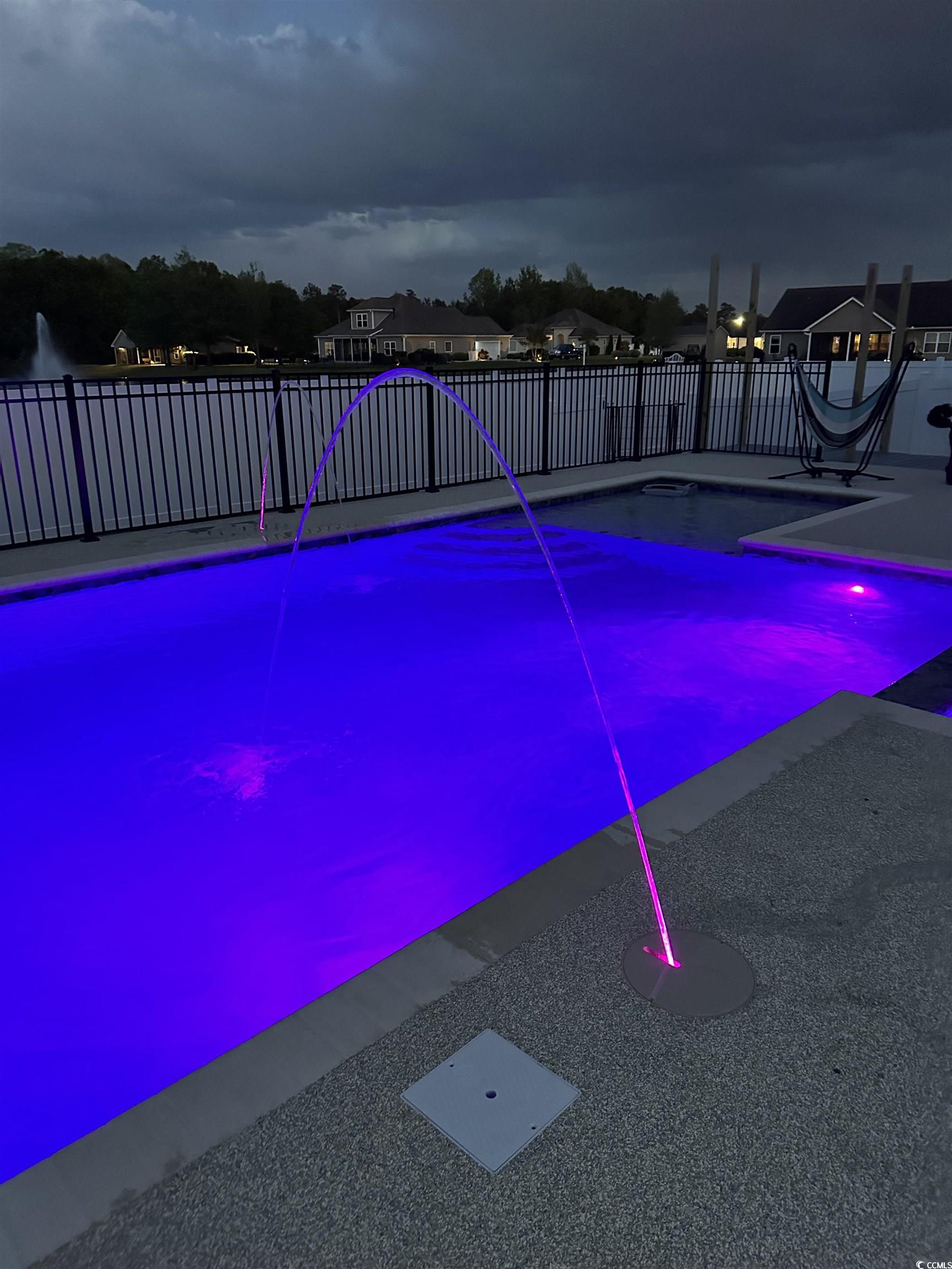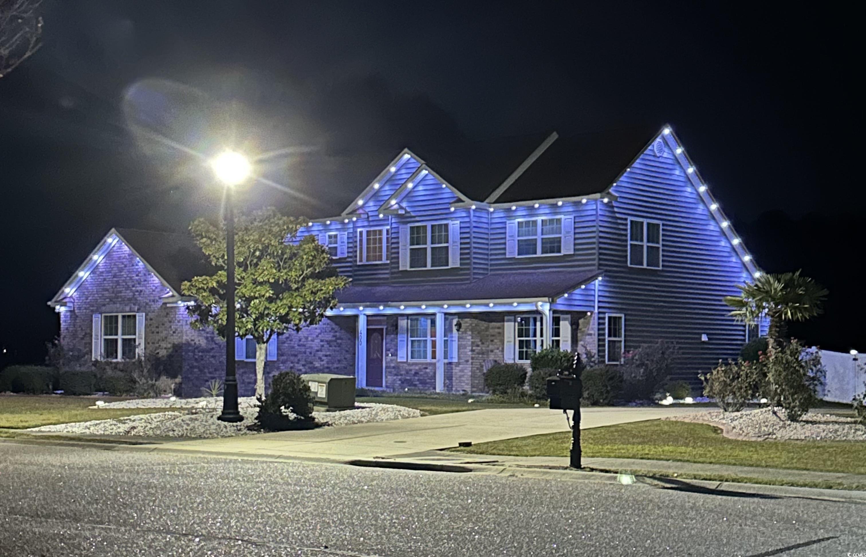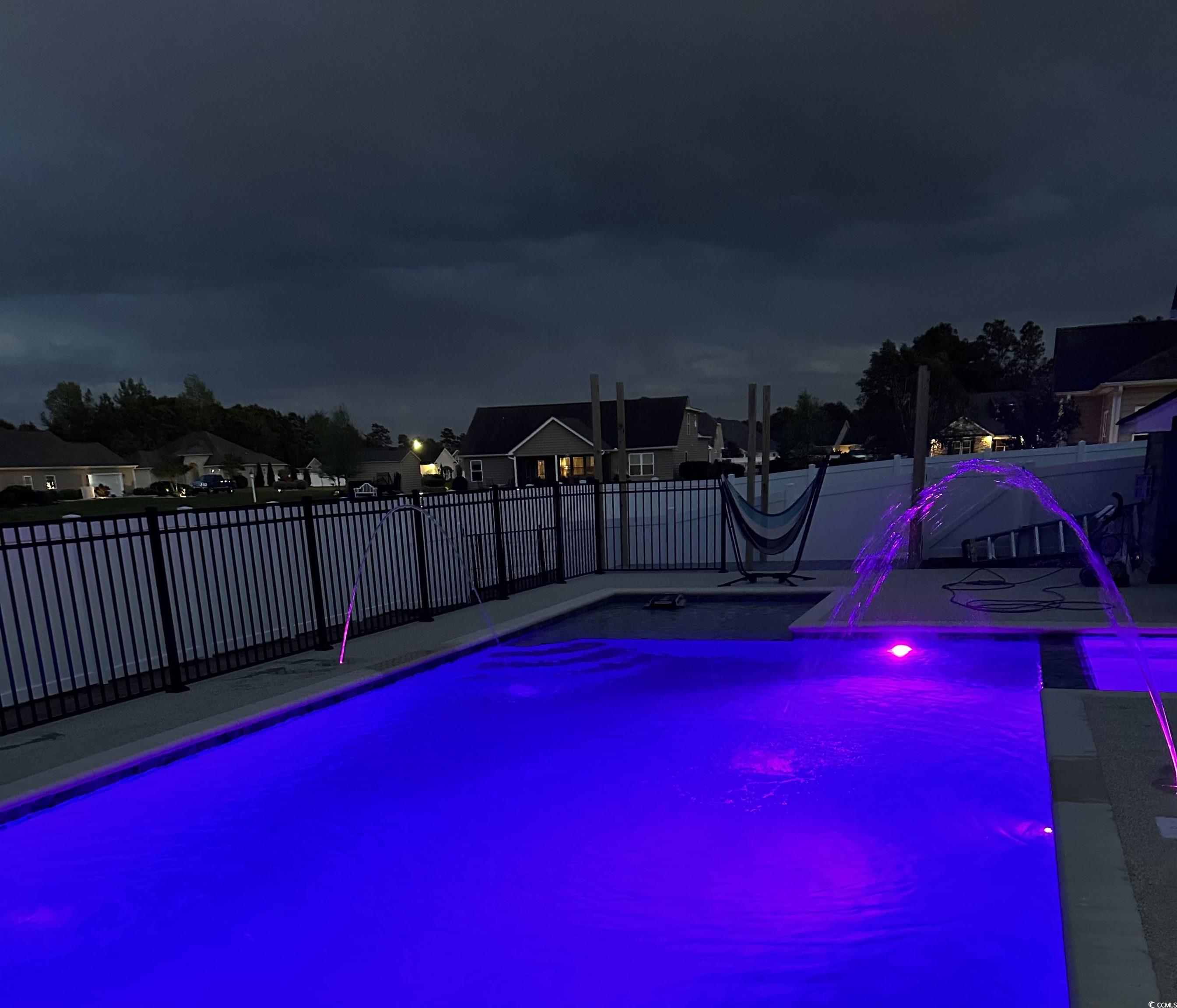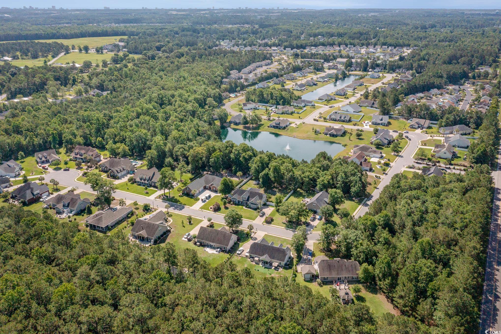 This spacious home features 5 bedrooms and 2.5 baths, set in the sought-after gated community of The Hunt Club at Hunters Ridge. Enjoy stunning lake views and a backyard oasis with a heated saltwater pool, spa, Cool Touch pebble decking, artificial turf play area, and full privacy fencing-all app-controlled for convenience. The first-floor master suite offers tray ceilings, a cedar-lined walk-in closet, and a luxurious en-suite with walk-in tub and separate tiled shower. The flooring on the main living area is hardwood. Additional bedrooms are upstairs with LVP flooring. A cozy Carolina room with fireplace adds charm. Upgrades include a 3-car garage with new drive motors, coils, and rollers (2024), plus custom shelving throughout. Ideal as a primary residence, vacation home, or rental. The Hunt Club at Hunters Ridge Plantation offers residents Low HOA fee, community pool, and just 15 minutes to the beach, with easy access to shopping, dining, golf, and healthcare.