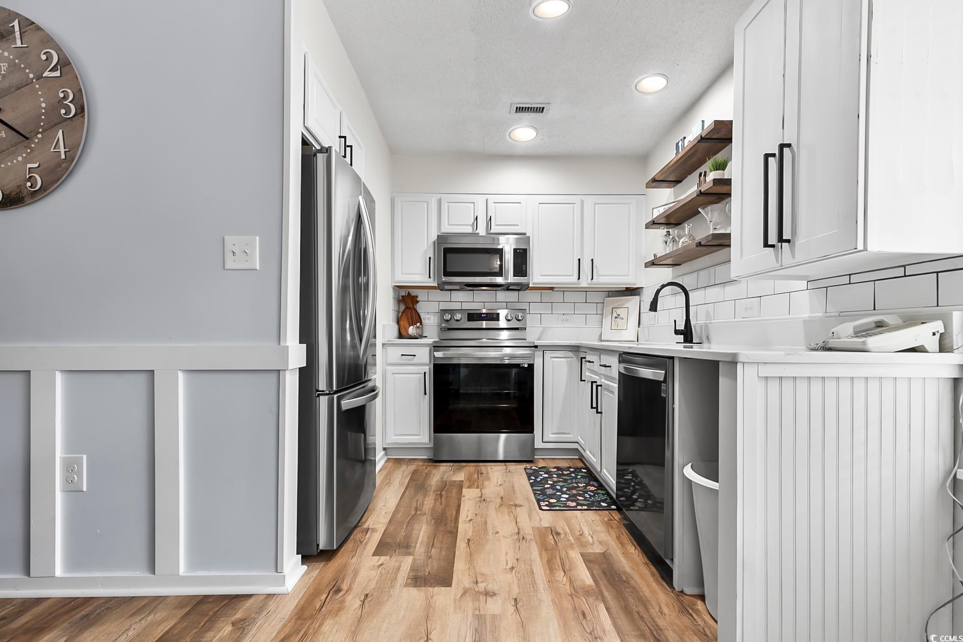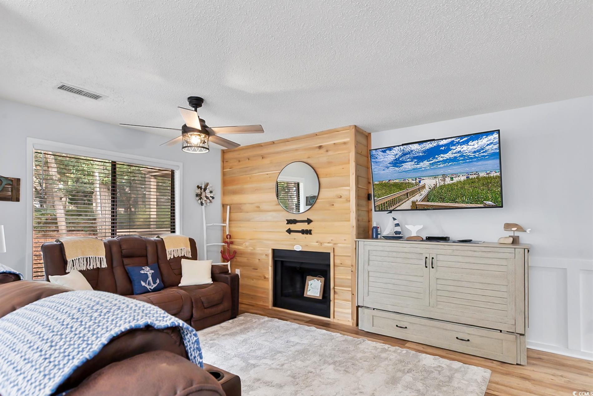 Welcome to this beautifully updated and fully furnished one-bedroom villa tucked inside the lush, park-like setting of Kingston Plantation’s Richmond Park. From the moment you enter, you’re greeted with charming touches like the striking wood-plank accent wall in the living room, a large flat-screen TV, cozy electric-reclining sofas, and a cleverly designed Murphy bed with a queen memory-foam mattress for extra guests. The kitchen shines with quartz countertops, custom cabinetry, stainless-steel appliances, a stylish tile backsplash, and open shelving that adds a modern flair. Just off the kitchen, the dining area fills with natural light and overlooks the graceful live oaks that make this community so special. The spacious primary bedroom offers a king bed and a generous walk-in closet complete with built-in shelving. The updated bathroom features fresh, modern décor and a shower/tub combination. Owners enjoy easy access to a nearby community pool and an oceanfront pool situated between North Hampton and South Hampton. Additional membership options include 78 Fitness featuring tennis and pickleball courts, an indoor pool, putting green, golf simulator, and Spa 33. Onsite oceanfront dining and the ability to join the rental program for waterpark access add even more value. Kingston Plantation is a true oceanfront gem in the sought-after Arcadian Shores area that is just minutes from shopping, dining, golf, and entertainment. Come take a look and fall in love. Schedule your showing today!