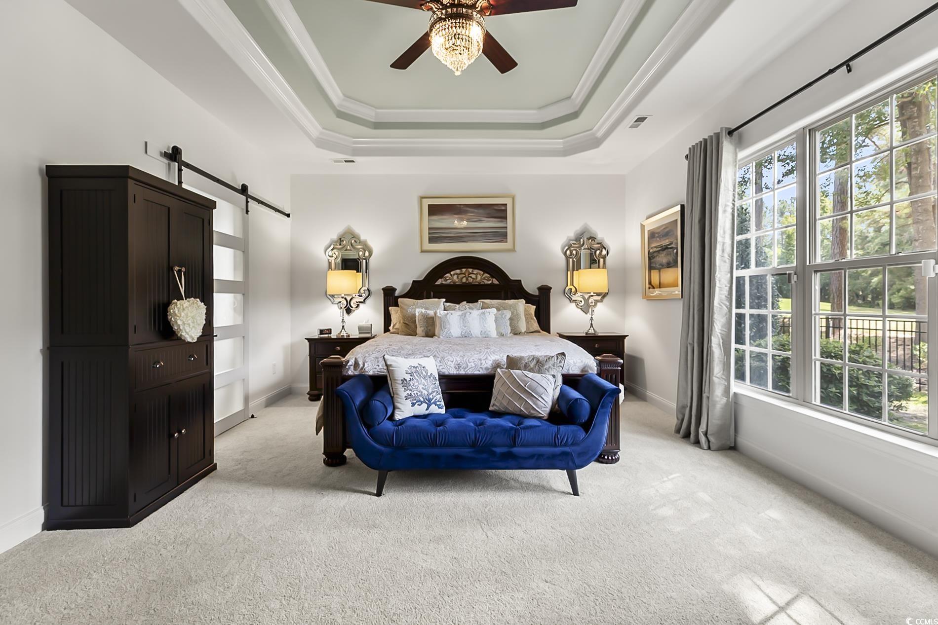 PRICE IMPROVEMENT! This GORGEOUS Mediterranean style Golf Course home is sure to WOW you from the moment you see it! Located just 15 minutes from the white sand and aqua water of Myrtle Beach, within the desirable Parkland section of the Legends Golf Community, this recently updated home is situated in the midst of a park-like setting on nearly a half-acre, with only one neighbor beside it. Custom design features include 12-foot tray ceilings with 10-inch crown-molding and elegant trim throughout. An abundance of windows bring plenty of natural light into its open living spaces. The current owners have spared no expense enhancing the home to its full potential including fresh paint both inside and out. It's tasteful and clean 'Chantilly Lace' white walls accented with splashes of 'Sea Salt' blue-green touches make you feel like you have finally arrived at your new beach home! The large & open kitchen has plenty of storage and was recently updated with all new appliances, a farm-style stainless sink w/champagne gold touchless faucet, new kitchen quartzite countertops and marble tile backsplash. The kitchen cabinets have been professionally updated with fresh white paint, new champagne gold hardware, and glass doors. Elegant chandeliers and pendant lighting have been added to the kitchen, formal dining and informal dining spaces. Beautiful wood floors are in the common areas and new plush carpet was recently installed in all bedrooms, den/office and huge bonus room over the 3-car garage (which has its own bathroom with walk-in shower). The bonus room does have a closet so it could easily serve as a 4th bedroom. The first level primary bedroom is more than generous in size with 2 walk-in closets, an ensuite with soaking tub, separate shower and vanity with new sinks, faucets and new quartzite countertops. Two secondary bedrooms share a jack & jill bath, and there is a guest powder bathroom with new sink, faucet and countertops across from the large laundry room. Step through the double wide sliding doors off the family room into the screened-in Carolina room to enjoy the outdoors and nature comfortably, while the adjacent covered patio offers plenty of space to barbeque and watch the golfers tee-off from a fun, yet challenging par-3 hole. The front yard is beautifully landscaped and there is even room for a pool in the fenced-in backyard! If you're searching for a GORGEOUS home that offers elegance, comfort, style and charm with plenty of space, both inside and out, you don't want to miss this opportunity. The Legends Golf Course offers 3 courses within the neighborhood, a huge clubhouse and pro shop, and a separate pub for casual dining. The Parkland community also has its own clubhouse, swimming pool, pickleball and other shared amenities. Pride of ownership can be seen throughout the Parkland neighborhood. Convenient to golf, the beach, the intracoastal waterway, restaurants and shopping - it doesn't get much better than this! The seashell chandelier in the foyer does not convey with the sale. Buyers to verify all measurements. Listing agent is related to seller.