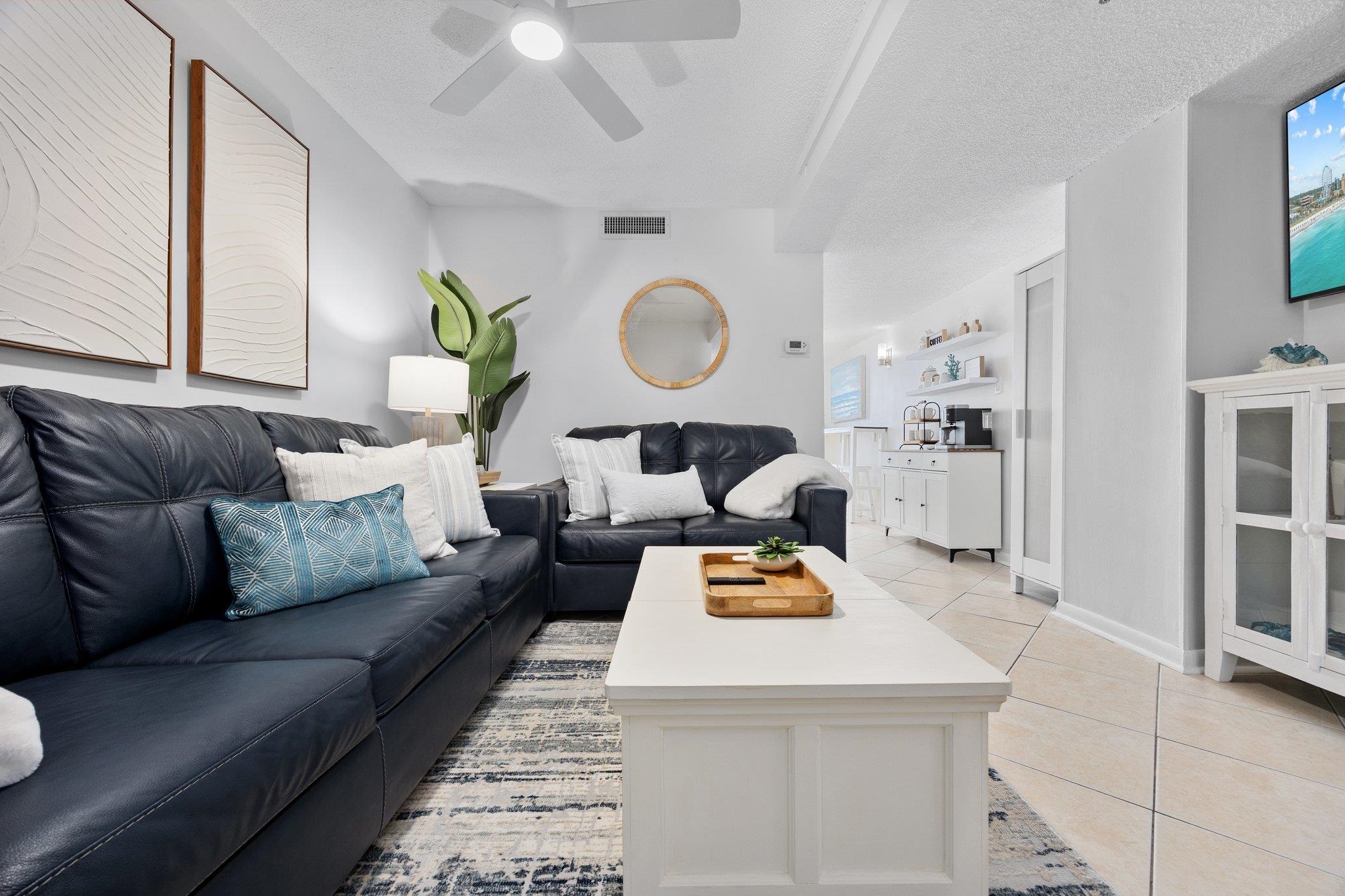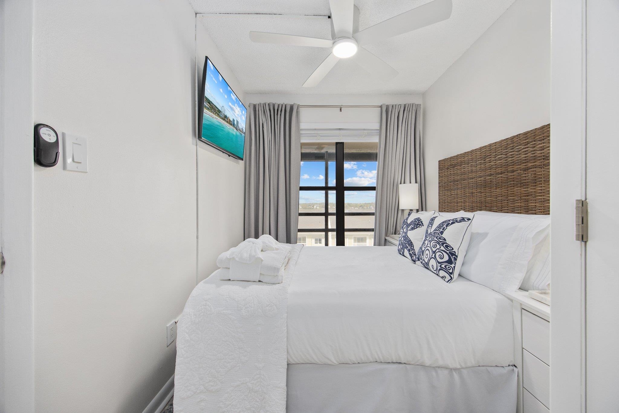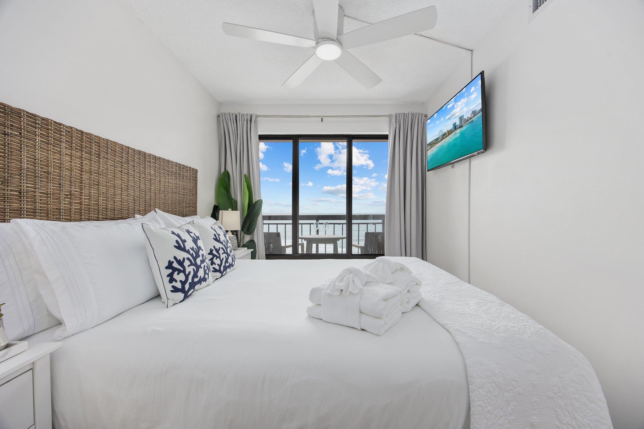 Introducing an exceptional oceanfront residence at Buena Vista, gracefully positioned along the pristine shoreline of Cherry Grove Beach! This exquisitely appointed 2-bedroom, 2-bath condominium has been completely transformed with a full luxury renovation completed in 2024, offering a sophisticated coastal retreat where every detail has been carefully curated. From the moment you enter, the residence showcases a refined blend of modern elegance and relaxed seaside living. Both bathrooms were fully reimagined from floor to ceiling in 2024 and now feature stunning spa-inspired designs with elegant tilework, frameless glass shower doors, and a serene, upscale ambiance reminiscent of a luxury resort. The beautifully updated kitchen was also enhanced in 2024 and includes a new refrigerator with water and ice maker, complementing the thoughtfully designed space that is both functional and stylish. Additional recent upgrades include a new washer and dryer installed in 2024 and a new water heater in 2025, ensuring effortless living and long-term peace of mind. Comfort and modern technology are seamlessly integrated throughout the home. Ceiling fans are installed in every room, while the HVAC system is enrolled in a professional maintenance program with scheduled service twice annually. The residence also features new Samsung smart TVs, a smart thermostat, and a smart door lock, delivering convenience, security, and a truly contemporary lifestyle. Offered fully furnished and presented in immaculate condition, this turnkey property reflects pride of ownership and meticulous care. Every furnishing and detail has been thoughtfully selected to complement the elevated coastal aesthetic. Residents of Buena Vista enjoy the comfort of a secure building, brand-new elevators installed in 2025, a sparkling oceanfront pool, and the privilege of direct beach access just steps away. Whether envisioned as a luxurious private getaway or a premier investment opportunity, this remarkable oceanfront residence embodies the very best of refined coastal living—where sophistication, comfort, and the beauty of the Atlantic come together effortlessly. All measurements are approximate. Buyer and buyers agent responsible for verification of all information.