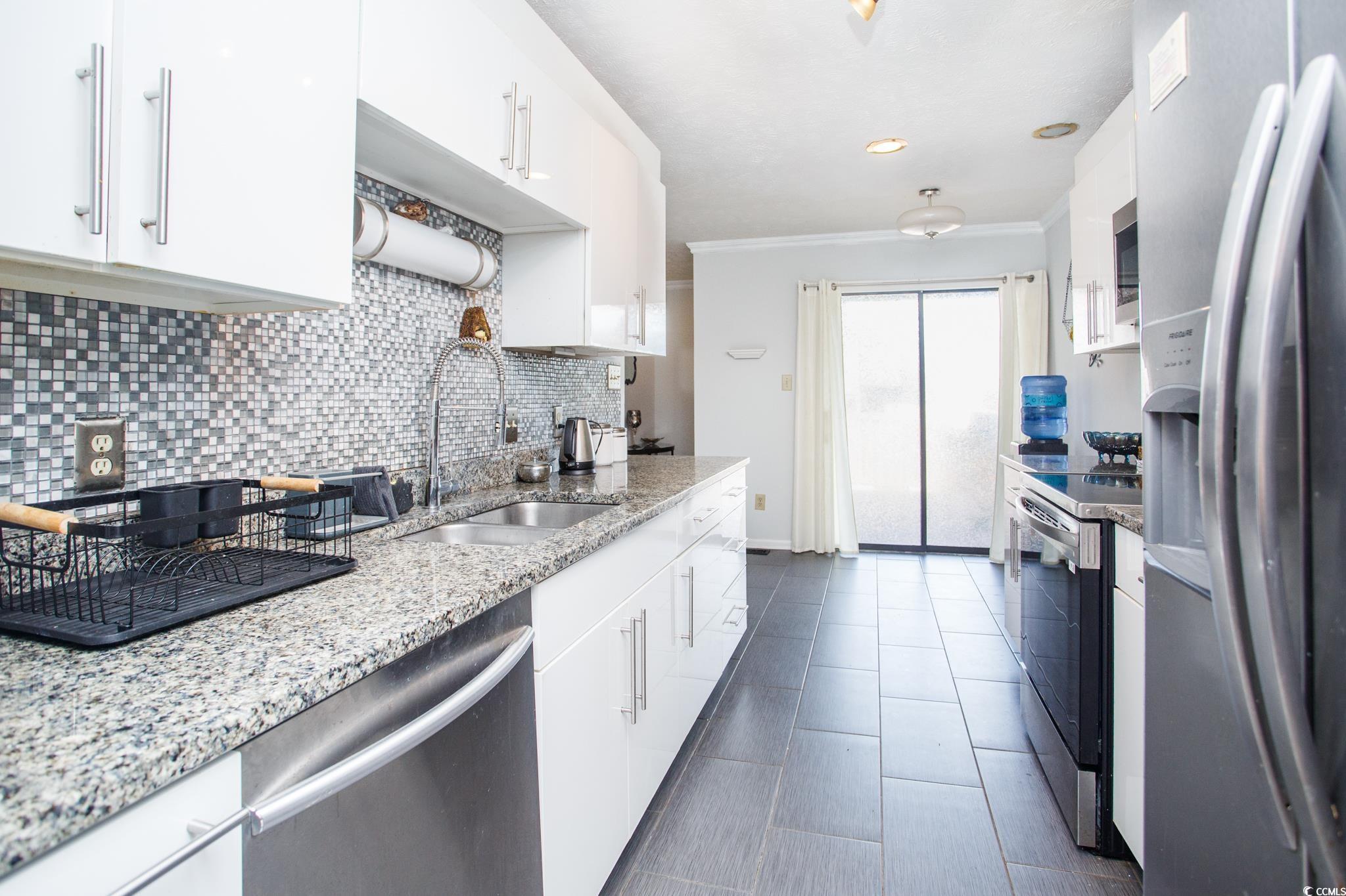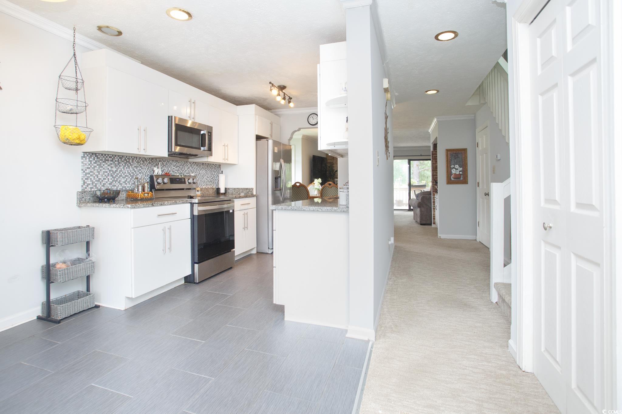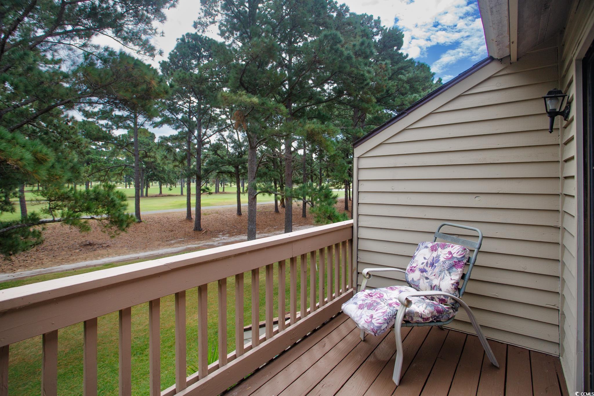 A true townhome. Kitchen features granite counter and soft close cabinets. Three bedrooms, all with their own bath. Master bedroom features his & her closets and a private balcony. Second bedroom with a walk-in closet. Huge living room with lots of daylight and a fireplace. Walk-in pantry and counter bar. Deck or balcony overlooking the stunning serine view of the Premier Myrtle Wood Golf Course. Private one car garage which enters into a fenced landscaped courtyard. Near all area attractions, Broadway at the Beach, Pelicans Baseball, Myrtle Beach Airport, shopping, restaurants and more. Less than two miles from the beach. Turnkey. See today.
