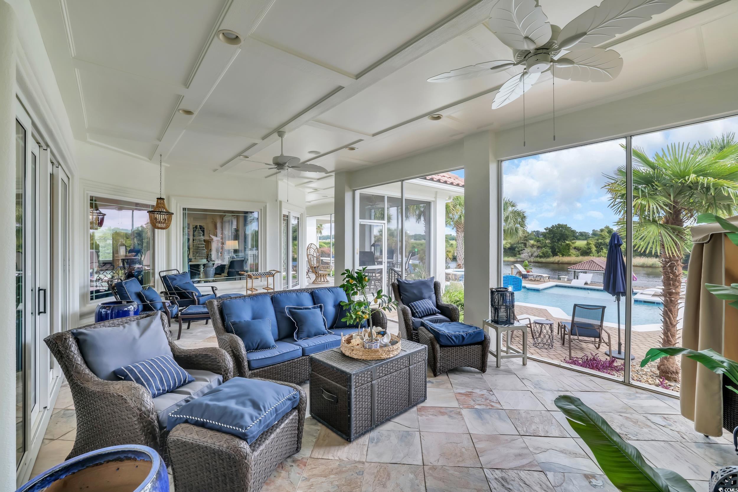 waterfront home in the gated Dye Estates at Barefoot Landing. This 4-bedroom, 3-bathroom residence features a mostly single-level layout with an open floor plan, a well-equipped kitchen with professional Viking appliances, and versatile spaces including an upstairs bonus room and a separate office or workout room. Stacking sliding doors connect the living room to a screened patio, creating seamless open-air living. The outdoor area is designed for relaxation and entertainment, with a pool, hot tub, covered lanai with summer kitchen, and direct Intracoastal Waterway access including a private dock with lift. Owners also enjoy access to the Barefoot Resort beach cabana, with the beach only a short drive away. The Dye Estates provide a secure setting near golf, shopping, dining, and entertainment at Barefoot Landing.