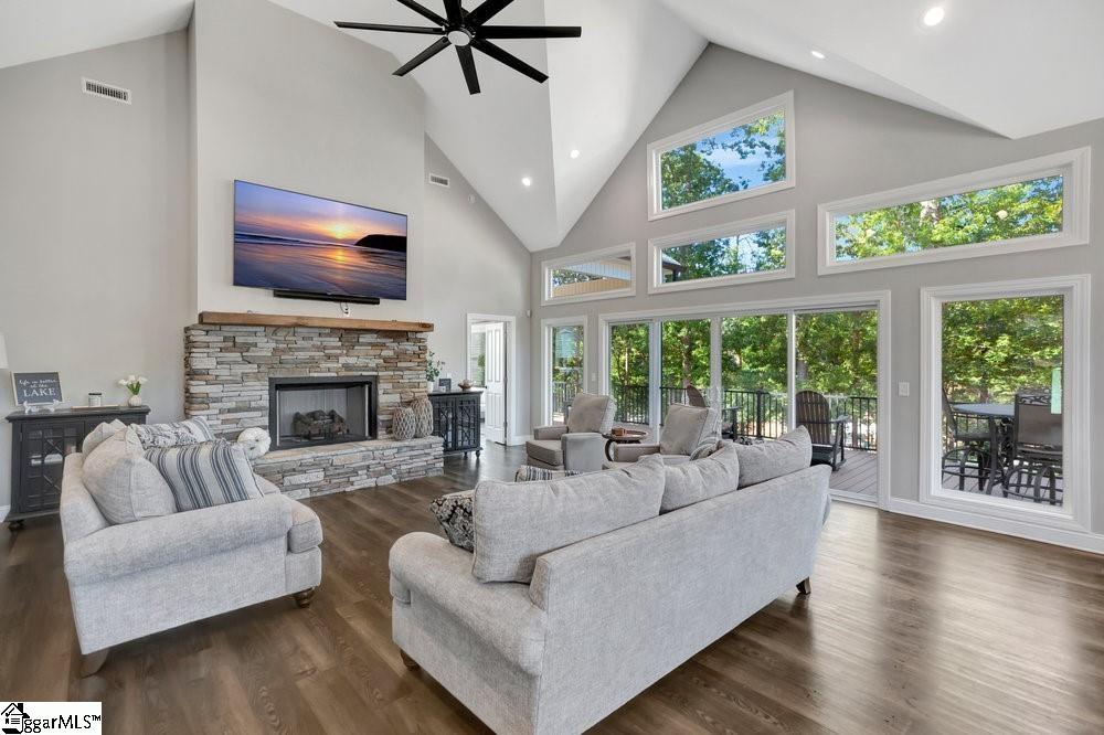 The Perfect lake Hartwell Home, No HOA, a great investment for a VRBO rental or private residence. This 5,200 heated sq ft and 7300 under roof, newly constructed 2023 home has 7 bedrooms and 5 full baths and this home comes furnished. As you walk from the inviting front porch into this beautiful open floor plan home, the first thing you'll notice is the incredible 440ft length of glass doors, windows and transoms that fill the entire back of the house to give you a lake view. Cooking in the stunning kitchen is a delight as you look out over the peaceful lake. The custom kitchen boasts beautiful white cabinets with brushed nickel pulls, stainless steel appliances, a large, beautiful contrasting navy island with seating and lovely quartz countertops throughout. The 16” vaulted ceilings in the kitchen and living room just adds to its appeal. The kitchen opens up to the airy living room with continued lake views and ample space for relaxing in front of the magnificent stone fireplace and hearth with natural wood mantle or watching tv on the 85ft screen. The 12’ x 52’ deck that opens up from the kitchen or living area has Trex flooring and a see-through rail system which gives an unobstructed views of the lake and is a splendid place to enjoy hot coffee in the morning or a cold beverage at night. The very spacious master bedroom provides its own splendid lake view with an entire wall dedicated to glass doors, windows and transoms and its own porch access. The master sanctuary also has a lovely master bathroom with two separate sinks, marble countertops and walk-in shower with rain shower head and separate handheld shower head. The walk-in closet has access to the laundry room with a separate sink and lots of cabinet and closet space. There is a separate office / exercise room which is an essential for working from home and there is also a guest bedroom with its own access to the hall full bath with tub/shower. The handsome luxury vinyl flooring extends throughout the entire house. Upstairs there are 2 nice size bedrooms and a full bath, a great space for a family with a baby for a quiet space. Downstairs there are 24 feet of glass doors and windows for more lake views. In the living area, there is another Sony 85 inch TV with built in surround sound system perfect for movie night or watching those ball games with family or for your guests. This level has its own full custom kitchen with granite countertops, modern stainless appliances including a double oven and an ice machine. 3 large bedrooms and 2 full bathrooms, laundry room and a safety shelter room This home can sleep 25 people. This is a perfect set up for renting, or for an in-law area or teenage haven. The downstairs patio is a magnificent place to entertain. It has a state-of-the-art outdoor kitchen. It features a KitchenAid 36 inch gas grill, Traeger pellet grill, Komodo Joe ceramic grill, Kitchen Aid power burner and American classic flat top grill. The outdoor kitchen has concrete countertops and a 33in stainless sink, The patio has immense space for seating and firepit area. This is the best place to sit and enjoy the lake and the great outdoors, hang with friends or view some wildlife. The front and back lawn are both AstroTurf which looks amazing with very low maintenance. The flat grass area is also the perfect spot for playing a game of corn hole. The private maximum size two story dock has two lifts and lots of extra conveniences. There is a 32’ x 22’ double garage with 13’ ceilings that can fit a wake boat with a tower and a 30x30 detached garage and a There is also plenty of additional parking. This home is located close to golfing, shopping, restaurants and 50 miles from GSP International Airport. It is 20 miles from Clemson University and is less than 5 miles from 3 popular wedding venues if considering this property for rental purposes. Booked 100 nights in 2024 @$1200 - $1500 these are transferable