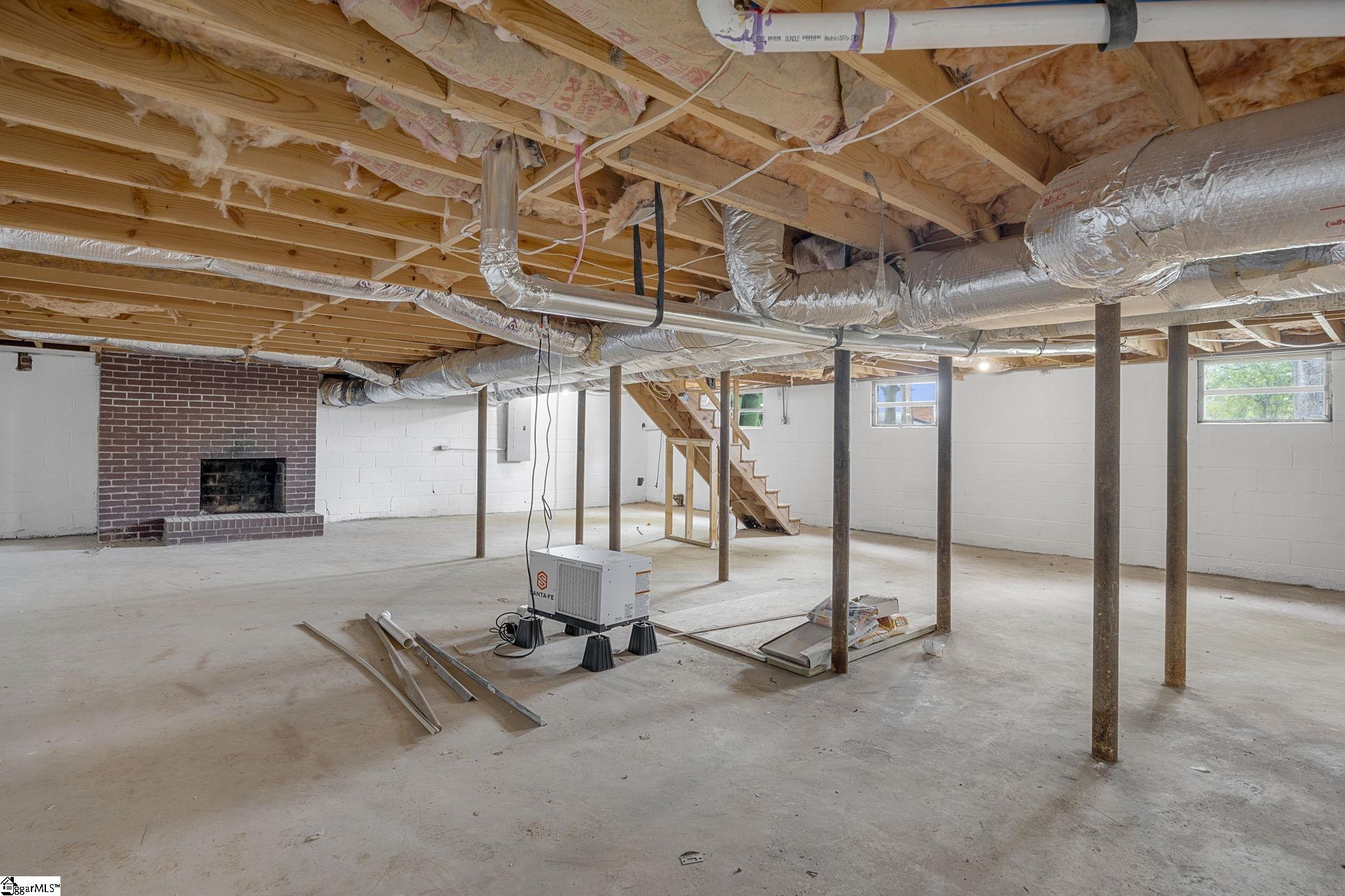 Welcome to this beautifully updated 4-bedroom, 3-bath brick ranch in desirable Mauldin, SC, situated on a spacious 1.18-acre lot. Offering over 4,100 square feet across main and basement levels, this home combines modern updates with functional living space. The main level features over 2,400 square feet with hardwood floors throughout the living room, hallway, and all bedrooms. The renovated kitchen showcases quartz countertops, custom cabinetry, stainless steel appliances, and opens seamlessly into a spacious great room with LVP flooring and a cozy corner fireplace—ideal for everyday living and entertaining. All bathrooms have been thoughtfully updated with new ceramic tile. The primary suite offers a zero-entry shower, lighted mirror, and a large walk-in closet complete with a custom closet system and dedicated shoe cabinet. The closet conveniently connects to the hall laundry room, which includes built-in cabinetry and a folding counter for added functionality. A mud room with a full bath provides flexible space for guests or everyday use. Step outside to enjoy the new deck overlooking the expansive yard. The unfinished basement level offers over 1,700 square feet, including a full bath and a one-car garage, providing additional living, recreation, or storage space. Conveniently located near shopping, dining, and major roadways, this move-in ready home offers space, updates, and versatility in a sought-after location.