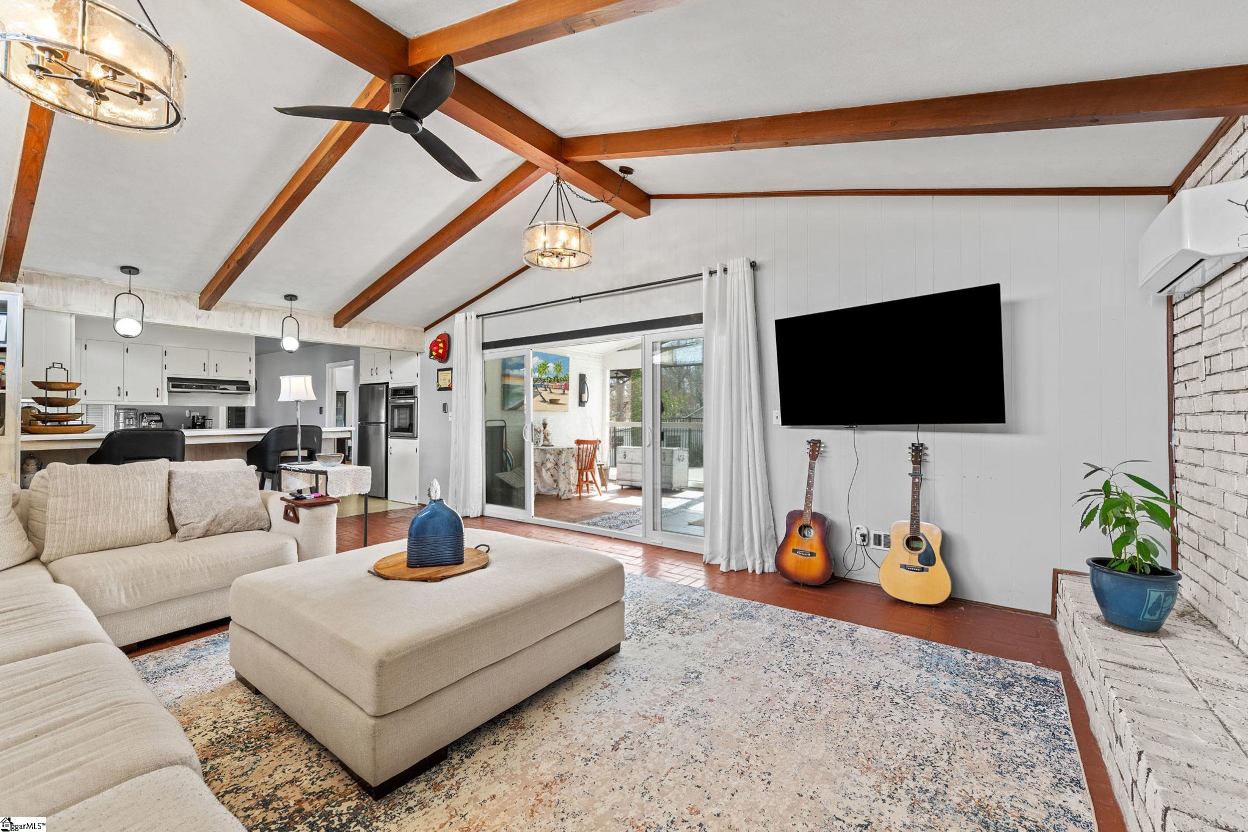 Welcome to this stunning mid-century modern home, a perfect blend of modern amenities and timeless charm, nestled on approx 1 acre. This 3-bedroom, 3-bath gem has had several upgrades while maintaining the character of mid-century charm and offers an ideal retreat for those seeking a yard with privacy. The second floor complete with HARDWOOD FLOORS boasts a newly remodeled and spacious MASTER BEDROOM, bathed in natural light, featuring a cozy SITTING AREA, THREE DOUBLE CLOSETS, and an ENSUITE BATHROOM WITH GRANITE COUNTERTOPS. Two additional bedrooms, each with unique touches, and a FULL HALL BATHROOM complete the upper level, with ample space for family or guests. On the main floor, a BRAND-NEW FRONT DOOR opens to a welcoming entryway. The newly remodeled dining room showcases new beautiful RECLAIMED HARDWOOD FLOORS, adding warmth and character. The owners were able to keep the mid-century feel to the kitchen while upgrading to ALL-NEW STAINLESS STEEL APPLIANCES, INCLUDING A REFRIGERATOR, WALL OVEN, GLASS COOKTOP, AND DISHWASHER, all of which remain with the home. The inviting living room with BRICK FLOORING features a GAS FIREPLACE, a new in 2025 MINI-SPLIT and LARGE DOUBLE SLIDING GLASS DOORS that lead to a SCREENED-IN LANAI, offering stunning views of the gorgeous outdoor living area. With new CONCRETE PATIO, WALKWAY AND STAIRS this backyard boasts a SPARKLING IN-GROUND SWIMMING POOL, a RELAXING PERGOLA, JACUZZI, BBQ SPACE THAT INCLUDES A CUSTOM MADE WOOD-FIRED PIZZA OVEN, a CUSTOM BUILT GREENHOUSE WITH RECLAIMED WOOD and beautiful gardens including over 30 perennials. But wait, there’s more! One garage bay has been converted into a versatile space with PRIVATE ENTRANCE that includes THREE ROOMS AND A HALF BATH, making it ideal for an IN-LAW SUITE, HOME OFFICE OR HOBBY AREA. The remaining garage bay offers a functional space for a WORKSHOP OR STORAGE. For gardening enthusiasts, the property features MATURE RAISED BEDS FOR GROWING VEGETABLES, and there is also 10 SAGO PALMS, AND 2 FAN PALMS planted on the property. Schedule a tour today and experience the perfect combination mid-century charm, and natural beauty!