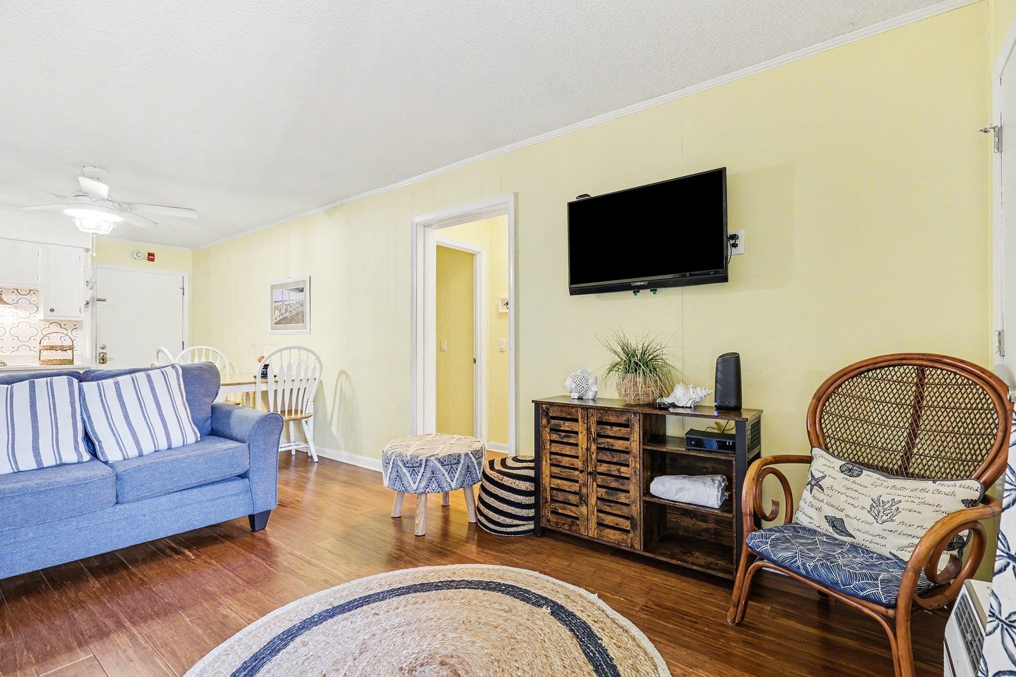 Beautifully furnished two bedroom condo just a short one block walk to the beach in the heart of North Myrtle Beach. This well maintained unit offers flexibility and value, with the ability to easily add a master bathroom to create two full baths. Reach out to the listing agent for details and pricing. Inside, you will find upgraded laminate flooring, quartz countertops in the kitchen, granite countertops in the bathroom, and stainless steel appliances. The condo is located on the second floor and features balcony doors that were replaced in 2020, adding peace of mind and modern appeal. Whether you are searching for a primary residence, a vacation retreat, or a strong income producing rental, this property checks every box with a proven rental history. Enjoy close proximity to the beach, the brand new Tanger Outlets, top restaurants, shopping, golf courses, and historic Main Street. An excellent opportunity in a prime location. Schedule your showing today before it is gone.