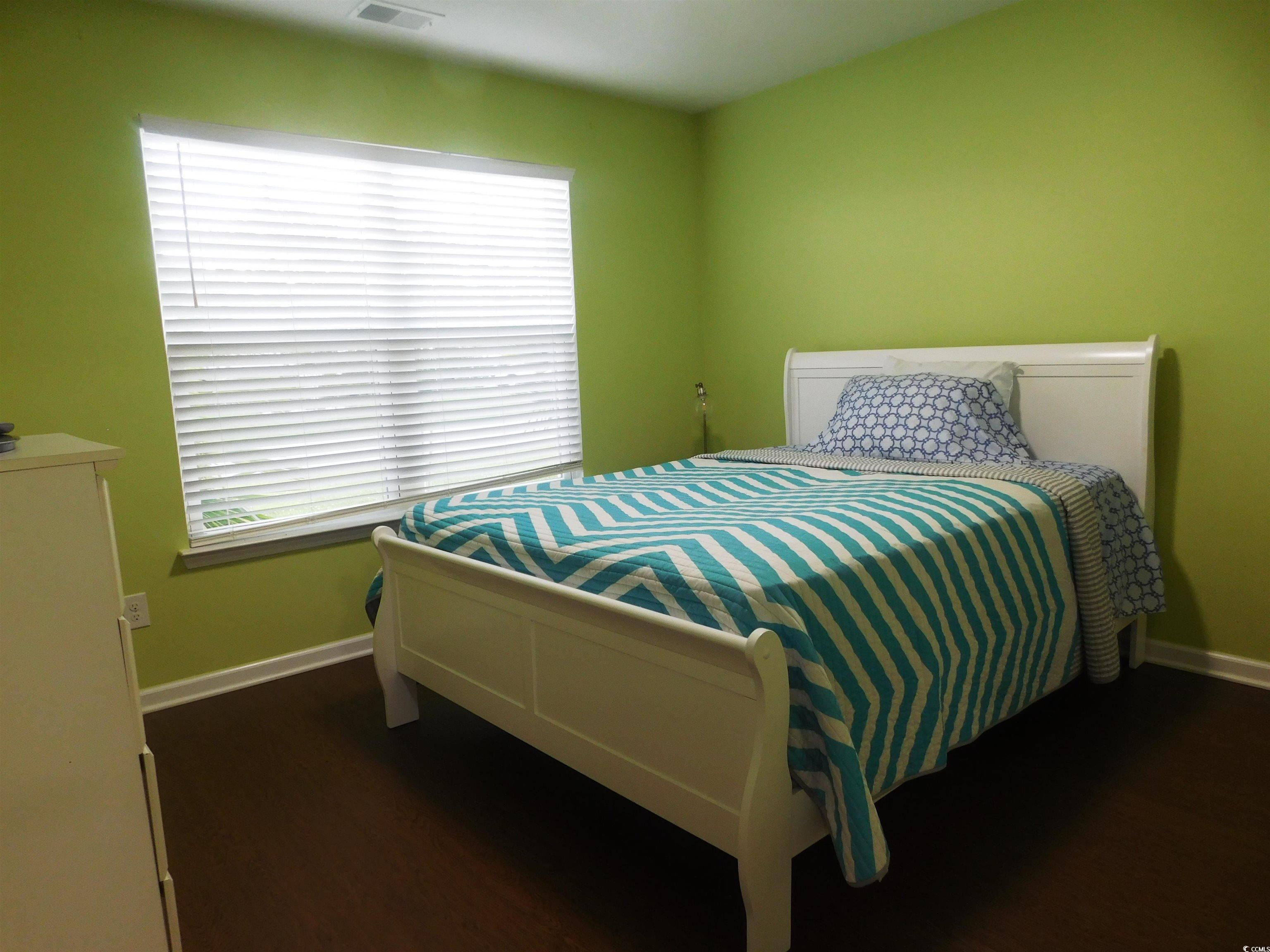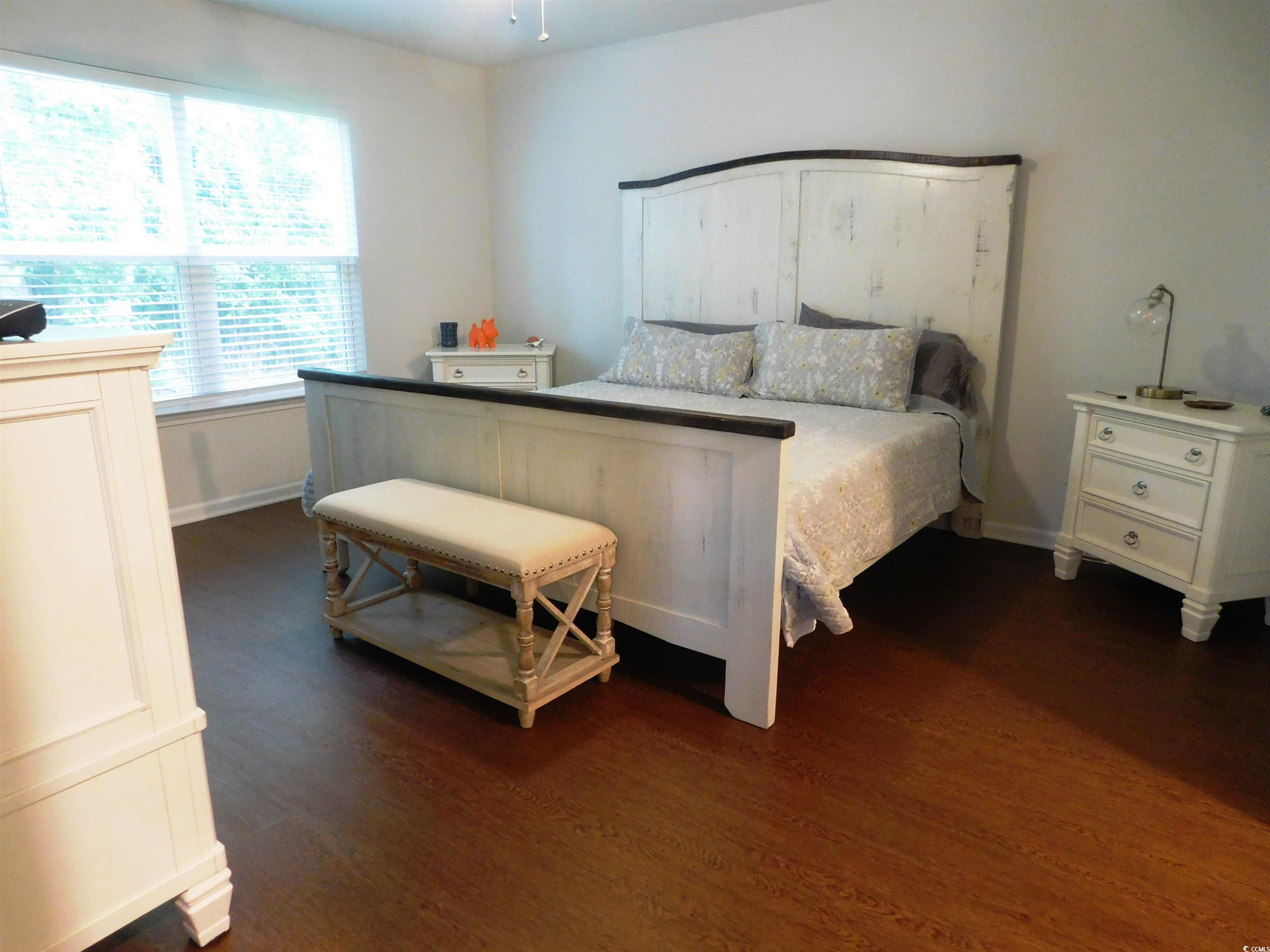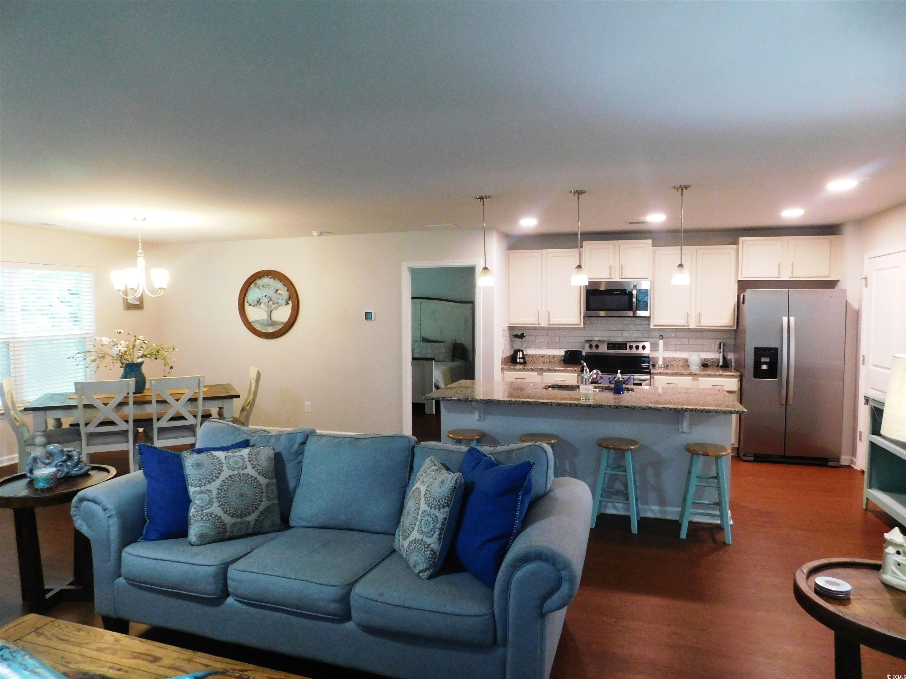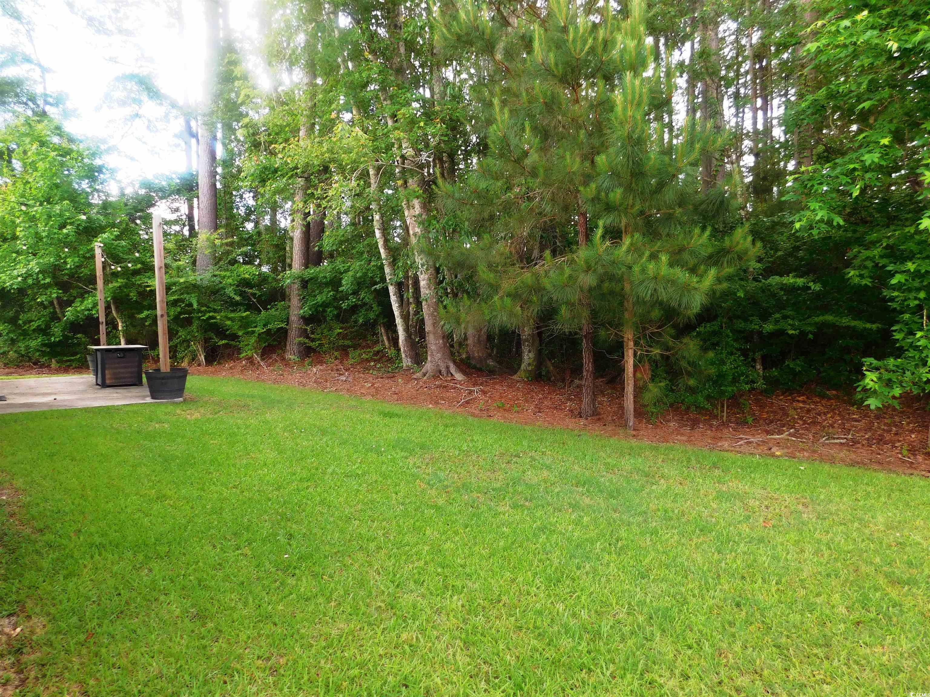 Awesome 3 BR/2BA/2 Car garage ranch home in desirable Anchors Bend nestled on phenomenal, landscaped corner lot and in close walking distance to pool and club house. Home features a cozy front covered porch. Walk into a foyer area complete with chair/squares with convenient built-in coat rack for family and guests. Be greeted with lovely wood looking luxury vinyl plank floors that flow from foyer seamlessly throughout the entire home. As you enter home, on the left find two lovely guest bedrooms, linen closet, and full bath perfectly located between the two bedrooms for convenience and easy access for guests. On the right side find a door entering home from garage for easy loading and unloading, plus located next to a terrific laundry room for easy clean up from working in yard, etc. The laundry room is plenty spacious has shelf and hooks for keys, clothes or whatever you need. Continue from foyer into a huge bright, light ,family room featuring sliders to a deck that faces back yard and natural area perfect for privacy, grilling ,and outside entertaining. Family room is totally open to the tastefully and well-planned kitchen boasting granite counter tops, breakfast bar, plus coordinating subway tile back splash, large pantry, and all appliances to include a stainless-steel side -by -side refrigerator/freezer with water & ice dispenser, range, dishwasher, and microwave. Dining area opens to entire living area and kitchen which is phenomenal for not only you and your family, but also an awesome layout for entertaining. Home has split bedroom plan, and a spacious master suite is on back side of home boasting the same beautiful wood looking luxury vinyl plank floors, high ceilings, large windows to bring in natural light and show case back yard and natural area behind it. Master also has an awesome huge walk-in closet. Venture into the large master bath featuring toilet water closet, second large walk-in closet, 5’ walk-in shower, and high double upgraded sinks with plenty of storage. The garage walls are finished and have shelves located for great storage for yard tools and any other items. Anchors Bend is a well-maintained development with a pool, community Amenity Center with a full kitchen, bathrooms, exercise room, and children’s play area. If that’s not enough, venture only minutes away to North Myrtle Beach and all it has to offer- ocean, shopping, golf, restaurants, and entertainment. See it you’ll want to call it yours.