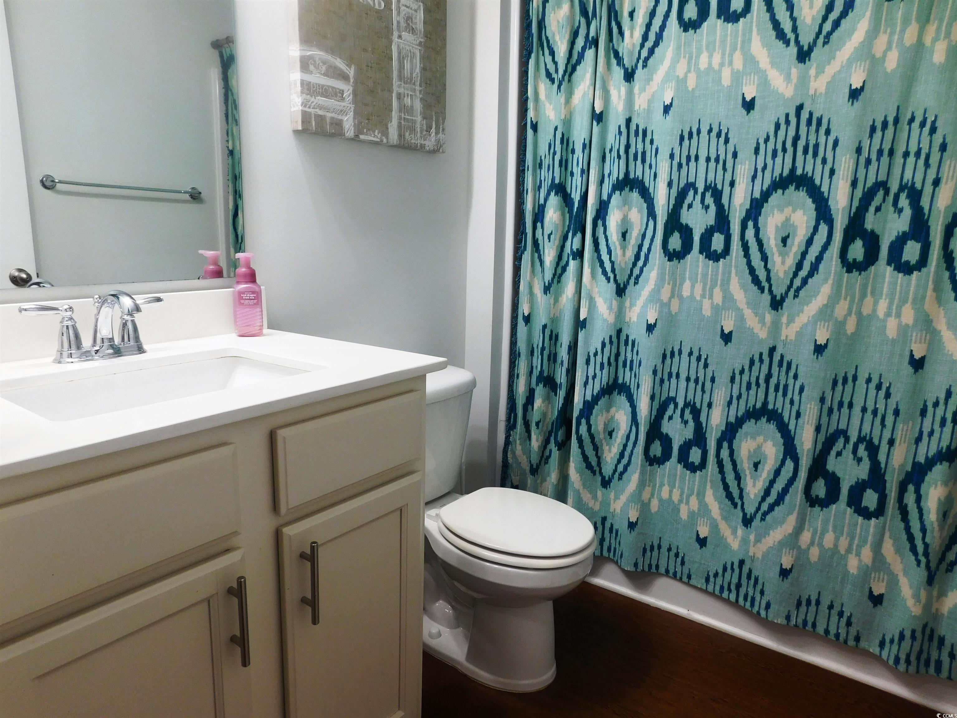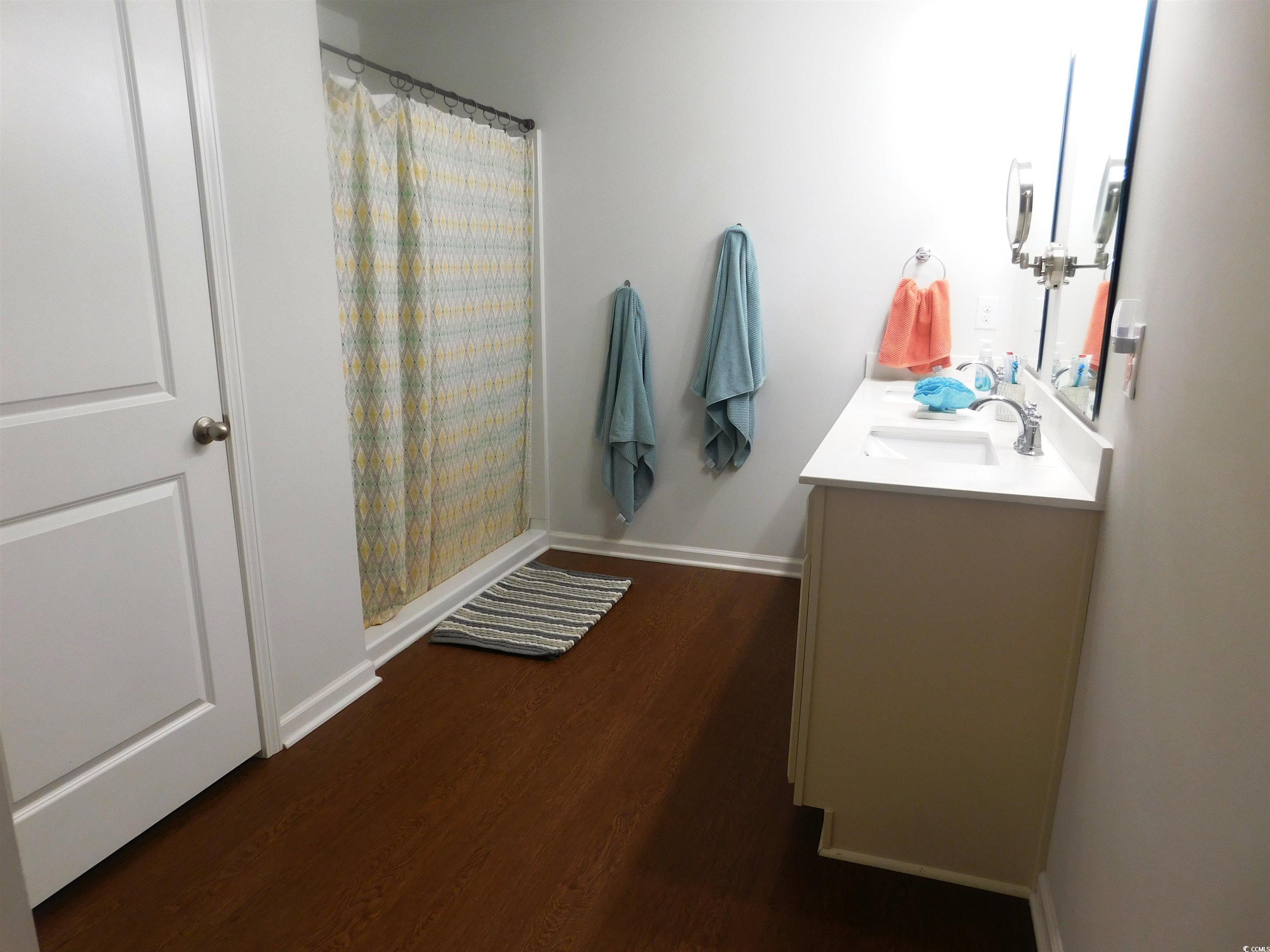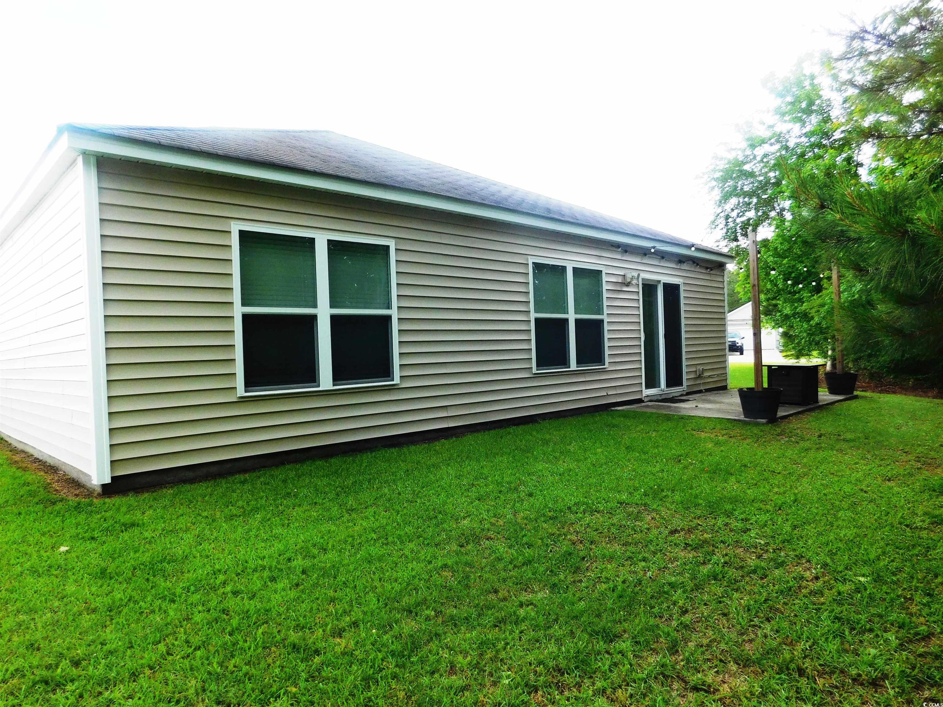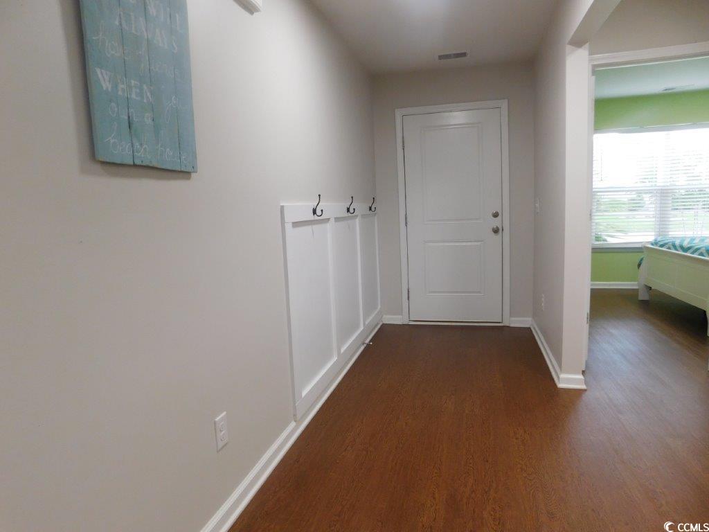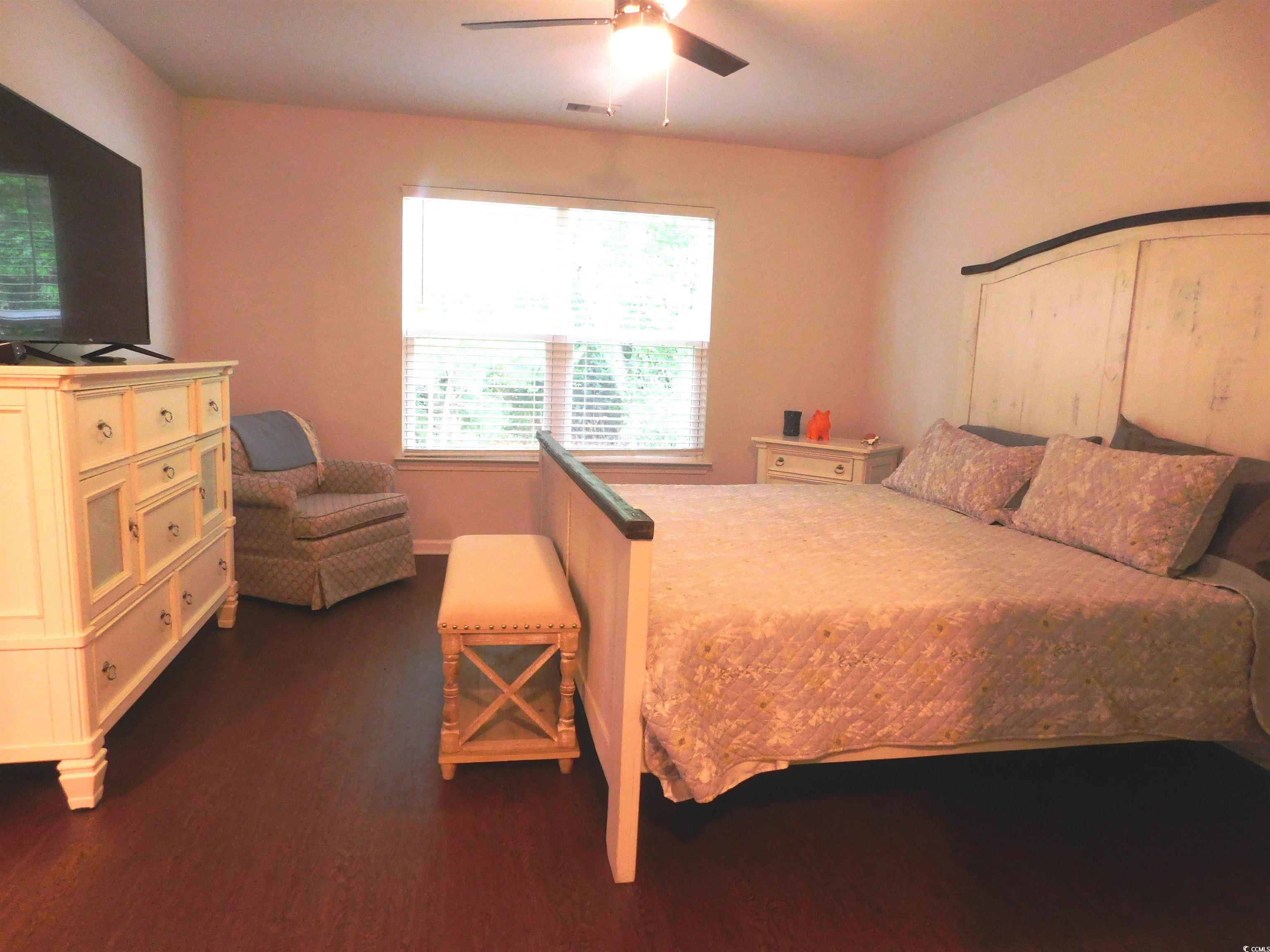 Awesome 3 BR/2BA/2 Car garage ranch home in desirable Anchors Bend nestled on phenomenal, landscaped corner lot and in close walking distance to pool and club house. Home features a cozy front covered porch. Walk into a foyer area complete with chair/squares with convenient built-in coat rack for family and guests. Be greeted with lovely wood looking luxury vinyl plank floors that flow from foyer seamlessly throughout the entire home. As you enter home, on the left find two lovely guest bedrooms, linen closet, and full bath perfectly located between the two bedrooms for convenience and easy access for guests. On the right side find a door entering home from garage for easy loading and unloading, plus located next to a terrific laundry room for easy clean up from working in yard, etc. The laundry room is plenty spacious has shelf and hooks for keys, clothes or whatever you need. Continue from foyer into a huge bright, light ,family room featuring sliders to a deck that faces back yard and natural area perfect for privacy, grilling ,and outside entertaining. Family room is totally open to the tastefully and well-planned kitchen boasting granite counter tops, breakfast bar, plus coordinating subway tile back splash, large pantry, and all appliances to include a stainless-steel side -by -side refrigerator/freezer with water & ice dispenser, range, dishwasher, and microwave. Dining area opens to entire living area and kitchen which is phenomenal for not only you and your family, but also an awesome layout for entertaining. Home has split bedroom plan, and a spacious master suite is on back side of home boasting the same beautiful wood looking luxury vinyl plank floors, high ceilings, large windows to bring in natural light and show case back yard and natural area behind it. Master also has an awesome huge walk-in closet. Venture into the large master bath featuring toilet water closet, second large walk-in closet, 5’ walk-in shower, and high double upgraded sinks with plenty of storage. The garage walls are finished and have shelves located for great storage for yard tools and any other items. Anchors Bend is a well-maintained development with a pool, community Amenity Center with a full kitchen, bathrooms, exercise room, and children’s play area. If that’s not enough, venture only minutes away to North Myrtle Beach and all it has to offer- ocean, shopping, golf, restaurants, and entertainment. See it you’ll want to call it yours.