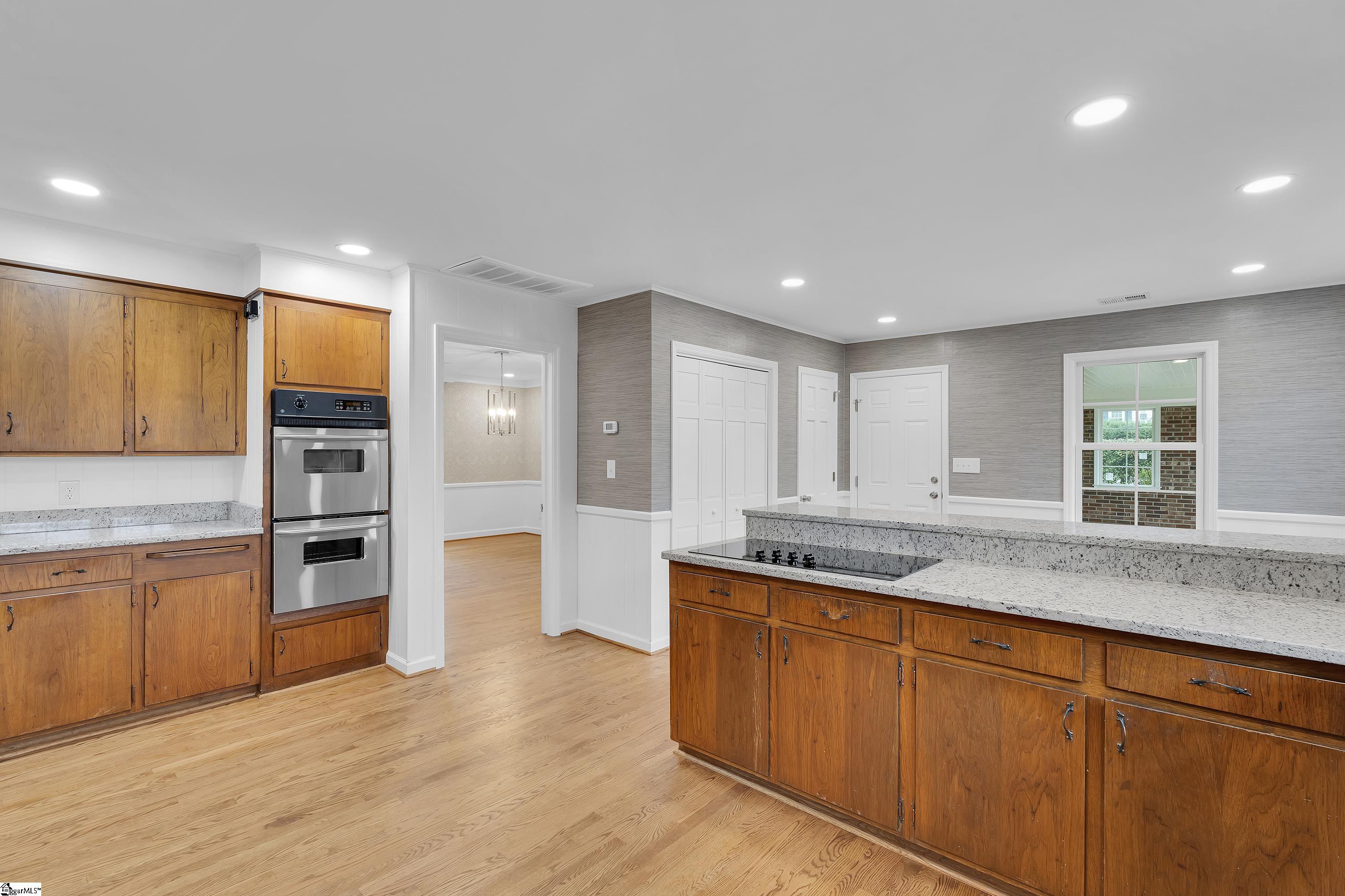Completely renovated traditional brick ranch, stately positioned on a desirable corner lot just minutes from Downtown Easley. This home exemplifies refined one-level living, offering both elegance and functionality with formal dining and living rooms, a sunroom, den, breakfast area, and a slate foyer. The residence features three bedrooms and two-and-a-half baths and has been thoughtfully updated inside and out. Major improvements include all-new electrical and plumbing, a new roof, HVAC system, windows, and a tankless water heater, providing peace of mind and modern efficiency. Elevated selections throughout showcase the home’s timeless appeal, including real hardwood floors, a neutral color palette, stylish wallpaper, curated light fixtures, custom built-in bookcases, and beautifully tiled bathrooms. Additional highlights include a walk-up floored attic and a 538 square foot partially finished basement with fireplace, offering endless possibilities for additional living, recreation, or storage space. Set on a spacious .89-acre lot, the outdoor setting features a brick patio, circular driveway, mature trees, and ample room for privacy and future transformation. A two-car carport with heated and cooled storage completes the home’s thoughtful design and everyday convenience. Ideally located just minutes from Highway 123, shopping, dining, and Downtown Easley, with easy access to Clemson University and Downtown Greenville, this home offers a rare blend of traditional luxury, extensive updates, and prime location. **Total square footage of the home is approximately 3482. Finished first floor is 2944 square feet and partially finished basement is 538 square feet.**