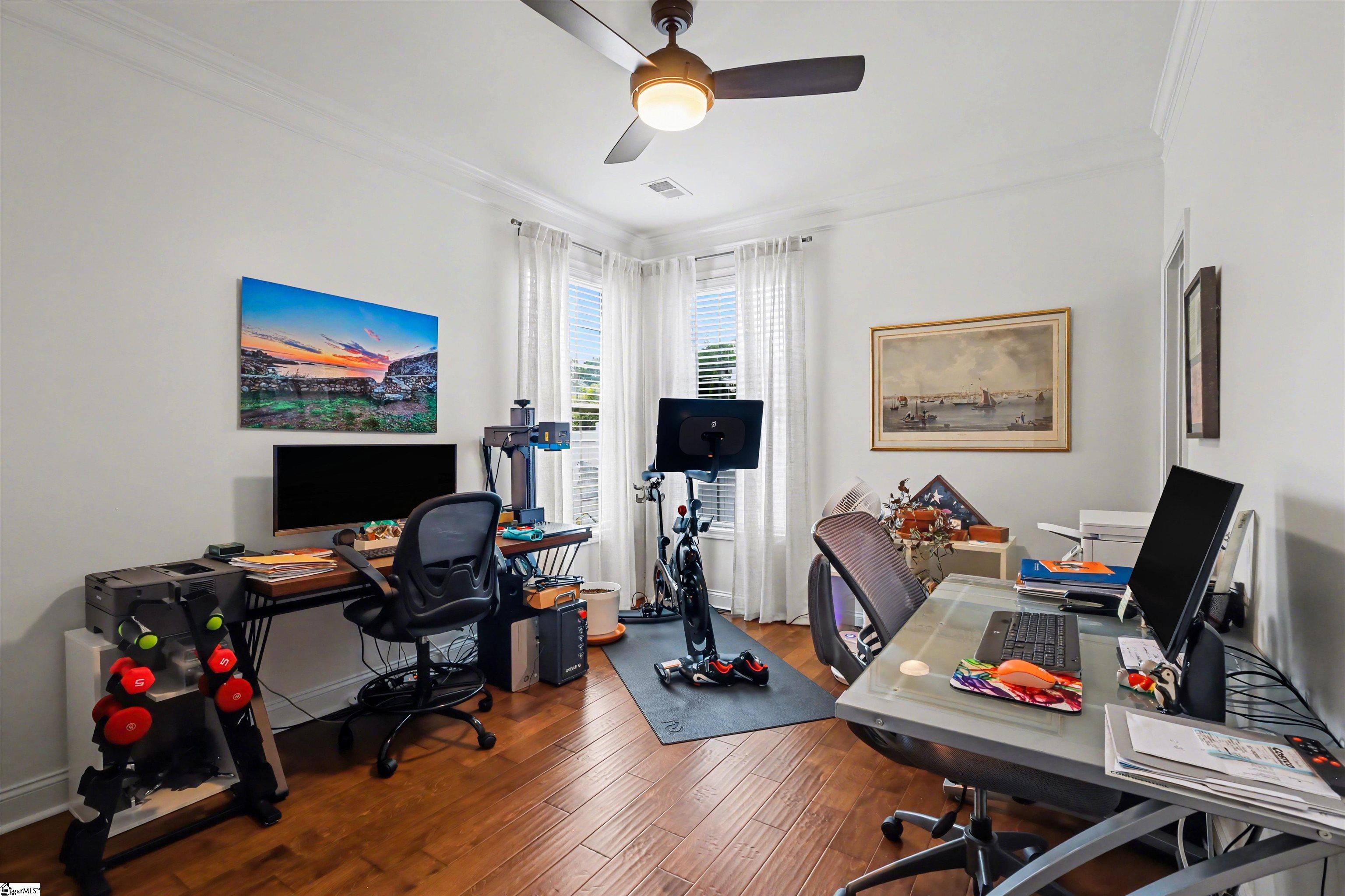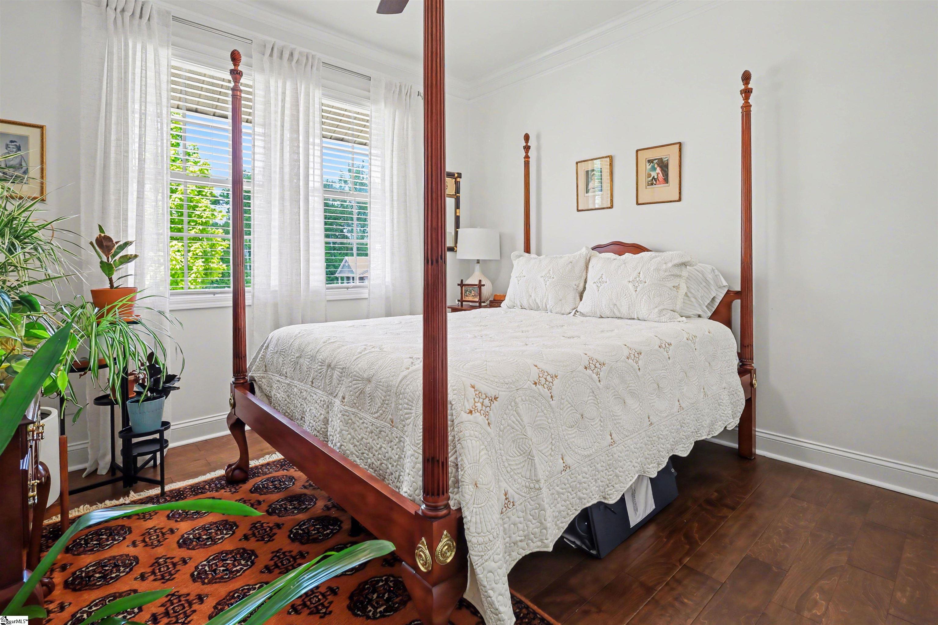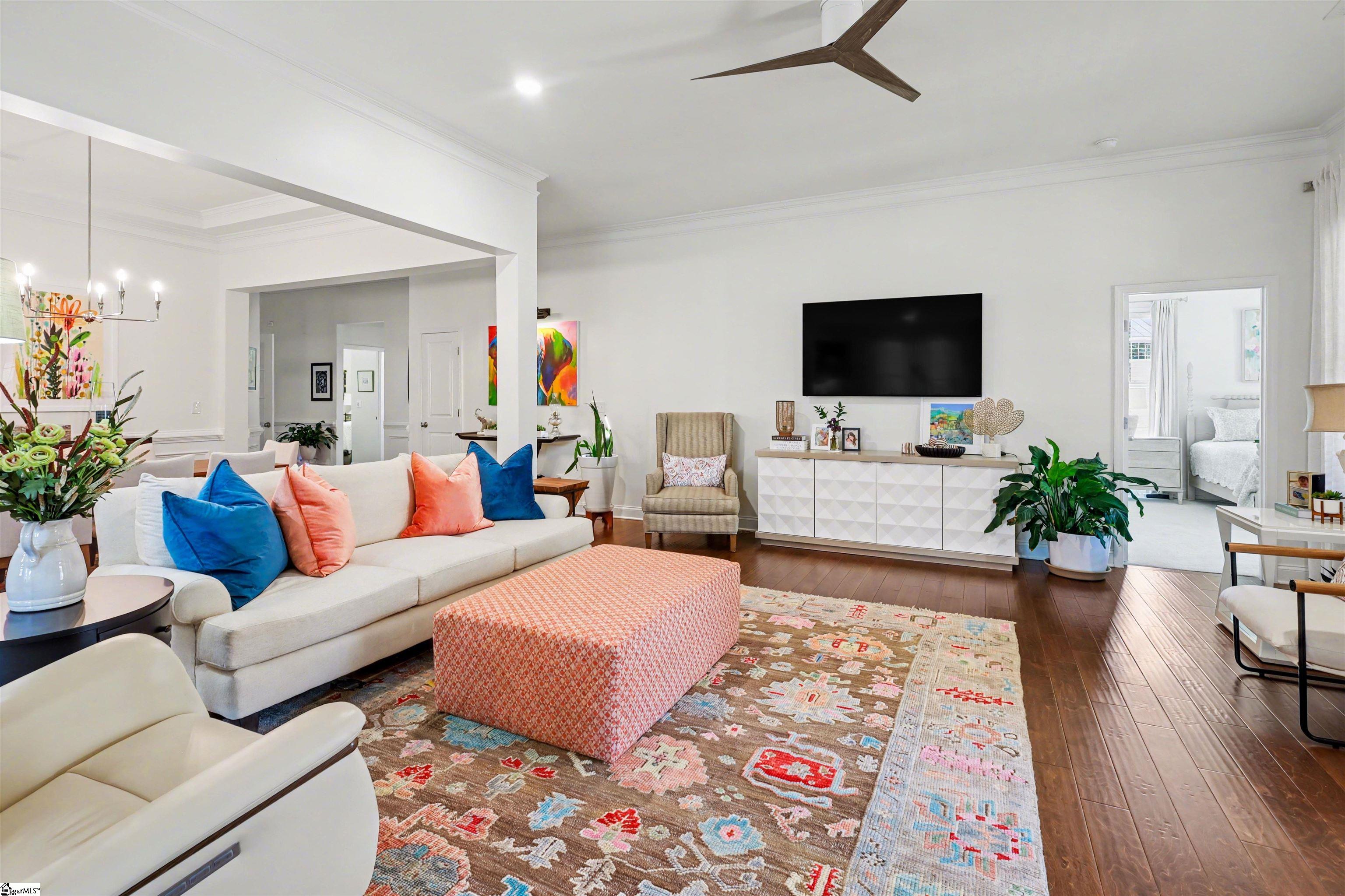 Welcome to 401 Woodland Oaks Ct, a beautifully updated home nestled within an intimate community of just 45 residences, offering a perfect blend of comfort, style, and convenience. Positioned on a spacious corner lot, this 4-bedroom, 3-bath home with a versatile flex room features a bright, open layout with warm hardwood floors and thoughtfully designed living spaces. Over the past year, the home has undergone extensive upgrades, including a refreshed kitchen with new granite countertops, backsplash, upgraded fixtures, enhanced cabinetry features, and a suite of modern appliances. The bathrooms have also been tastefully updated with new finishes and fixtures, while additional improvements such as new flooring in select areas, fresh paint inside and out, updated lighting and fans, and custom touches throughout create a polished, move-in-ready feel. The living area is anchored by a custom-built fireplace, offering a cozy focal point, while the screened-in patio with upgraded flooring extends the living space outdoors for easy relaxation and entertaining. Exterior enhancements include new landscaping, added outdoor living space, and a private fenced backyard. Major system upgrades and features—such as a high-efficiency HVAC system, garage improvements, EV charging capability, and a security system—add comfort and peace of mind. Ideally located just minutes from shopping, top-rated schools, and major roadways, this home is approximately 5 minutes from downtown Simpsonville, 25 minutes from downtown Greenville, and about 20 minutes to GSP International Airport, making it an exceptional opportunity in a highly desirable setting.