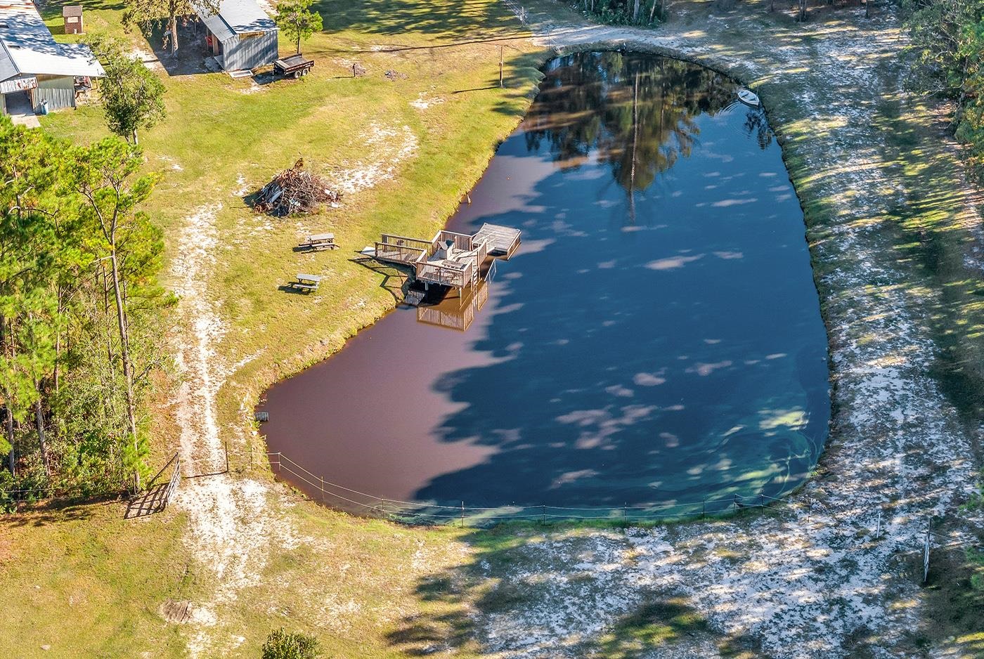 Rare opportunity to own nearly 10 high and dry acres just minutes from Hwy 17 and the beaches. This unique property offers residential comfort, income potential, and commercial flexibility under CFA zoning. The all-brick 3 bedroom, 2 bath home (approx. 1,700 heated sq. ft.) features hardwood and carpet flooring, a spacious primary suite with walk-in shower, and a covered concrete back porch overlooking cleared pastureland. The home is equipped with a Tesla solar system with battery backup and generator package. The newly constructed 3,200 sq. ft. red iron barndominium includes 1,600 heated/cooled sq. ft. previously used as a wellness spa, with massage rooms (ashiatsu bars installed), a large mirrored studio, full kitchen, restroom with shower, and laundry. The remaining 1,600 sq. ft. warehouse space with 27-foot ceilings is currently leased for income. Combined heated space totals approximately 3,300 sq. ft. The fully fenced property includes electric fencing, a 4-stall stable, two large outbuildings, and a stocked ¾-acre pond with dock. Ideal for horses, retreats, events, or investment. CFA zoning allows for potential commercial uses such as wellness center, horse boarding, Bed & Breakfast, Airbnb, or other ventures without rezoning. Seller financing available. Square footage is approximate and not guaranteed. Buyer responsible for verification.