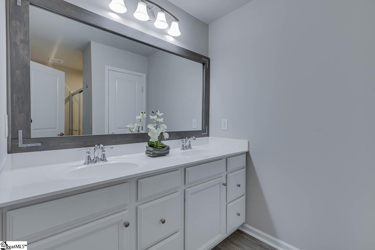 Welcome to 402 Teresa Gem Lane. This immaculate townhome is located in the heart of charming Greer, just minutes away from downtown restaurants, shops, and entertainment and easy access to I-85. It offers 3 bedrooms, 2.5 bathrooms, an open floor plan, and a powder room right off the living room - perfect for when you are hosting guests. The kitchen is a chef's dream with beautiful granite countertops, stainless steel appliances and ample chic white cabinet space showered with plenty of natural light to entertain your guests as they dine while overlooking your private patio. The spacious living room features sleek, modern epoxy flooring. The stairs and second level flooring boast sturdy and attractive laminate flooring. Fresh paint throughout the home and all appliances in the home will convey. Upstairs, you will find a luxurious master suite complete with a large walk-in closet and an en-suite bathroom featuring a double vanity and a shower. Two additional bedrooms, a full bathroom and a convenient laundry room, complete the upper level. This home’s convenient location presents the opportunity to live a carefree lifestyle and enjoy dining or shopping both in downtown Greer and downtown Greenville.