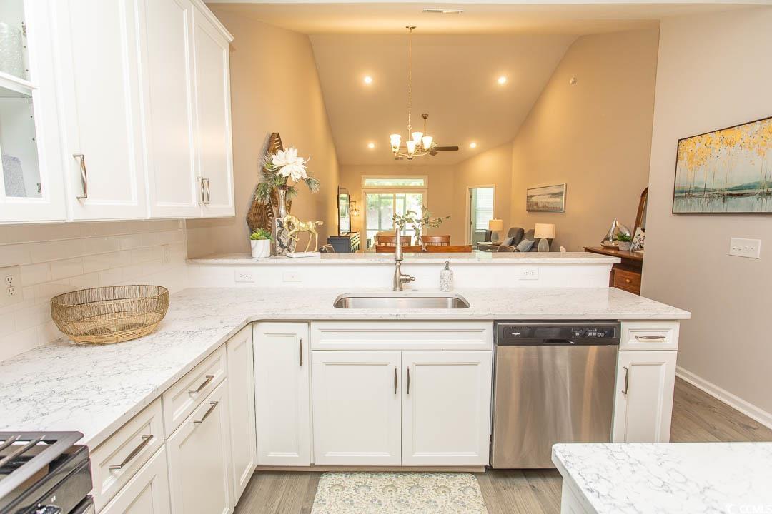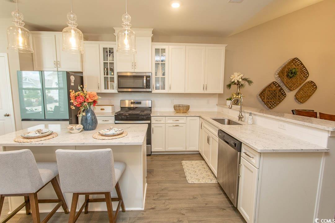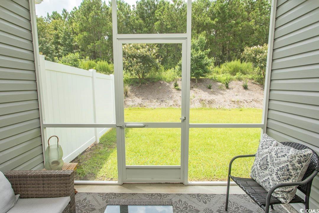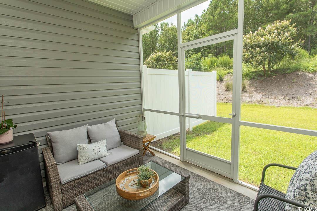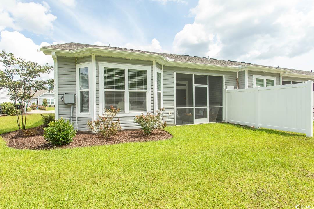 Are you looking for a low maintenance lifestyle? WELCOME to Bella Vita Garden Homes! This Jasmine model home features a Coastal exterior design, featuring 3 bedrooms 2 bathrooms located just 5+- miles from the Beach and Myrtle Beach International airport. This end unit offers a 2 car garage, covered front porch, laundry room and a spacious layout with vaulted ceilings in the main living area. The home features 9’ ceilings & LVP flooring. The Primary Bedroom offers an upgraded tray ceiling & bay window. The Primary Bathroom has a beautiful 5' tile shower with glass doors, double vanity sinks and tile flooring. There's a huge linen closet & walk-in closet. The Guest bathroom has a tub/shower enclosure, tile flooring and the 2 additional bedrooms have carpet. The gorgeous Kitchen features 42” upgraded cabinets, subway tile backsplash & quartz counters. Lots of workspace with the center island & raised peninsula breakfast bar for more seating. All stainless appliances in Kitchen are included-built-in microwave, dishwasher, gas stove plus a Samsung Bespoke refrigerator. Sellers have installed ceiling fans & an Anderson storm door. The covered back porch is screened and there’s a natural gas BBQ grill hook up along with front & back faucets. Seller is providing the Buyer with a 12 Month Home Warranty at closing! This Home is Energy star Certified, Low E windows, LEDs, High-efficiency Gas Rinnai tankless water heater and much more! HOA fees include exterior insurance, water/sewer, trash, basic cable, exterior pest & termite control, irrigation & lawn maintenance plus access to the Amenities Center which includes the Clubhouse, Fitness room & huge outdoor Pool & playground. Close proximity to RT501 & RT31 and just a short drive the beach!