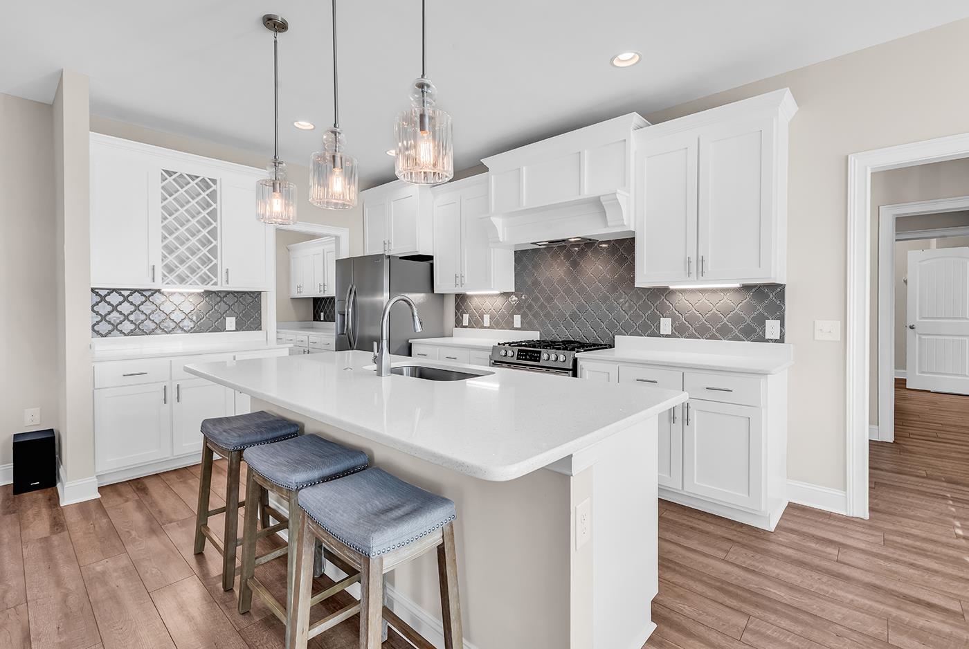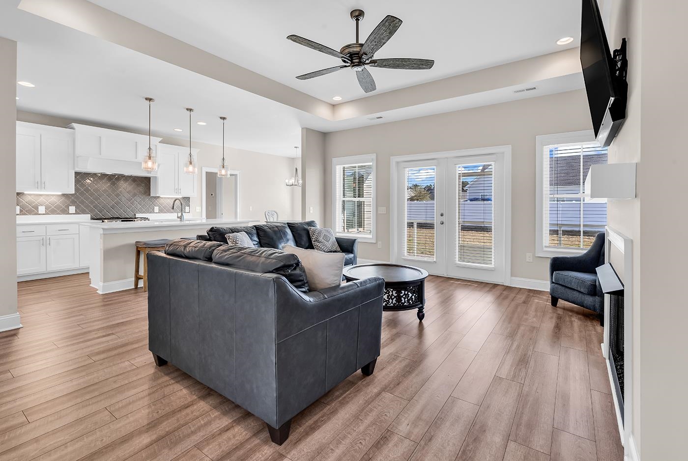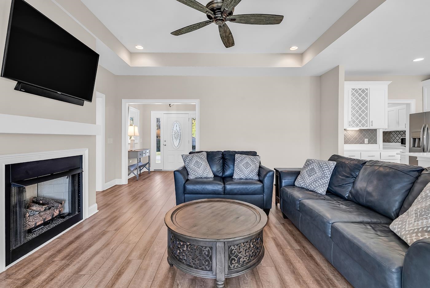 Located in the highly sought-after Ridgewood West subdivision, this custom-built 4-bedroom, 2-bath home blends thoughtful craftsmanship with comfort and functionality throughout. From the moment you step into the foyer, you’ll notice the attention to detail and well-designed layout. The living room is warm and inviting, featuring a tray ceiling, ceiling fan, abundant natural light, a gas fireplace, and a convenient floor outlet, creating the perfect space for both relaxing evenings and entertaining guests. The kitchen is truly the heart of the home, designed for both everyday living and hosting. It features quartz countertops, tile backsplash, custom spice and pan drawers, under-cabinet lighting, a wine rack, and a large island with plenty of prep space. A butler’s pantry adds additional storage and functionality, while the Frigidaire Air Gallery Collection refrigerator and gas stove, along with all appliances, convey with the home. The dining area just off the kitchen provides a comfortable space for meals and gatherings. The spacious primary suite offers a private retreat with tray ceilings, ceiling fan, and LVP flooring, along with a large walk-in closet that conveniently connects to both the primary bathroom and laundry room for everyday ease. The primary bath features a large double vanity with quartz countertops, large linen closet, and a beautifully tiled shower with glass door. Guest bedrooms are generously sized with carpet and large closets, while the third guest room offers flexibility with LVP flooring and a ceiling fan, making it ideal as a home office, flex space, or fourth bedroom. The guest bathroom includes quartz countertops, tile flooring, and a tub/shower combination. Step outside and enjoy the outdoor living spaces this home offers. A screened porch overlooks the fenced backyard, complete with mature landscaping and full irrigation. The large paver patio creates the perfect setting for grilling, entertaining, or simply enjoying the outdoors. Additional features include gutters, an oversized two-car garage, and abundant attic storage, providing plenty of space for organization and convenience. Schedule your private showing today and experience the quality, comfort, and custom details this beautiful home has to offer. *Listing Agent is the seller*