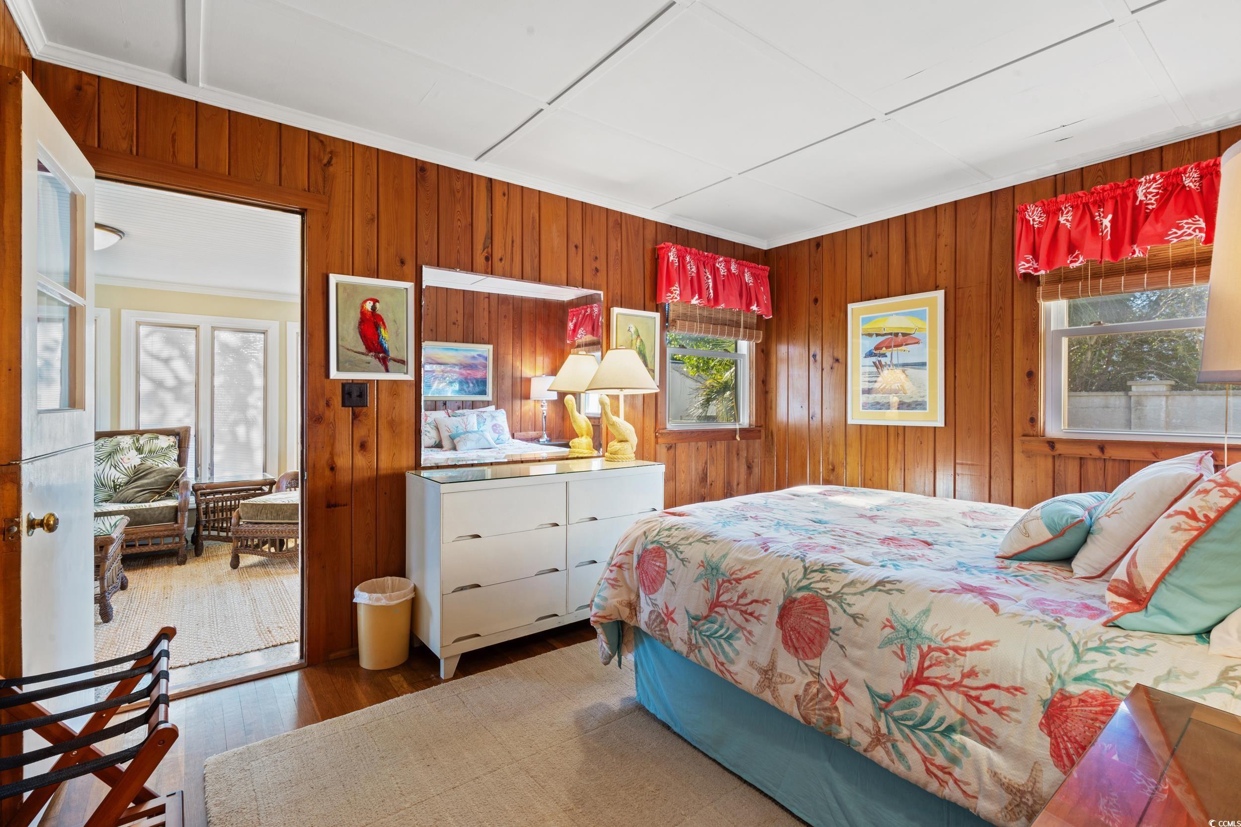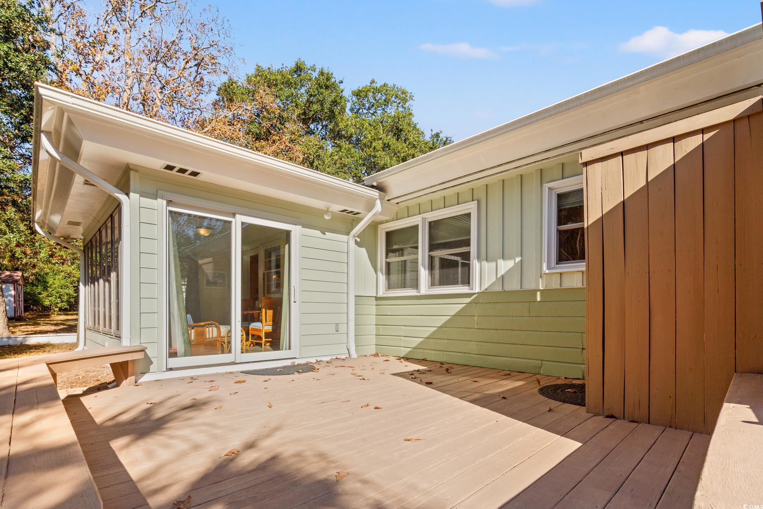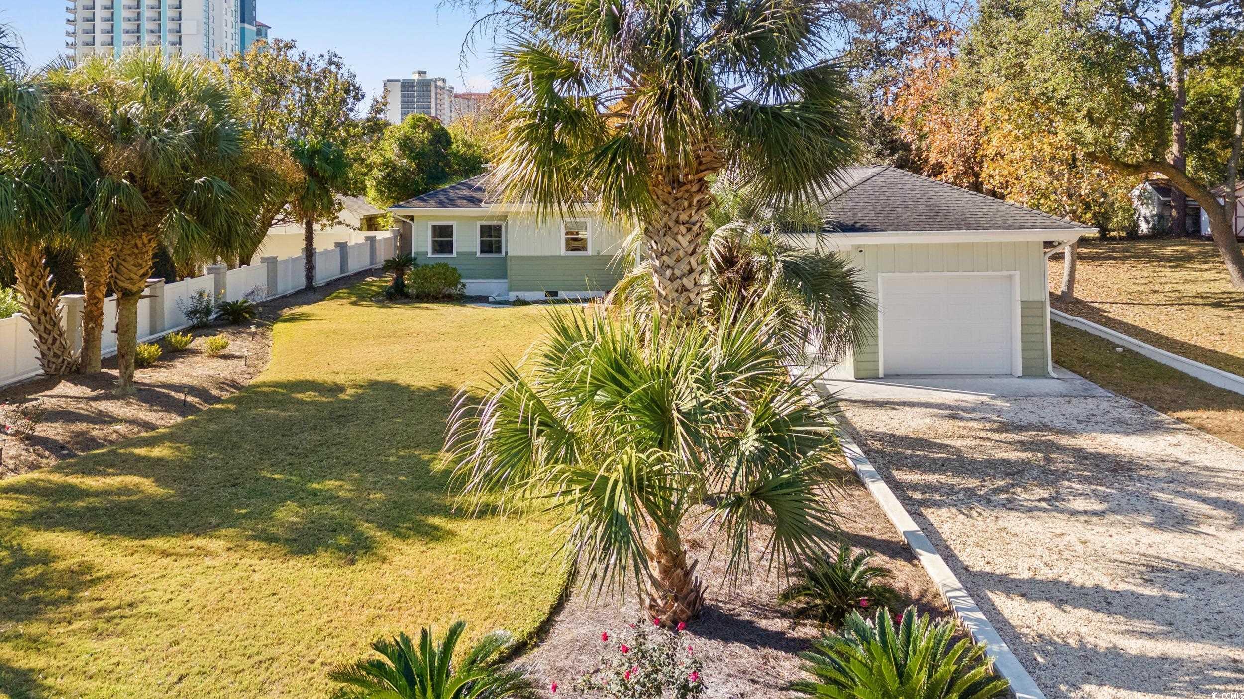 Imagine this is your beach cottage! 403 32nd Ave N is located in the Myrtle Heights section in the heart of the “Golden Mile”. This 4-bed 3-bath ranch-style home is surrounded by Palm Trees, a very well-maintained yard, a wood deck, and an outdoor shower! This beach home is located not only in the heart of Myrtle Beach, SC, but also has a 0.27/ac lot with a 5-minute walk to the beach in a non-flood area. As you enter this classic ranch-style home with modern upgrades, you will see the family room with the original fireplace. The original heart pine wood floors are throughout this beautiful home, with carpet and tile! This home also has the original knotty pine paneling that is indicative of beach homes from this time period, which holds a lot of wonderful memories. What a BONUS! From the Family room, you can enter the kitchen or bedrooms. This well-maintained home has had 2 additions over the decades that adorn the bedrooms with easy access to the outside and provide separate privacy for reading, entertaining, and privacy. The kitchen has a breakfast bar, granite countertops, and plenty of cabinet space. After spending a day on the beach, you have an outdoor shower ready to rinse off. Outside is a beautiful manicured yard with mature landscaping and plenty of space, great space for kids or pets. The single-car garage was closed off and is used for laundry & storage. This charming home is ready for you and your family to make your memories, just steps to the beach and located along the coveted golden mile. Do not miss your opportunity to own this beautiful classic home in one of the best areas of Myrtle Beach. Come see it today!
