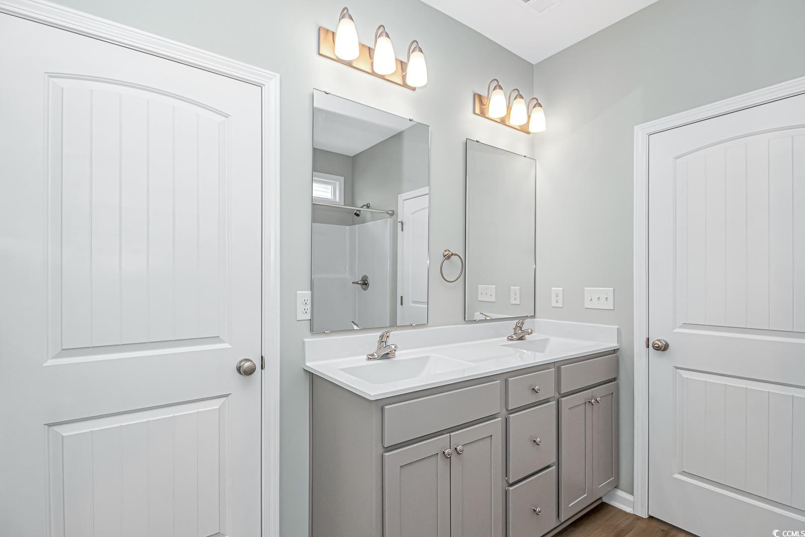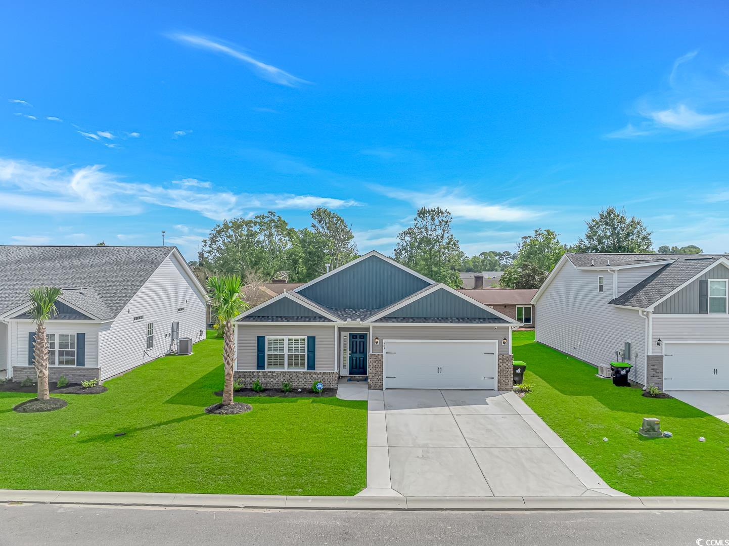 Charming New Construction Home in Ocean Palms – Coastal Living at Its Finest! Welcome to this stunning, new home in the desirable Ocean Palms community, built in 2025. Perfect for anyone seeking a low-maintenance coastal retreat, this residence offers an open, single-story layout with modern elegance and thoughtful design. Step inside to find 9-foot vaulted and tray ceilings, custom plantation shutters on all windows that create a bright, airy atmosphere, all interior walls professionally painted a custom color, complemented by designer cabinets and laminate wood flooring throughout the home. The gourmet kitchen boasts stainless steel appliances and quartz counters, ideal for entertaining or everyday meals. Enjoy energy-efficient features like natural gas heating, central air conditioning, and vinyl siding for durability and cost savings. The attached Fully finished 2-car garage provides ample storage for beach gear, bikes, or golf carts. The driveway has an added 2 extra feet on both sides for wider parking spots. With low HOA dues, you'll have more time to relax and enjoy the lifestyle. Location is everything here – just a quick golf cart ride to Surfside Beach, where you can soak up the sun, fish from the pier, or stroll the parks. Proximity to shopping, restaurants, top-rated medical facilities, hospitals, and Myrtle Beach attractions like golf courses, entertainment venues, and the airport make this spot incredibly convenient. This turnkey property represents exceptional value in a thriving coastal market. Don't miss your chance to own a piece of paradise – schedule a showing today!