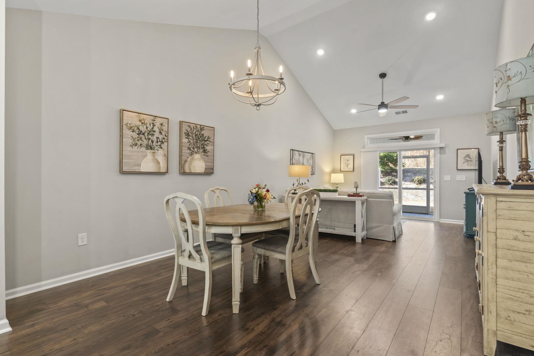 Are you looking for a Low Maintenance lifestyle close to the Beach? Welcome to Bella Vita Garden Homes! This beautifully maintained Wisteria model features a charming coastal exterior & offers 3 Bedrooms + 2 full Bathrooms. It’s conveniently located approximately 5 miles from the Beach and Myrtle Beach International Airport. This desirable interior unit includes a 1.5 car garage, covered front porch, dedicated laundry room and an open, spacious layout with vaulted ceilings in the main living area, along with 9’ ceilings and durable LVP flooring throughout the main living spaces. The primary suite is a true retreat offering a spacious en suite bath with a 5’ tiled walk-in shower and glass doors, double vanity sinks, tile flooring, a large linen closet and a huge walk-in closet. The guest bathroom features a tub/shower combination, raised height vanity & tile flooring, while the two additional bedrooms offer cozy carpeting. The Kitchen is a standout with 42” white shaker style cabinets, unique subway tile backsplash, quartz countertops and ample prep space thanks to the 9’ center island. All appliances convey including the Samsung washer & dryer. Additional upgrades include ceiling fans, a self-storing front storm door, a covered screened porch with a natural gas BBQ hookup and 2 outside faucets. This Energy Star Certified home also features an ERV System (Energy Recovery Ventilator) which enhances indoor air quality, Low E windows, LED lighting plus a high efficiency natural gas Heater & natural gas Rinnai tankless water heater. HOA fees include exterior insurance, water/sewer, trash service, basic cable, Wi-Fi/internet, exterior pest and termite control, irrigation, lawn maintenance and access to the community clubhouse, fitness room, large outdoor pool & playground. Conveniently located near Highway 501 & Highway 31, this home truly offers the best of coastal living with minimal maintenance.