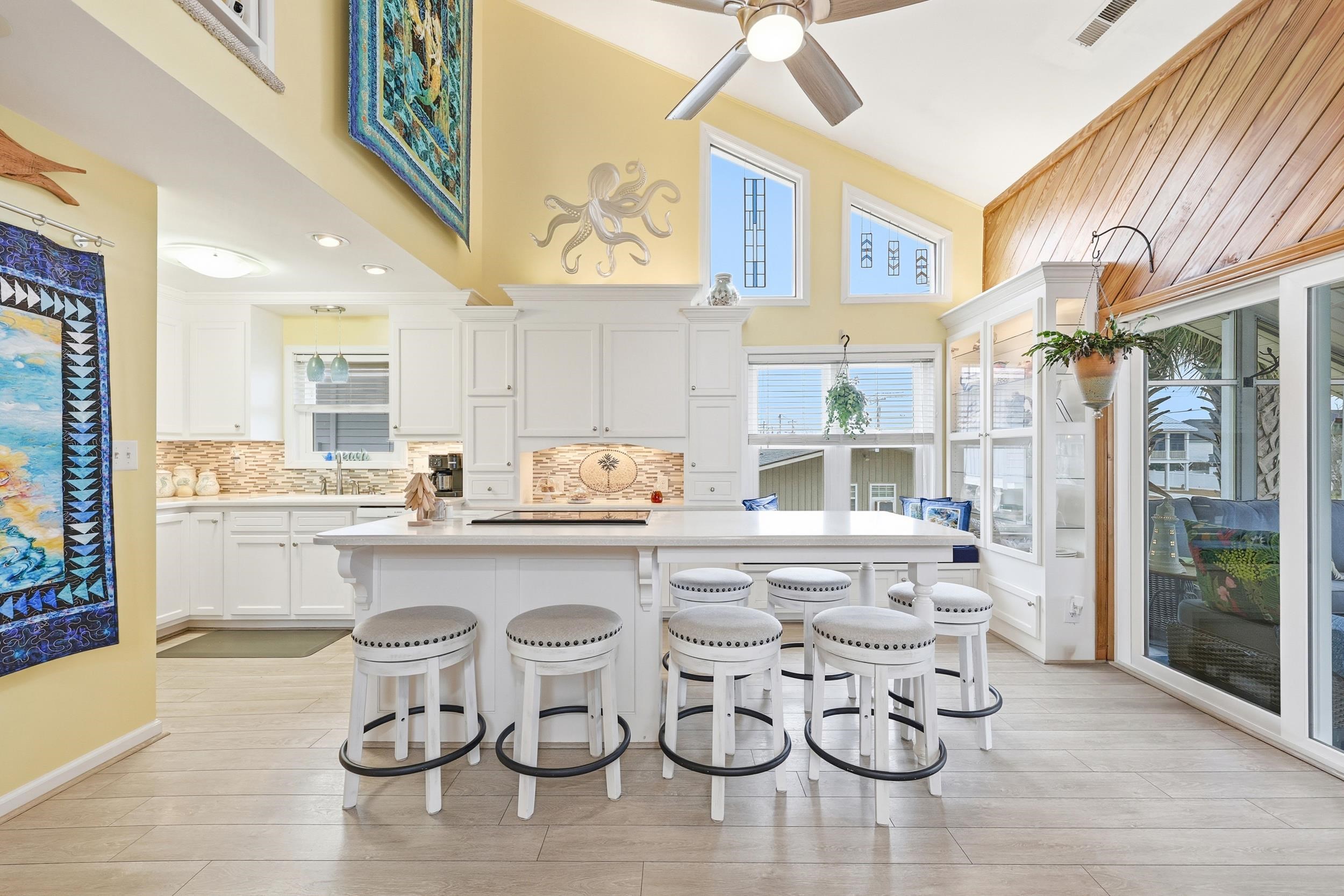 Welcome to 404 29th Ave N, an immaculately maintained raised beach home located just three blocks from the ocean in the highly desirable Cherry Grove section of North Myrtle Beach. This property offers the perfect blend of coastal charm, thoughtful upgrades, and exceptional indoor and outdoor living spaces. The home immediately impresses with a spacious downstairs entertainment area, ideal for year-round enjoyment. Screens can be enclosed during cooler months to capture warmth from the fireplace or opened in the summer to enjoy coastal breezes and outdoor entertaining. The oversized two-car garage provides ample space for vehicles or a golf cart and includes a dedicated workshop area with abundant storage. The outdoor setting is equally impressive, featuring lush landscaping, a fenced-in backyard, and a full outdoor bathroom and shower. A granite fish-cleaning station adds convenience for beach and boating enthusiasts. On the second level, relax on the screened front porch while taking in beautiful views and a peaceful coastal atmosphere. Inside, the home showcases high vaulted ceilings, abundant natural light, upgrade showers in both bathrooms and a spacious, updated kitchen with generous cabinetry and countertop space. Two bedrooms and a full bathroom are located on the main living level, while the upper level offers two additional bedrooms connected by a Jack-and-Jill bathroom. Recent improvements include brand-new windows, sliding doors, garage doors, upgraded kitchen finishes, and newly constructed porches and decks, all completed within the last few years. The home is being sold fully furnished, making it truly turnkey. Ideally suited as a primary residence, second home, or income-producing investment, this property is within walking distance or a short golf cart ride to the beach, Boulineau’s, local restaurants, mini golf, and just minutes from Main Street. A rare opportunity to own a beautifully upgraded home in one of Cherry Grove’s most sought-after locations.