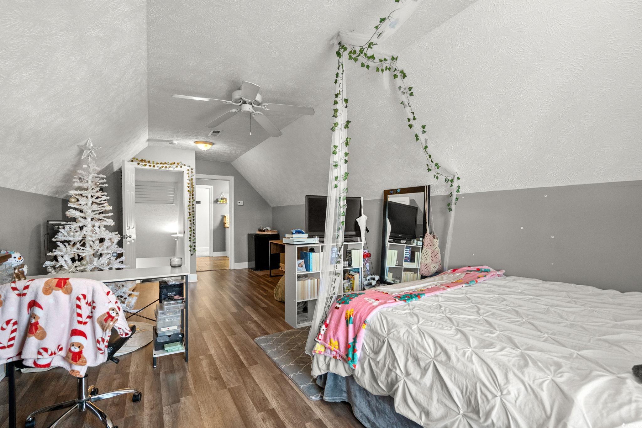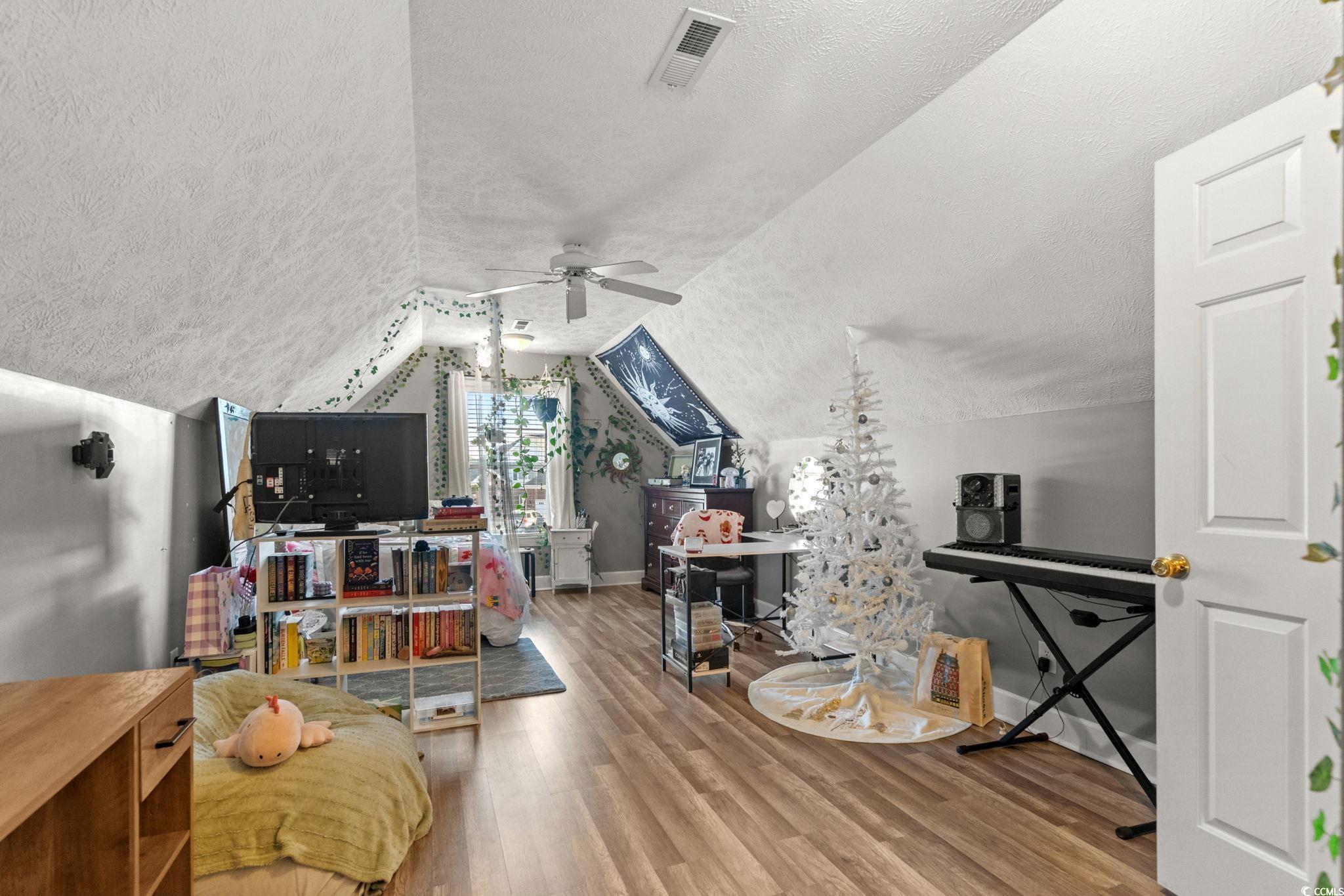 Nestled on a quiet cul-de-sac in the sought-after Hillsborough community of Conway, this beautiful 4-bedroom, 3-bath brick-front home offers comfort, style, and an ideal location close to International Drive. A well-manicured lawn with a smart irrigation system sets the tone as you step inside to a welcoming foyer, gleaming hardwood floors, and abundant natural light. The living room features a cozy gas fireplace and flows seamlessly into the dining room and kitchen, which is equipped with stainless steel appliances, tile flooring, and a charming breakfast nook. A dedicated office with vaulted ceilings opens directly to the rear patio and private backyard, perfect for working from home or enjoying peaceful afternoons. The split-bedroom layout provides privacy, with the master suite offering a tray ceiling, walk-in closet, and a luxurious bath complete with dual sinks, a jetted tub, and a tiled walk-in shower. Two additional guest bedrooms and a full bath are tucked away on the opposite side of the home, while the spacious upstairs guest suite boasts a vaulted ceiling, new LVP flooring, walk-in closet, and its own full bath. Outside, you'll find a 2-car garage, rear patio, and a serene yard backing up to HOA land. Additional highlights include a whole-house fan and a new HVAC condenser and thermostat installed in 2020. Residents of Hillsborough enjoy fantastic amenities such as a community pool, clubhouse, tennis court, and playground—all just minutes from downtown Conway, shopping, dining, and a short drive to the beach.