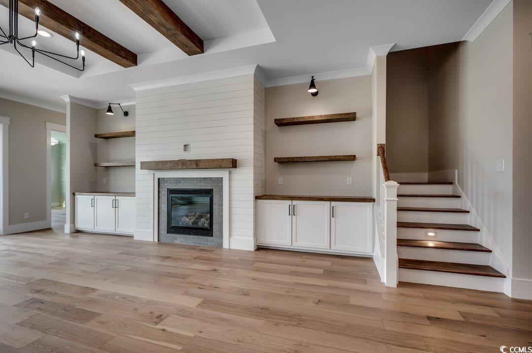 New Construction Home with Luxury Finishes will be located in the prestigious gated community of Waterway Palms and include a 2 car garage plus a golf cart garage. The listing pictures are from a similar home built by same custom builder. This upcoming 5-bedroom, 4.1-bath custom home will combine quality craftsmanship with upscale features throughout. Built by a reputable local builder with over three decades of experience, this home offers a bright open layout filled with natural light and stylish details. The great room is anchored by a fireplace and accented with a custom beamed ceiling. The kitchen will feature a walk-in pantry, island, stainless steel appliances, and quartz countertops. The main-level owner's suite includes a luxurious bath and spacious closet, while an additional downstairs bedroom offers flexibility for an office or gym. Upstairs includes a large bonus room, three more bedrooms, two full baths, and walk-in storage. Residents of Waterway Palms enjoy access to a resort-style pool, clubhouse, fitness center, tennis, and boat storage—all just minutes from the beach and local attractions. The seller is related to the listing broker and is a SC/NCLicensed real estate agent.