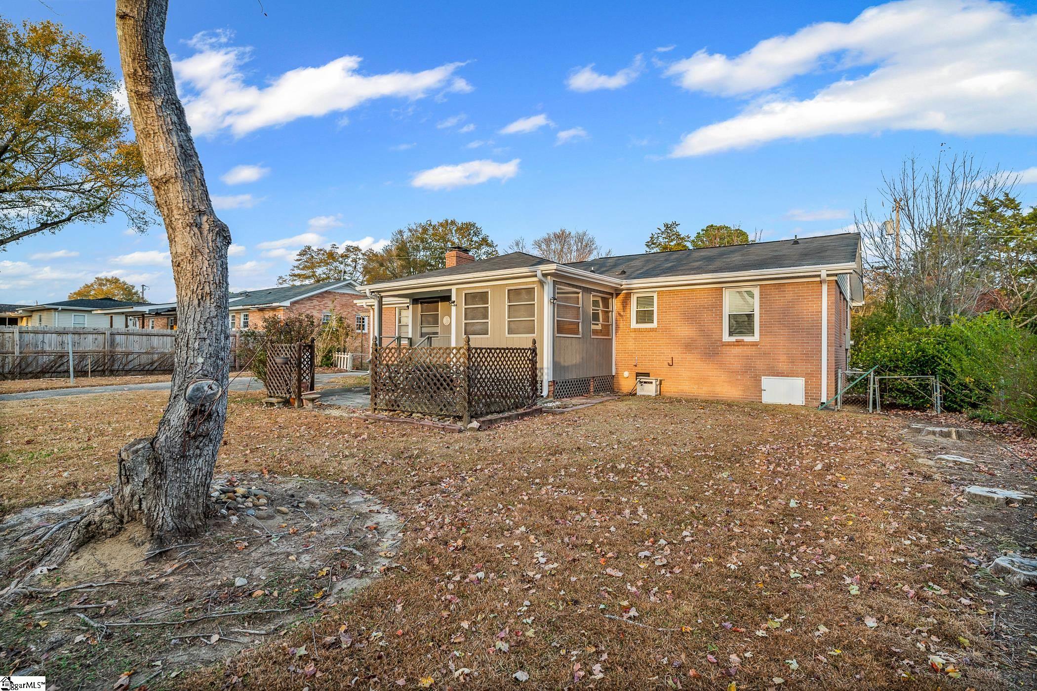 Welcome home to this charming brick ranch located just 1.5 miles from downtown Simpsonville in a well established and highly convenient neighborhood. With classic curb appeal, the home features a rocking chair front porch, an extended driveway and a spacious carport, providing plenty of parking for family and guests. Inside, you're greeted by a welcoming front living area that opens to the kitchen, creating a natural flow for everyday living. Down the main hallway are three comfortable bedrooms and a full bath. The primary bedroom includes a private half bath with the potential to convert it to a full bath if desired. To the right of the living room is an additional flex space that can serve as a fourth bedroom, home office or sitting area. A bright sunroom off the kitchen offers a perfect spot for morning coffee or afternoon relaxation. The home is a one owner home well maintained with a roof under 10 years old, an HVAC system under 7 years old, as well as new water heater and gutter covers for added peace of mind. Sitting on a level, fully fenced .34 acre lot, the property also offers a sizable workshop/outbuilding, ideal for hobbies, storage or future projects. This home provides comfort, flexibility and an unbeatable Simpsonville location, ready for the next owners to add their personal touch.