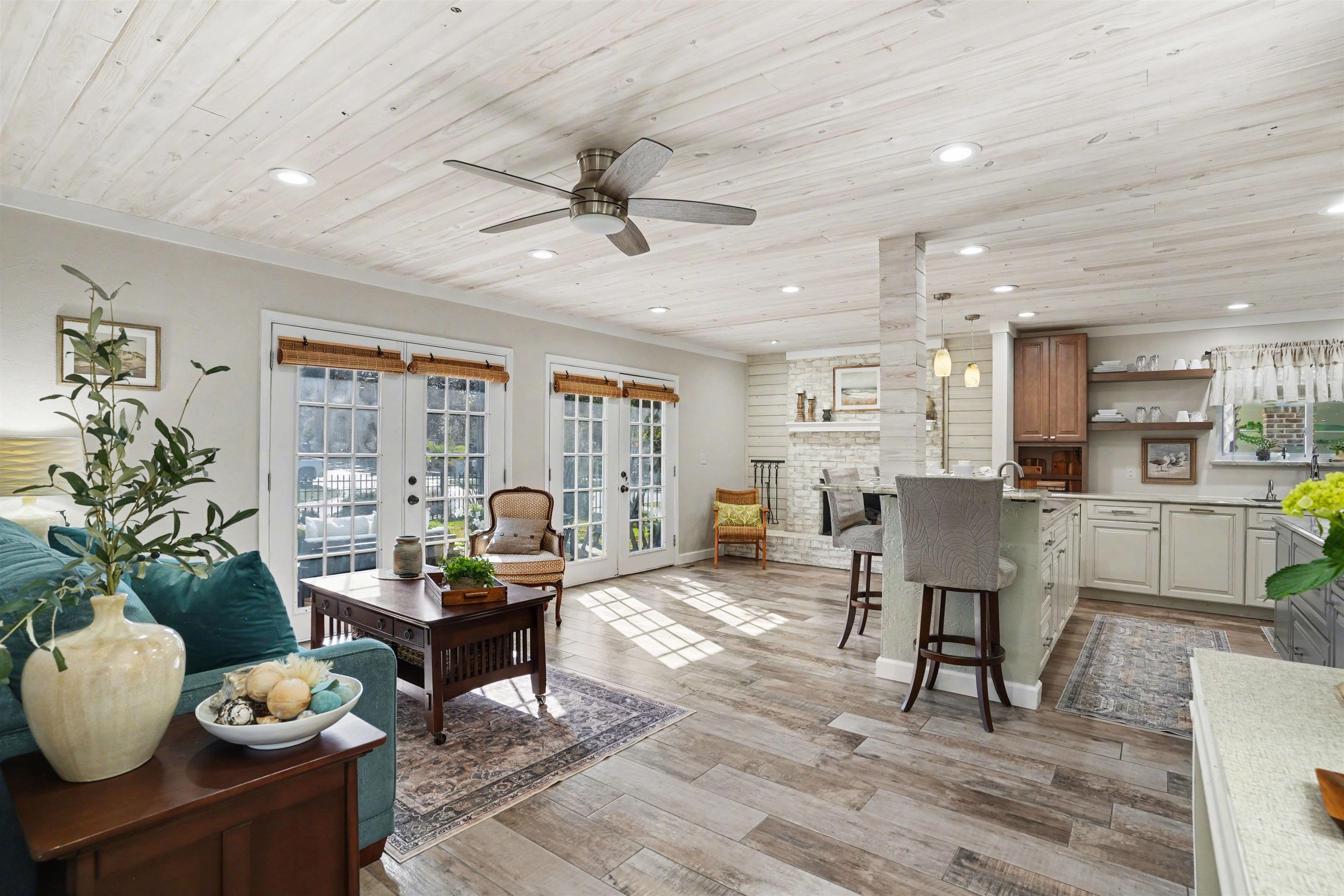 Enjoy coastal living in the Ocean Drive beach district of North Myrtle Beach, just a short walk to the shoreline and the heart of Main Street. From your patio and balcony, take in ocean views, salt air breezes, and the distant rhythm of the waves—especially peaceful in the quiet of the evening. This home is set within a vibrant, welcoming community known for its seasonal festivals, summer concerts, and year-round coastal charm. Thoughtfully renovated, it offers a seamless blend of comfort and durability with ceramic tile in the first-floor kitchen, baths, and laundry areas, and luxury vinyl plank flooring throughout the other living spaces. The updated kitchen features a gas range and modern finishes, while the spacious primary suite includes generous closet space and a private balcony—perfect for sunrise mornings. A versatile loft above the garage provides ideal space for a home office, studio, or retreat. Additional highlights include a fenced in yard, an oversized driveway with room for larger vehicles or a boat, irrigated front and back yards, newer water heaters, [and two of the three recently updated HVAC systems.] Move-in ready and designed for easy coastal living. [Survey and documentation regarding property boundaries and prior city-approved garage zoning or set back improvements are available for review. The current owners title policy reflects these items, and additional details can be provided upon request.]