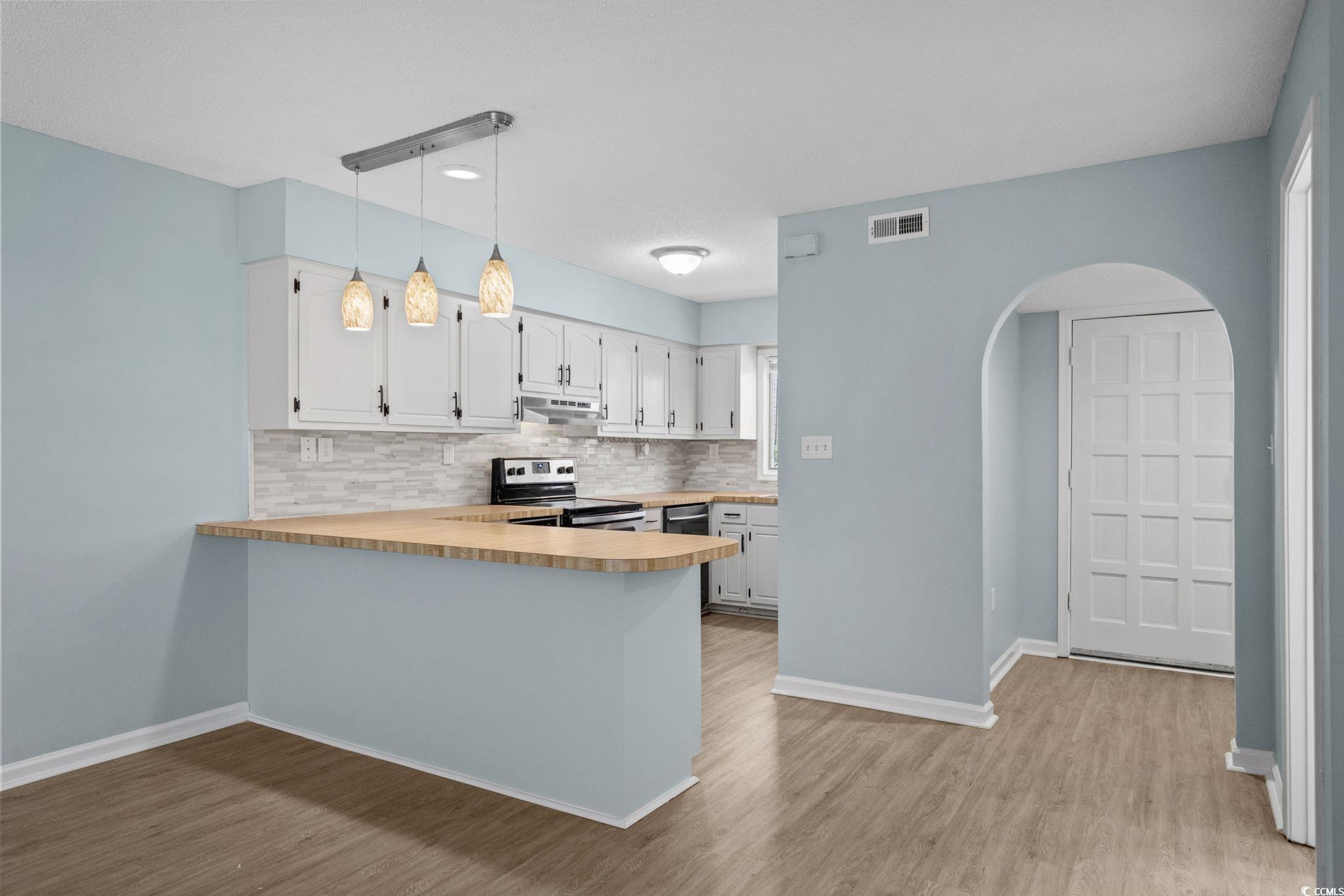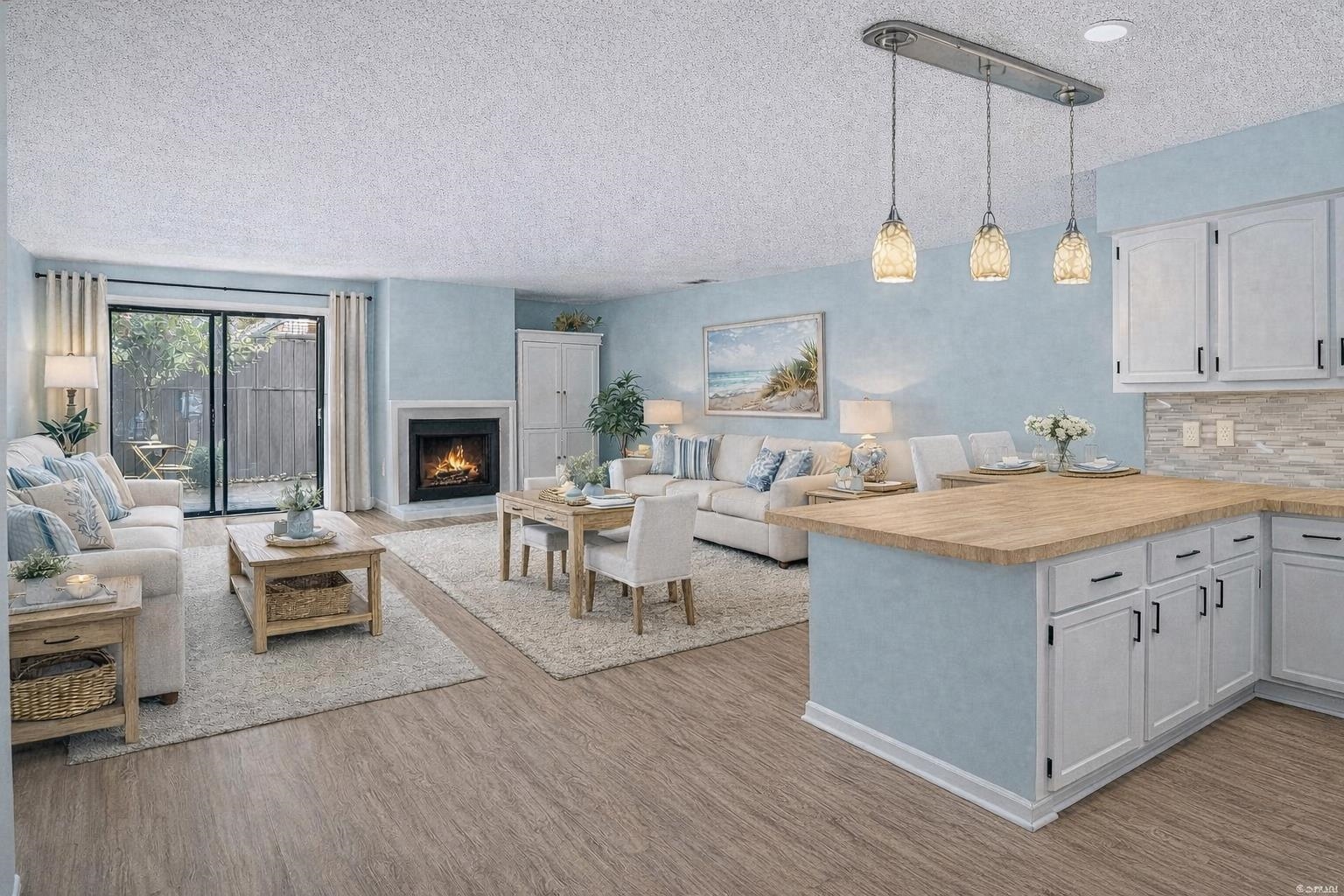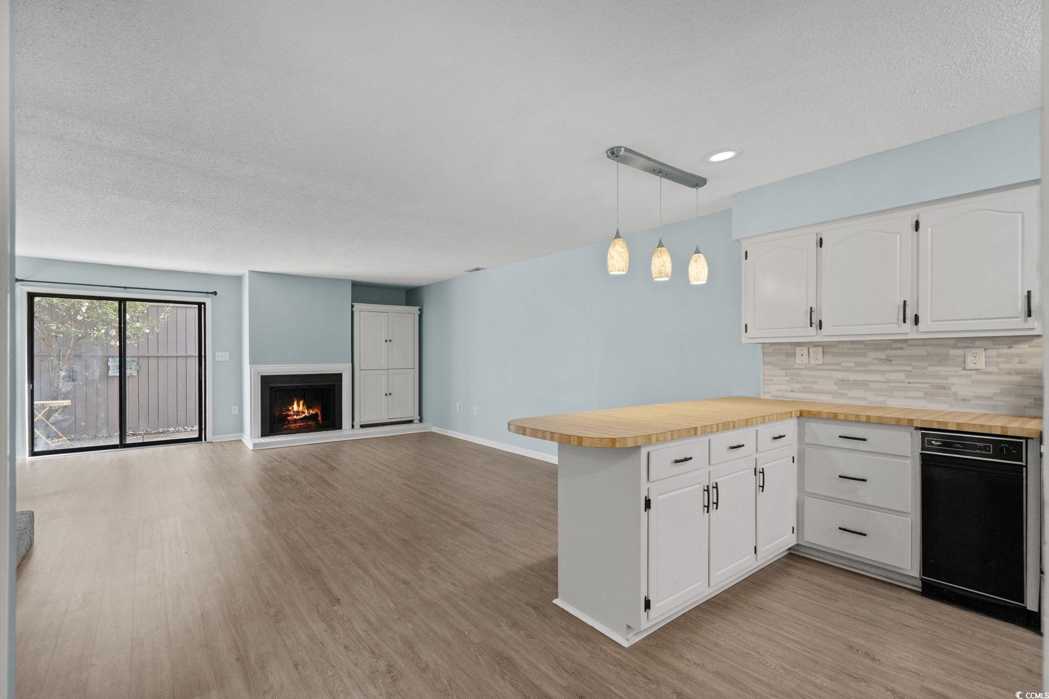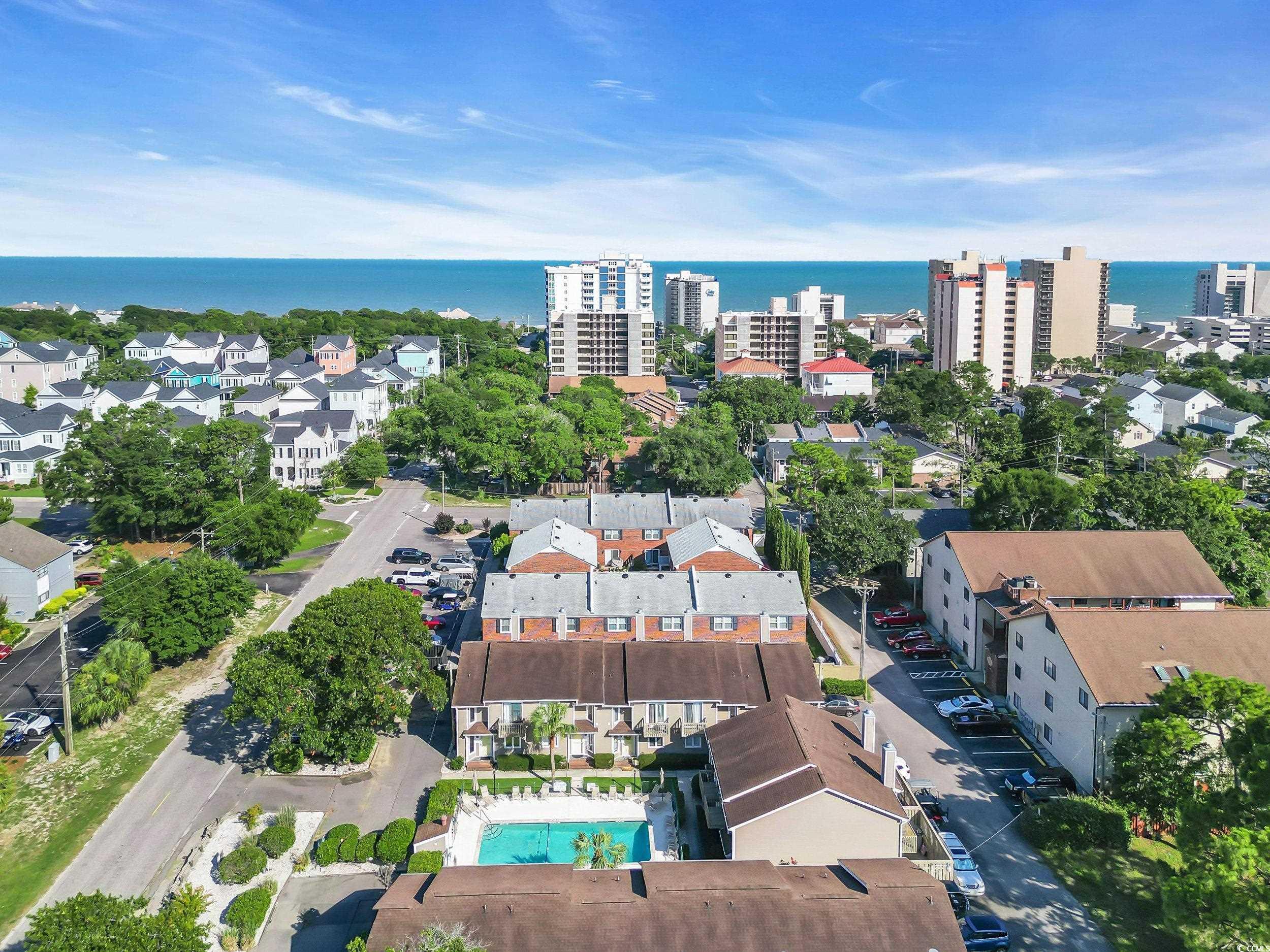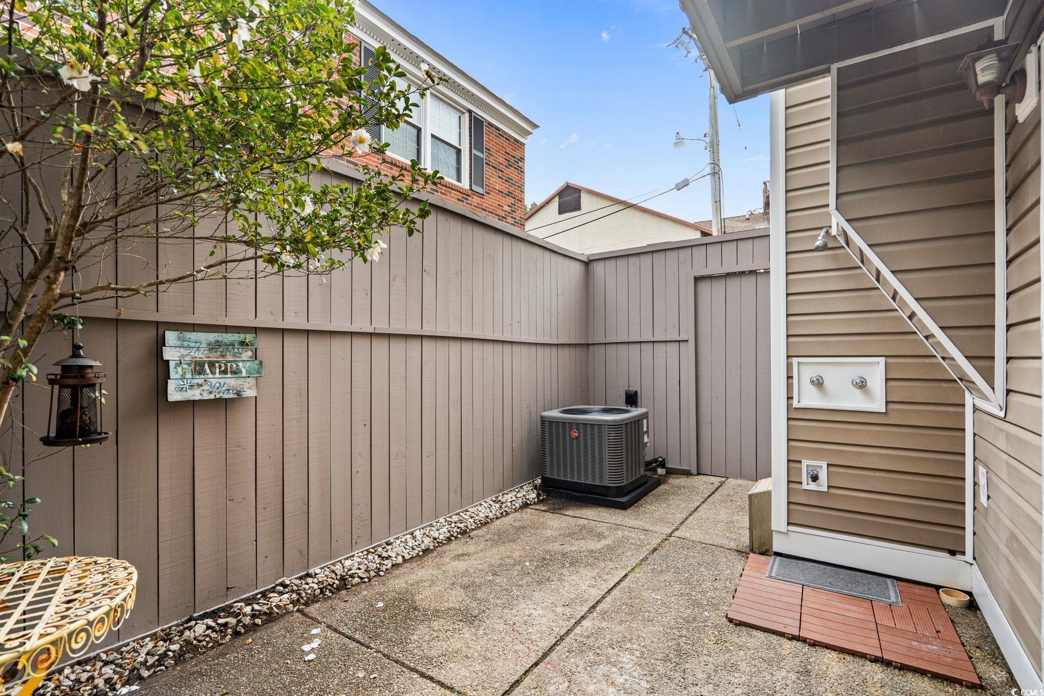 Welcome to this beautifully updated End-Unit Townhome in the exclusive boutique community of Kimberly Dunes located in the heart of Myrtle Beach. Featuring only 12 residences Kimberly Dunes has no short-term or long-term rentals permitted, offering rare privacy and a quiet coastal lifestyle just a few short blocks from the beach. This 2BR, 2.5BA residence showcases an inviting Open Floor plan highlighted by a cozy wood-burning Fireplace with brick hearth and custom wood cabinet, modern pendant lighting, and a convenient powder room on the main level. The well-lit Kitchen offers abundant counter space, a deep Pantry, garbage disposal, refrigerator, dishwasher, trash compactor and breakfast bar flowing effortlessly into the Main Living area—ideal for both everyday living and entertaining. The home also features a welcoming Foyer with drop zone area and closet, fresh professionally painted coastal colors, and beautiful laminate plank flooring throughout the main living areas. Sliding doors open to your private fenced Courtyard with gated entry, featuring an outdoor Shower, and exterior Storage Closet- an ideal spot for a bistro table and chairs or to store beach gear. Upstairs, the staircase and entire second level features beautiful new carpet, creating a cozy and polished feel. Both spacious en-suite Bedrooms enjoy access to a private Balcony. The Primary Suite offers a large Walk-In closet with custom shelving and a well-appointed en-suite Bath with a dedicated Vanity area. The second Bedroom is generously sized with a Walk-In Closet, and convenient access to the Bath with a tub/shower combination. New ceiling fans complete each bedroom. The Laundry Room is also located upstairs and includes a full-size Amana Washer and Dryer, Storage Closet, and built-in hang-dry area. All upstairs Bathrooms and the Laundry Room are finished with tile flooring. Additional peace of mind comes with a new HVAC system installed in November 2024, and the home has been professionally cleaned, painted and is truly Move-In Ready. Imagine living just blocks from the Beach in a quiet, Boutique Community designed for easy, low-maintenance coastal living. At Kimberly Dunes, you’ll enjoy the freedom of a lock-and-leave lifestyle paired with the comfort of a residential setting, all while being moments from shopping, wonderful restaurants, multiple grocery stores, and medical facilities. This is effortless beachside living at its finest. Don’t miss this opportunity to own a slice of paradise!