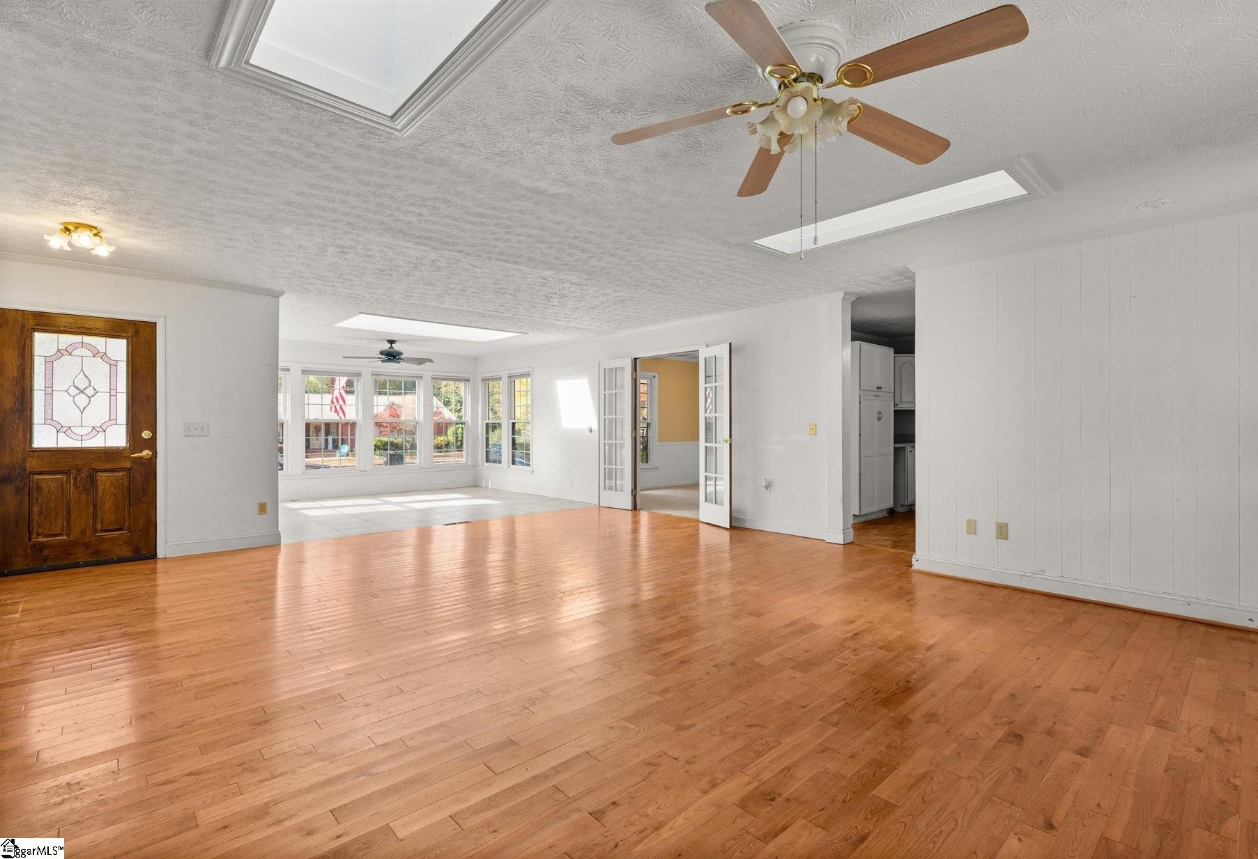 LOCATION! LOCATION! LOCATION! Get ready to fall in love with the lifestyle that comes as the new homeowner of 405 Aster Drive in the highly sought-after Poinsettia subdivision in Simpsonville! From this prime location, you can walk, bike, or take a golf cart ride to the charming Main Street area of Downtown Simpsonville where you’ll find coffee houses, specialty shops, services, restaurants, pubs, and retail storefronts. Known for its neighborly vibe and long tradition of community swim events at the Poinsettia Pool, this established Simpsonville neighborhood offers a classic hometown feel where lifelong friendships are made. Local hotspots like the Heritage Park Amphitheater is 2.5 miles away, Discovery Island water park is less than 5 miles away, and when you’re ready for some night-life, Downtown Greenville is only a 7 mile drive from this home! Nearby public schools are all highly rated according to Niche.com. While the location is clearly premier, the property does need some work which is reflected in the price. However, there are many good qualities to mention such as the great curb appeal with mature landscaping and draping trees that line the streets and frame the front yard view as you drive up, the home’s solid brick construction, its great looking and low-maintenance brick and cement plank siding, the spacious 0.34 acre lot the home sits nestled on, and the fully fenced backyard with a covered grilling patio and powered storage outbuilding. In addition, step through the front door into a welcoming foyer that leads to an open layout including a family room with a fireplace, a flex room with expansive views of the front yard making it ideal as a relaxing sunroom or charming formal dining room, and a second flex room, accessed through double french doors, off the family room that would make a great home office, playroom, or teen hangout. There are 3 bedrooms and 2 full bathrooms and everything is conveniently located on one level in this ranch-style home. Rounding out the floorplan is the bright, spacious kitchen with white cabinets and matching appliances, tons of storage, a kitchen sink with a window view, and even a custom floor-to-ceiling built-in pantry. The laundry room is tucked beside the kitchen with a barn door that provides stylish form and smart function. Also adjacent to the kitchen is the 2-car attached garage entry making off loading groceries and shopping items a breeze. Finally, the skylights throughout the home are a unique design bonus that bring in cheerful natural light from every angle. Don’t miss your chance to be a homeowner in one of Simpsonville’s most popular neighborhoods where you can enhance what is already a true gem and start enjoying the fun, friendly, unique, and neighborly lifestyle that living in Downtown Simpsonville offers!