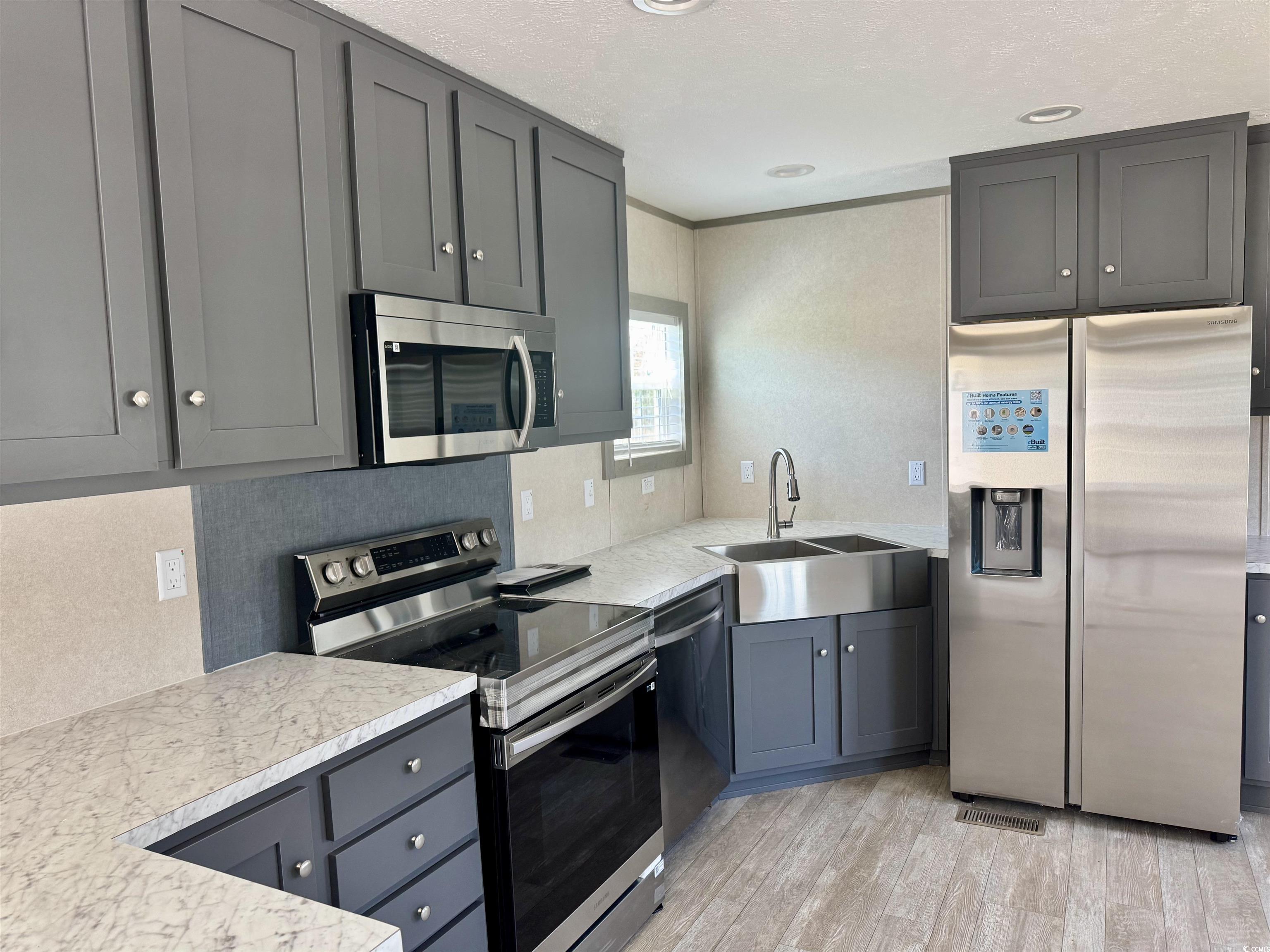 Discover coastal living in this brand-new 3-bedroom, 2-bathroom manufactured home in the desirable Market Village community! This spacious home features an open floor plan, modern kitchen with premium appliances, luxurious primary suite, and low-maintenance vinyl flooring, all just minutes from shopping, dining, golf, and the beach! Land lease community—trash pickup and lawn care included! Don’t miss this opportunity—schedule a tour today!