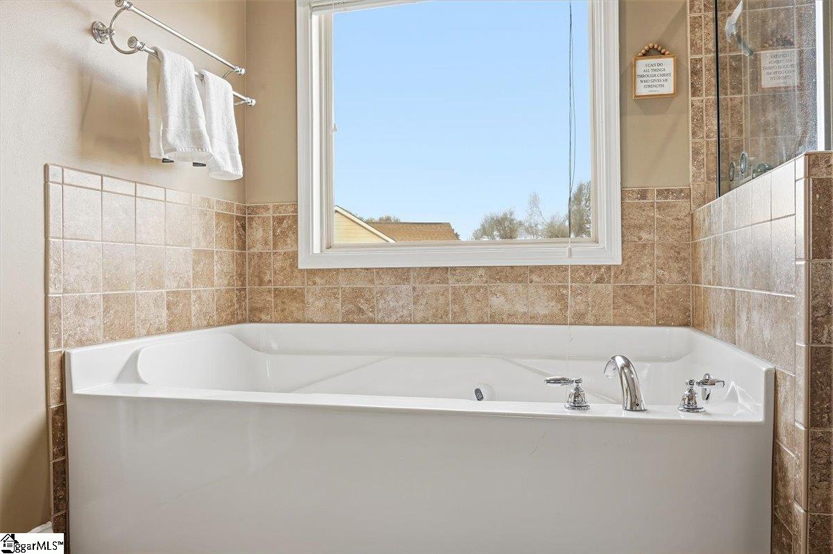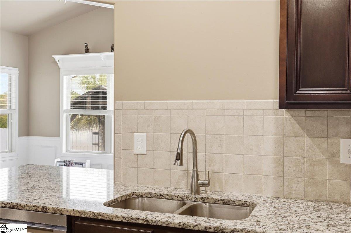 Located in the desirable Pointe at Rock Springs community on Spartanburg’s west side, this spacious Craftsman-style home features 4 bedrooms, 2.5 bathrooms, and approximately 3,495 square feet of living space on a corner lot. Built in 2014, the home includes an open floor plan designed for comfortable everyday living and entertaining. The main level includes a bright sunroom or space and a large living room with a gas log fireplace. The kitchen is equipped with granite countertops, stainless steel appliances, and a walk-in pantry along with a breakfast area for casual dining. Upstairs, the primary suite features a sitting area or office space, walk-in closet, double vanity, ceramic tile flooring, garden tub, and separate shower. Three additional bedrooms with walk-in closets are located on the second level along with a walk-in laundry room. Outdoor spaces include a covered front porch and two covered patio areas overlooking the fenced backyard, creating multiple areas for relaxing or gathering with guests. The property sits on a level corner lot with underground utilities and includes a two-car attached garage with a paved driveway. Convenient westside location with quick access to shopping, dining, and major highways, while also being near the Wadsworth Trail system with more than three miles of walking paths.
