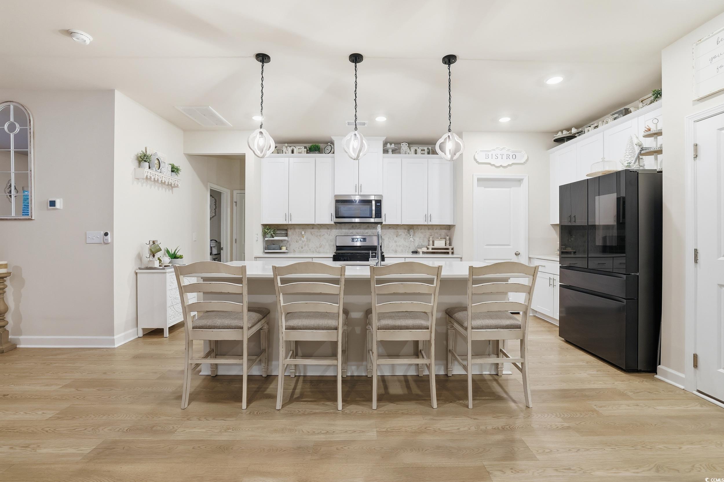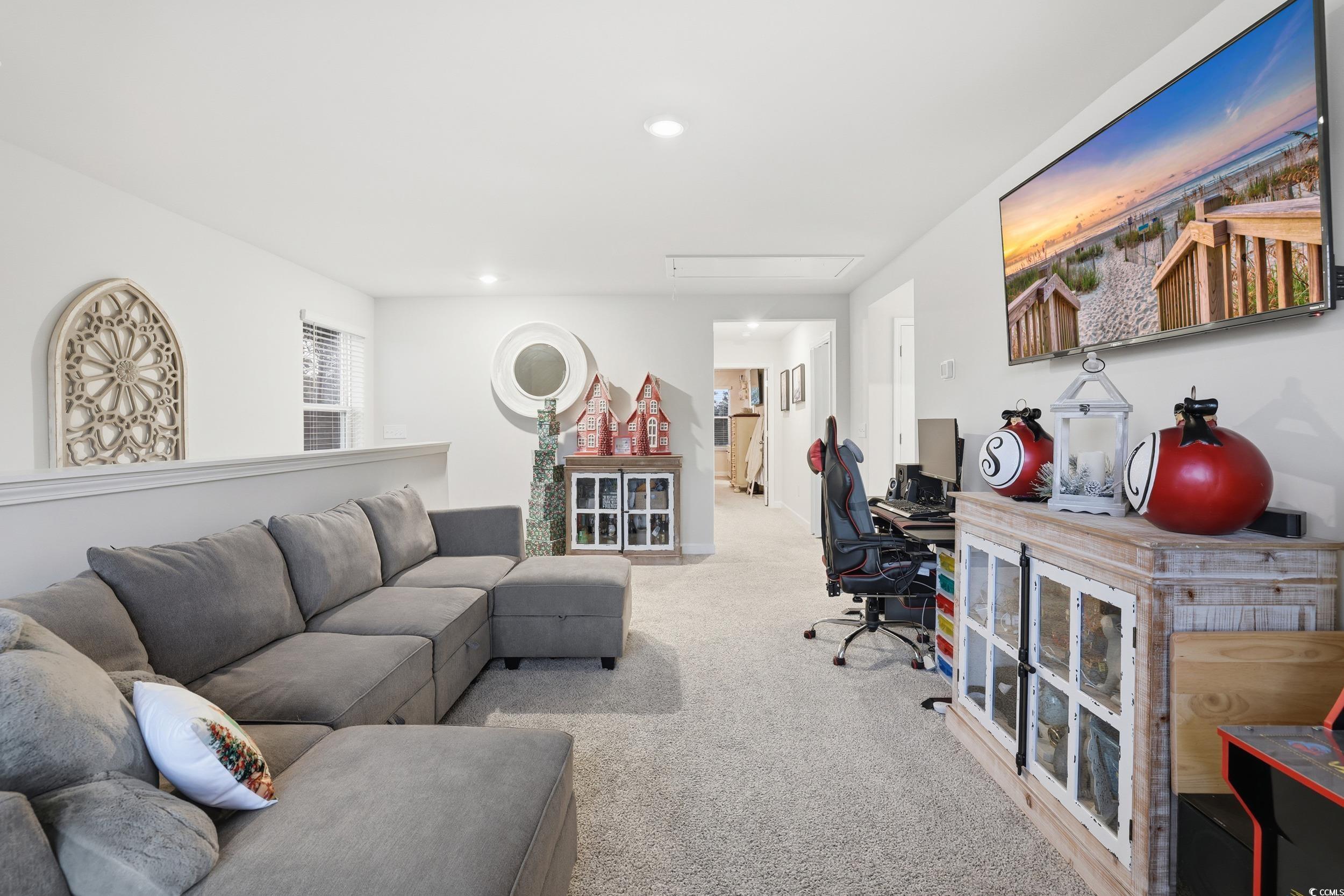 OPEN HOUSE... SUNDAY, JAN 11TH from 12:00 - 2:00 PM. This 4-bedroom, 3-bath energy-efficient home in the sought-after Clear Pond community of Myrtle Beach offers 2,352 sq. ft. of modern comfort, space, and style. Built in 2023, this home feels brand new and showcases an open-concept layout designed for both entertaining and everyday living. The spacious living room flows seamlessly into a bright, upgraded kitchen featuring pendant lighting, a large island, smart black stainless appliances, a walk-in pantry, and ample cabinetry, the perfect setting for family gatherings. On the main level, you’ll also find a guest bedroom and full bath, ideal for visitors, home office or even Mom! Upstairs, the primary suite serves as a luxurious retreat. The highlight is an impressive custom walk-in closet with floor-to-ceiling shelving, a dressing table, and a chandelier, a beautifully converted fifth bedroom offering both elegance and functionality. There's even room for the shoes! The primary bath includes a tiled shower and dual vanities for added comfort with a private commode. Two additional bedrooms and a second full bath, also with dual sinks provide plenty of space for family or guests. The laundry room is conveniently located upstairs, eliminating the need to carry clothes up and down the stairs. A large loft area overlooking the front of the home offers flexibility as a playroom, sitting area, or home office. Additional upgrades include fresh interior paint, ceiling fans with lights throughout, three additional closets, climate-controlled attic storage with spray foam, garage shelving, and a white privacy fence enclosing a backyard with no homes directly behind for added privacy. A 2-car garage and smart home features, including a smart pet door and smart kitchen appliances, provide added convenience. The Clear Pond community offers resort-style amenities including two swimming pools, a fitness center, sidewalks, playgrounds, and walking trails. Conveniently located near top-rated schools, shopping, dining, medical facilities, the airport, and beautiful Myrtle Beach beaches, this home blends lifestyle, comfort, and location. Move-in ready and priced below market value - skip the wait for new construction and start enjoying your new home today...just in time for the holidays! Ladies, this is a dream come true!