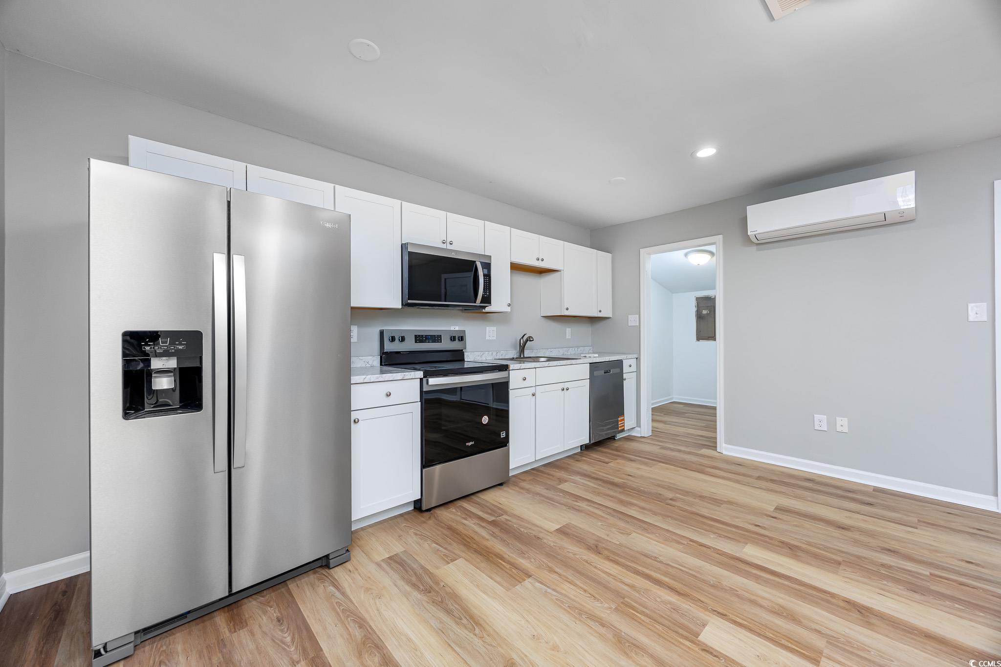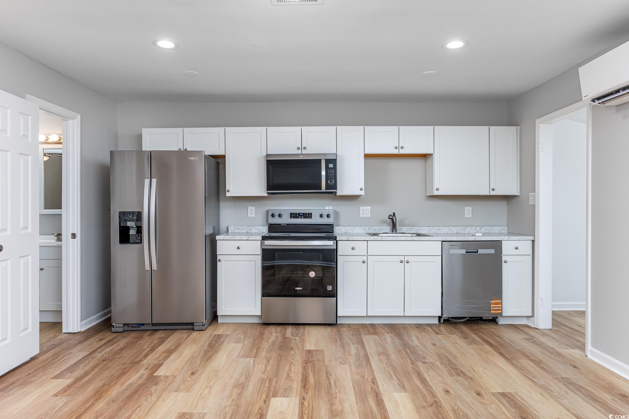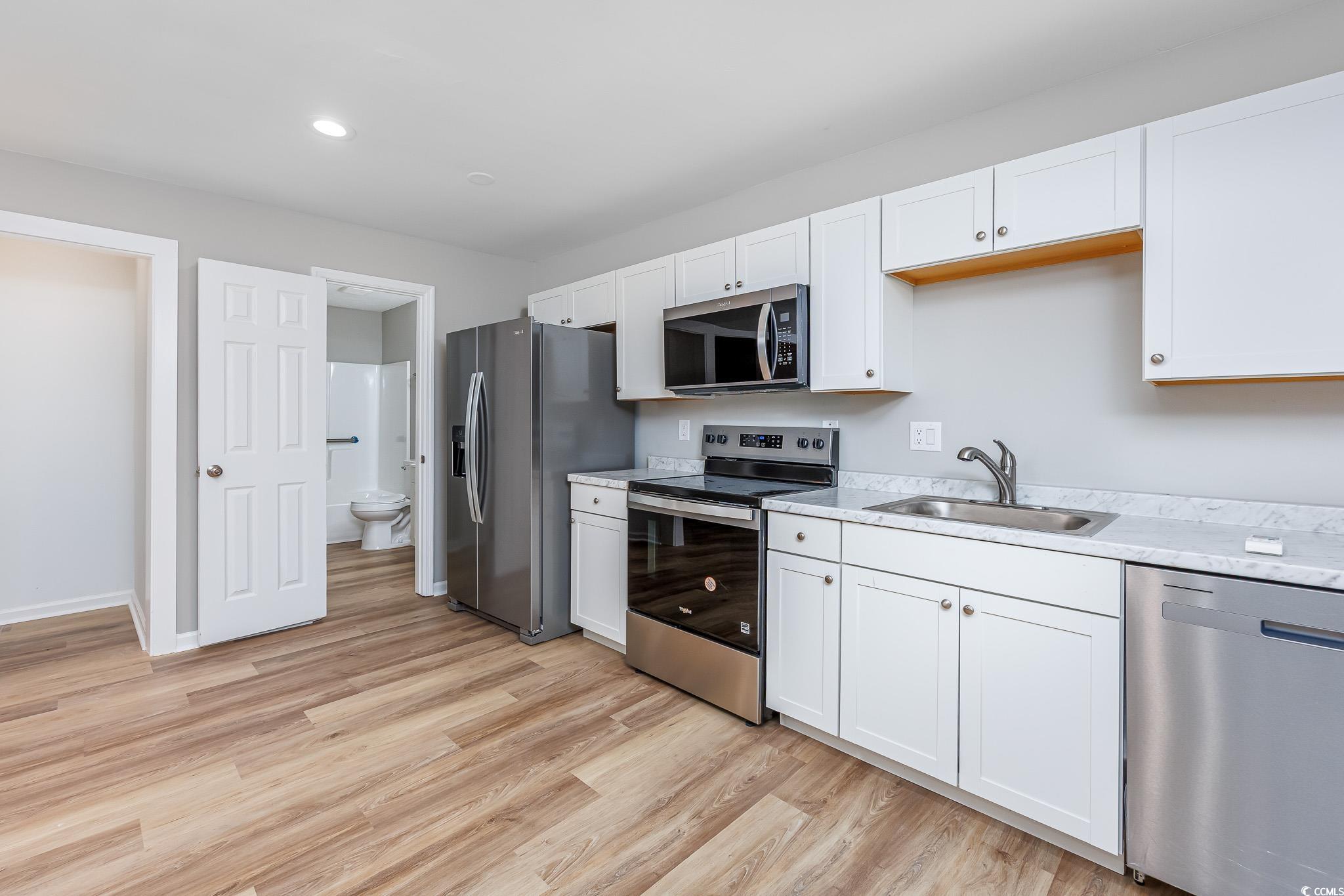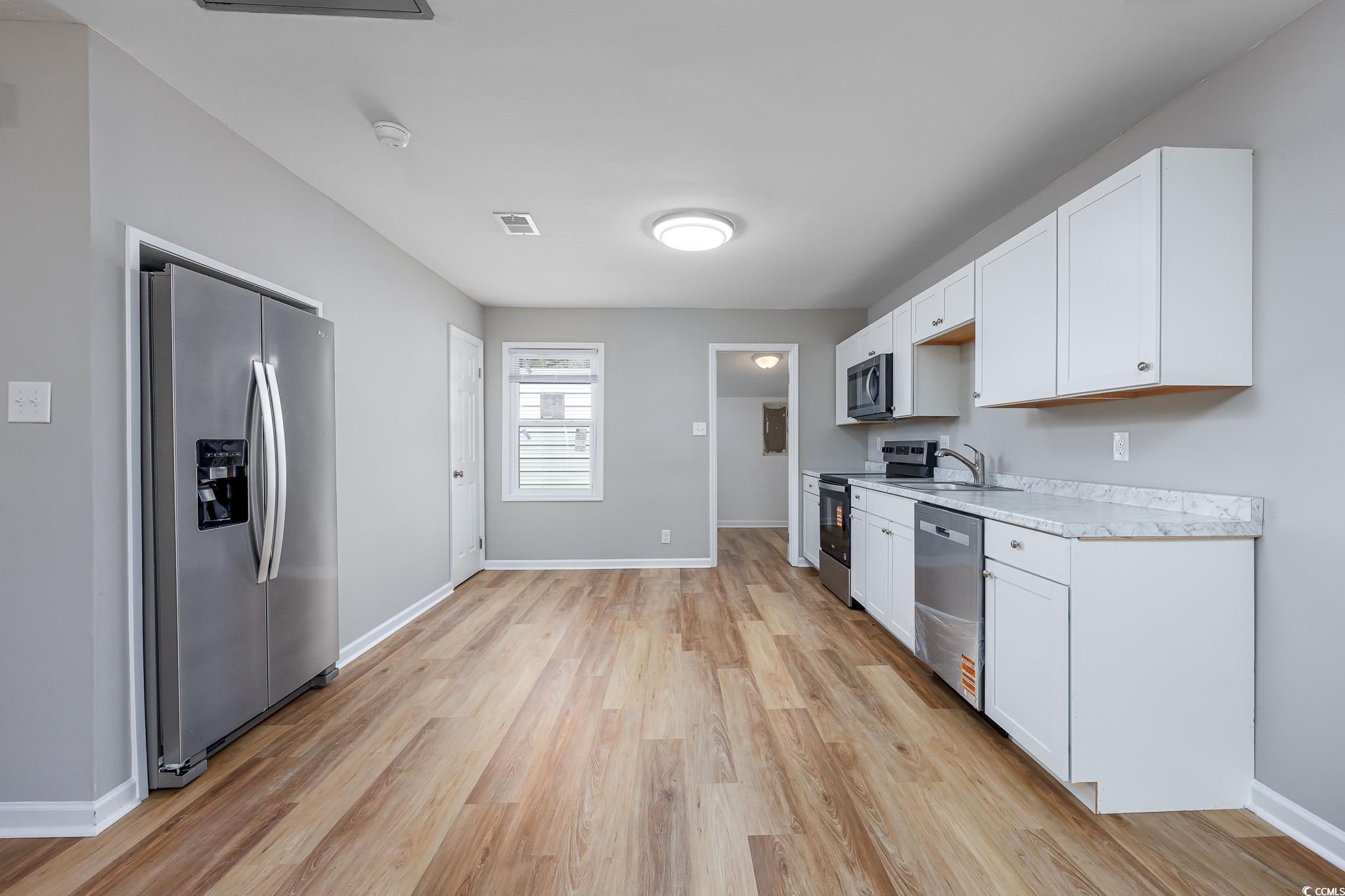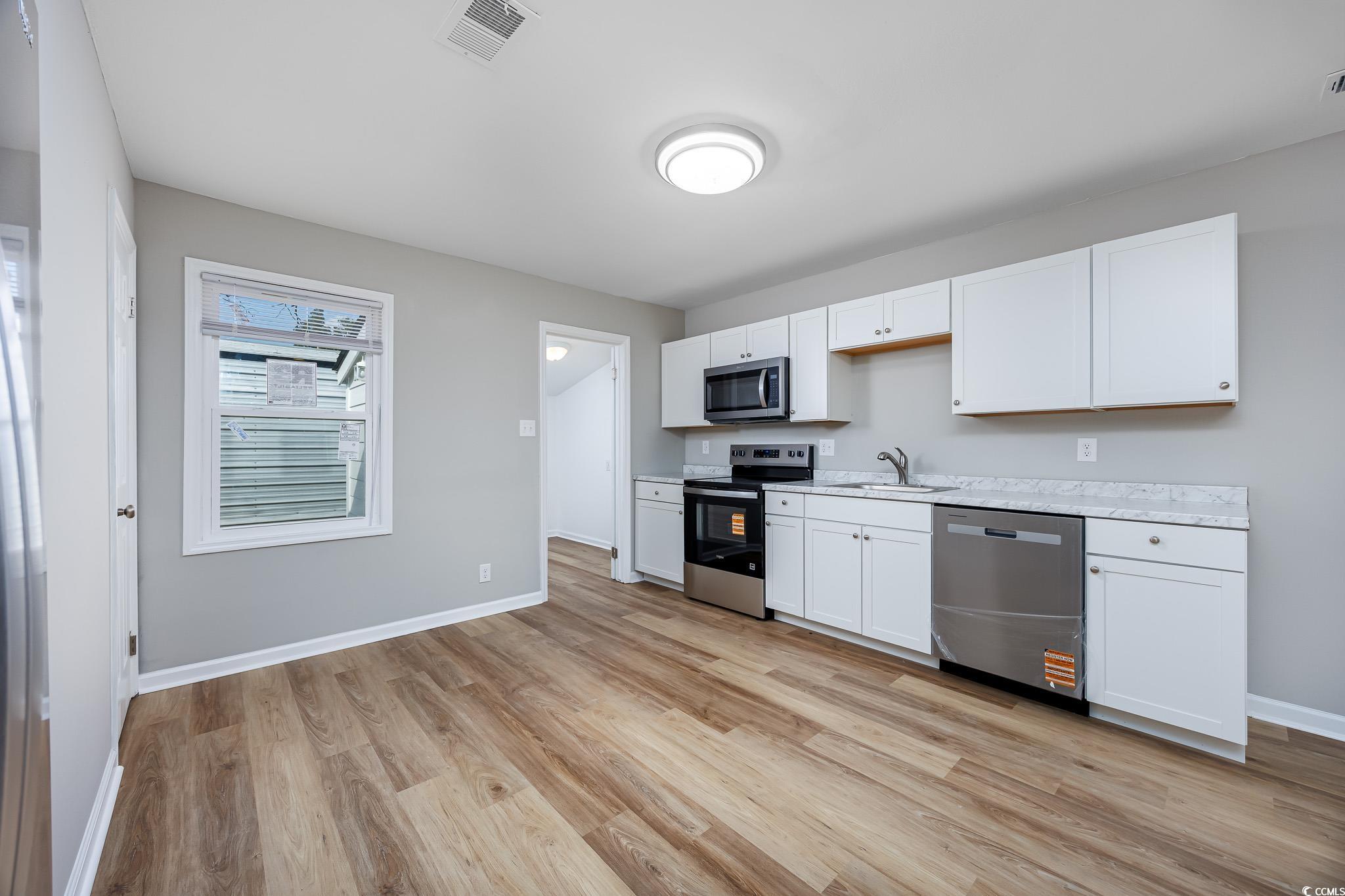 This beautiful all brick duplex sits on a spacious 0.35-acre lot with no homeowners association and offers a fantastic investment or living opportunity. The property includes a 2-bedroom, 1-bath unit and a 1-bedroom, 1-bath unit—each featuring new luxury vinyl plank flooring, fresh paint, new HVAC systems, new water heater, updated kitchens with new cabinets, countertops, and stainless steel appliances, as well as remodeled bathrooms with new vanities and toilets. Both units include laundry connections and private patios, while the large backyard provides ample space for outdoor enjoyment and includes a 30x10 metal storage building. Conveniently located just off Forestbrook Road in Myrtle Beach, this property is close to area attractions, restaurants, schools, and only a short drive to the beach. *Seller is a SC realtor licensee*